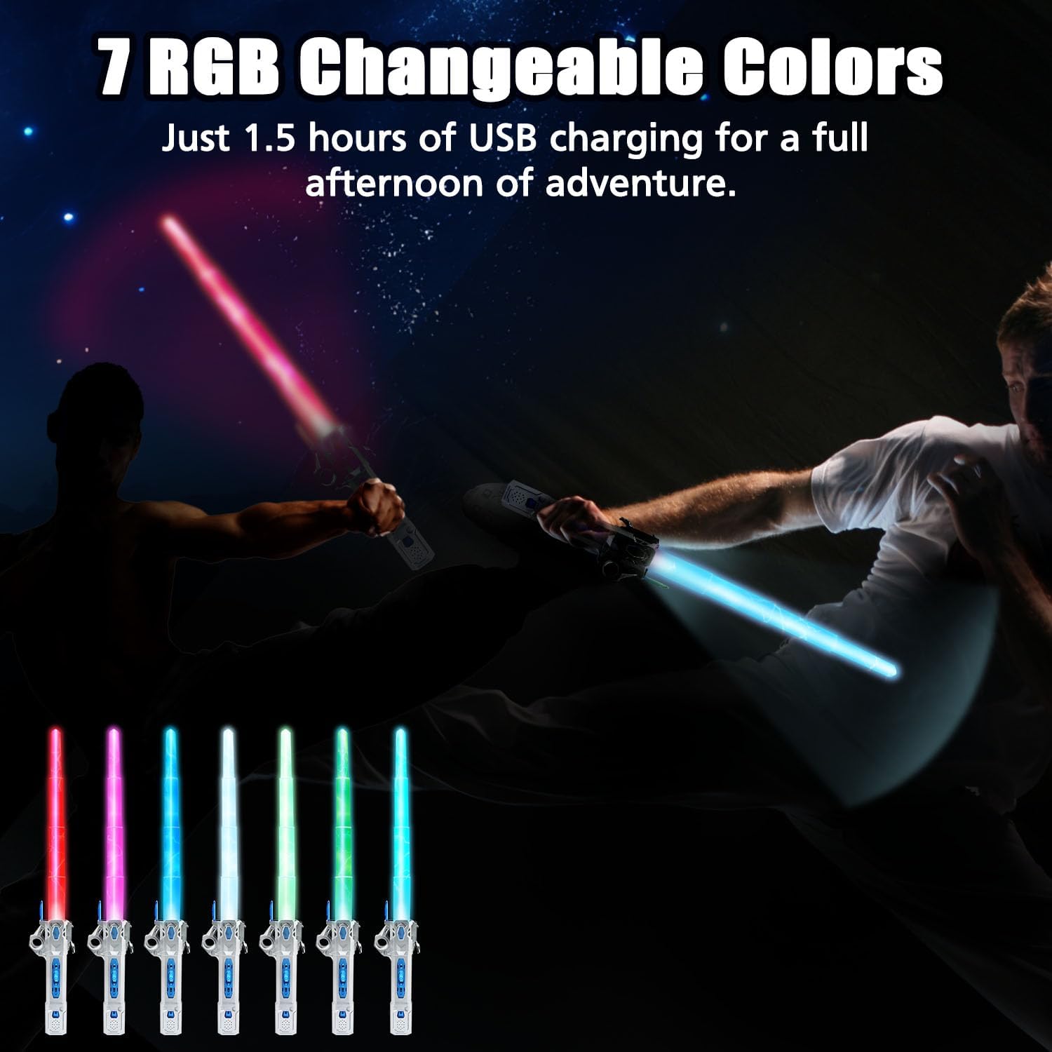 Spade retrattili: le luci per bambini sono retrattili e regolabili. È anche facile da riporre e trasportare. Il nuovo design della maniglia garantisce stabilità e controllo. Giocattolo con luci e suoni: 7 vivaci colori RGB consentono ai bambini di personalizzare la loro esperienza galattica: combatti con le lame per vedere i colori cambiare e ascoltare suoni emozionanti. Batteria ricaricabile: la batteria integrata offre più divertimento. Solo 1,5 ore di ricarica USB per un intero pomeriggio di avventure. Il cavo di ricarica Type-C è incluso nella confezione. Progettato per bambini dai 3 anni in su: la plastica di alta qualità è sicura e facile da usare. Dimensioni perfette per bambini dai 3 anni in su e soddisfa gli standard di sicurezza dei giocattoli. Regalo perfetto: LightSaber è il regalo perfetto per i bambini e i loro fratelli. È tratto da un film classico e conserva bei ricordi con la famiglia. È adatto a fan di tutte le età! Aggiungi divertimento intergalattico a feste, costumi, vacanze e altro ancora.