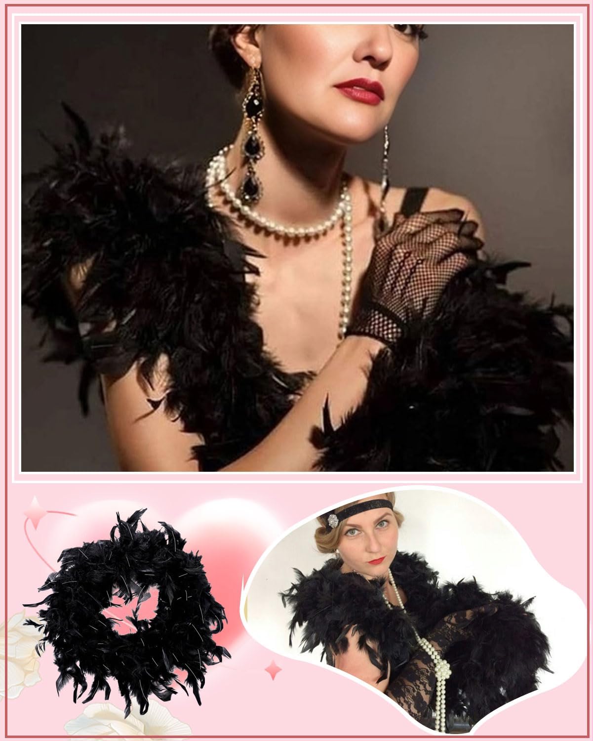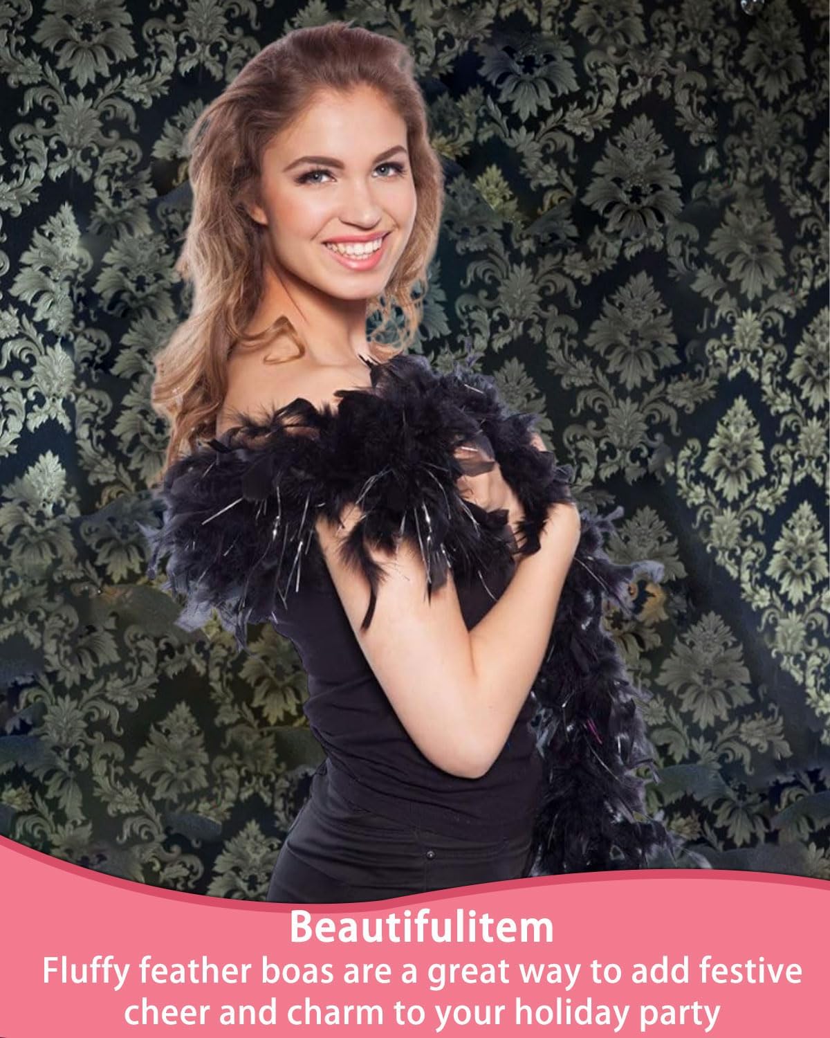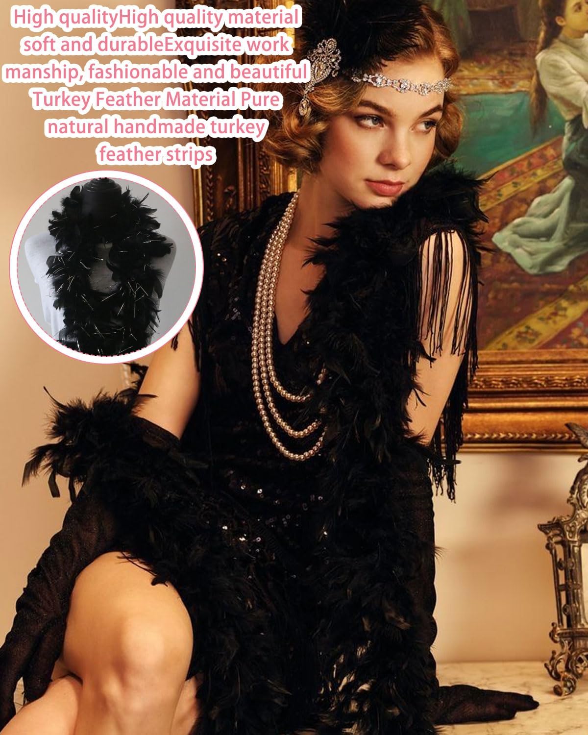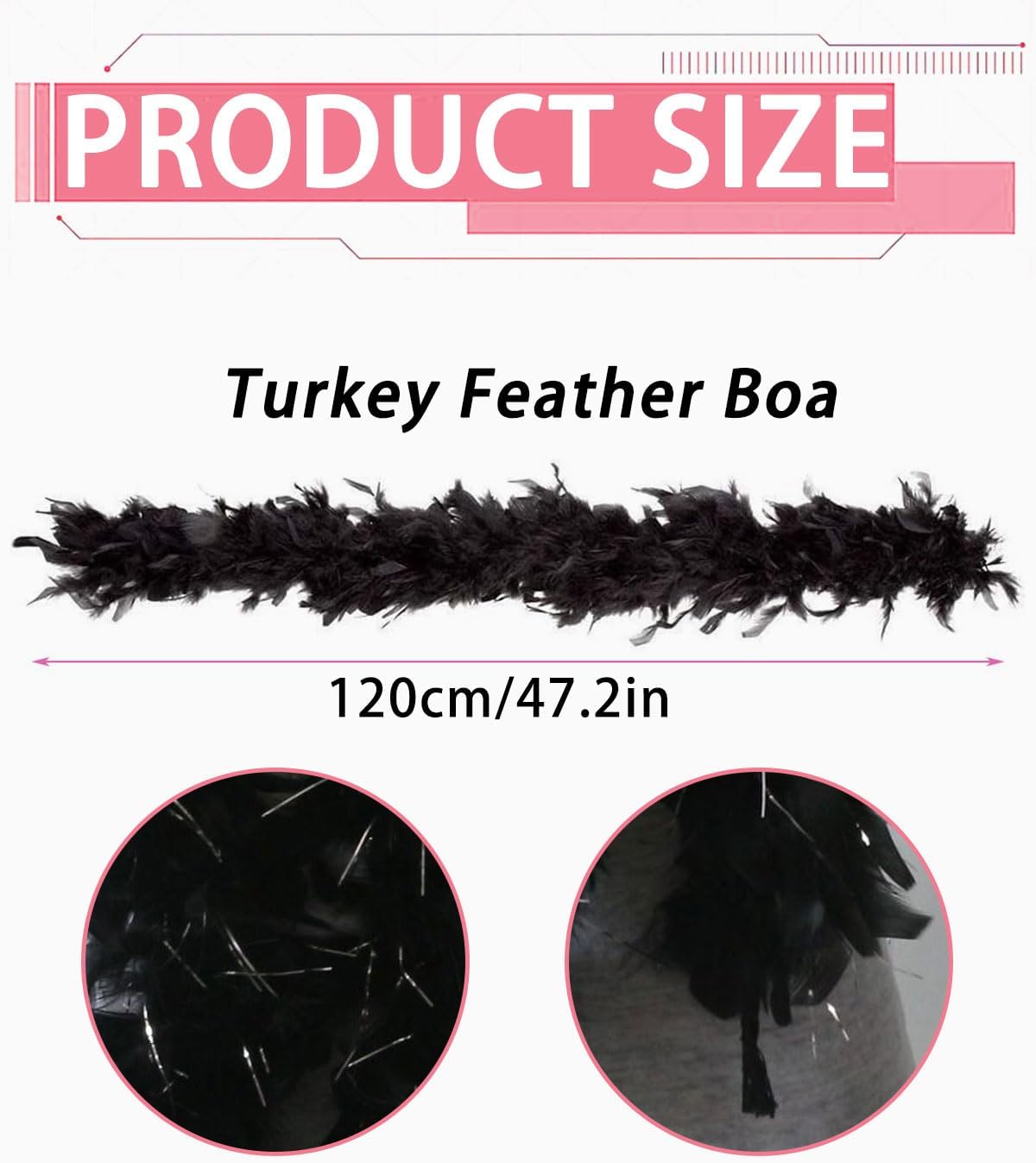 Decorazione con piume in filo d'argento nero: lunghe 1,2 metri, le piume sono soffici e belle, adatte per abbigliamento e decorazioni per la casa. CREAZIONE DI COSTUMI: ottimi per realizzare costumi per le feste, come quelli da Babbo Natale o da streghe, per il palcoscenico o per il Carnevale. Sciarpa di piume: un design elegante ma giocoso che aggiungerà glamour al tuo look. Boa di piume: decorano caminetti, paralumi e altro ancora, a seconda delle festività e delle stagioni. Suggerimenti utili: dopo aver ricevuto il gioiello in pitone, si verificherà una leggera caduta di capelli, il che è normale. Si prega di tirarlo fuori e di lasciarlo asciugare all'aria aperta: l'effetto sarà ottimo. Si consiglia di lasciarlo asciugare per 48-72 ore per rimuovere eventuali residui.