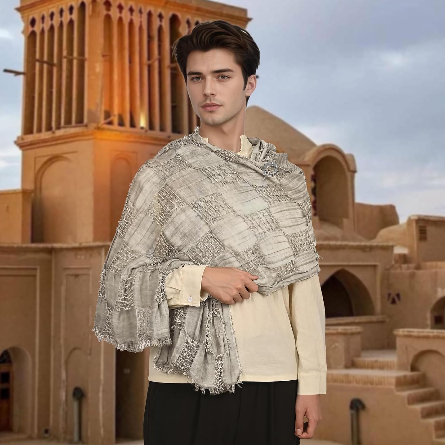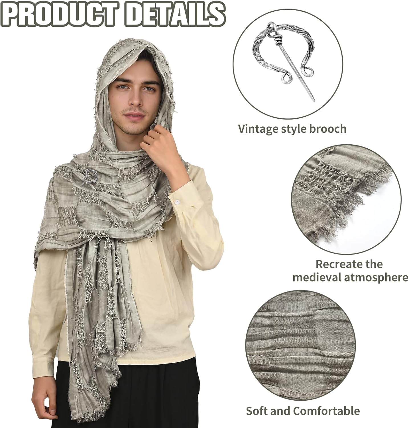 Descrizione prodotto Medioevo Sciarpa Avvolgere Mantello, Sciamano Lungo Panno con Spilla, Rinascimento Hooded Shaw, Sciamano Cappuccio Avviso di sicurezza No