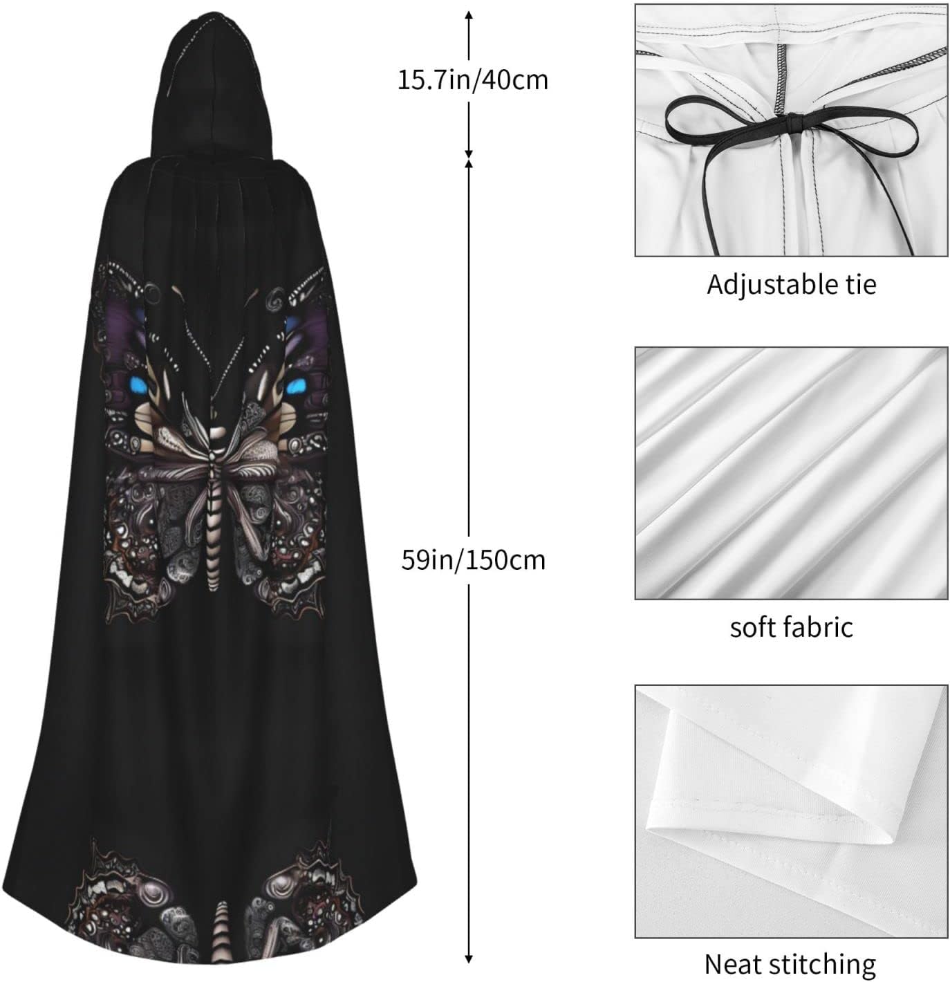 Science Butterfly HD Printing mantello costume - Halloween, cosplay e altro mantello con cappuccio unico. Costume versatile