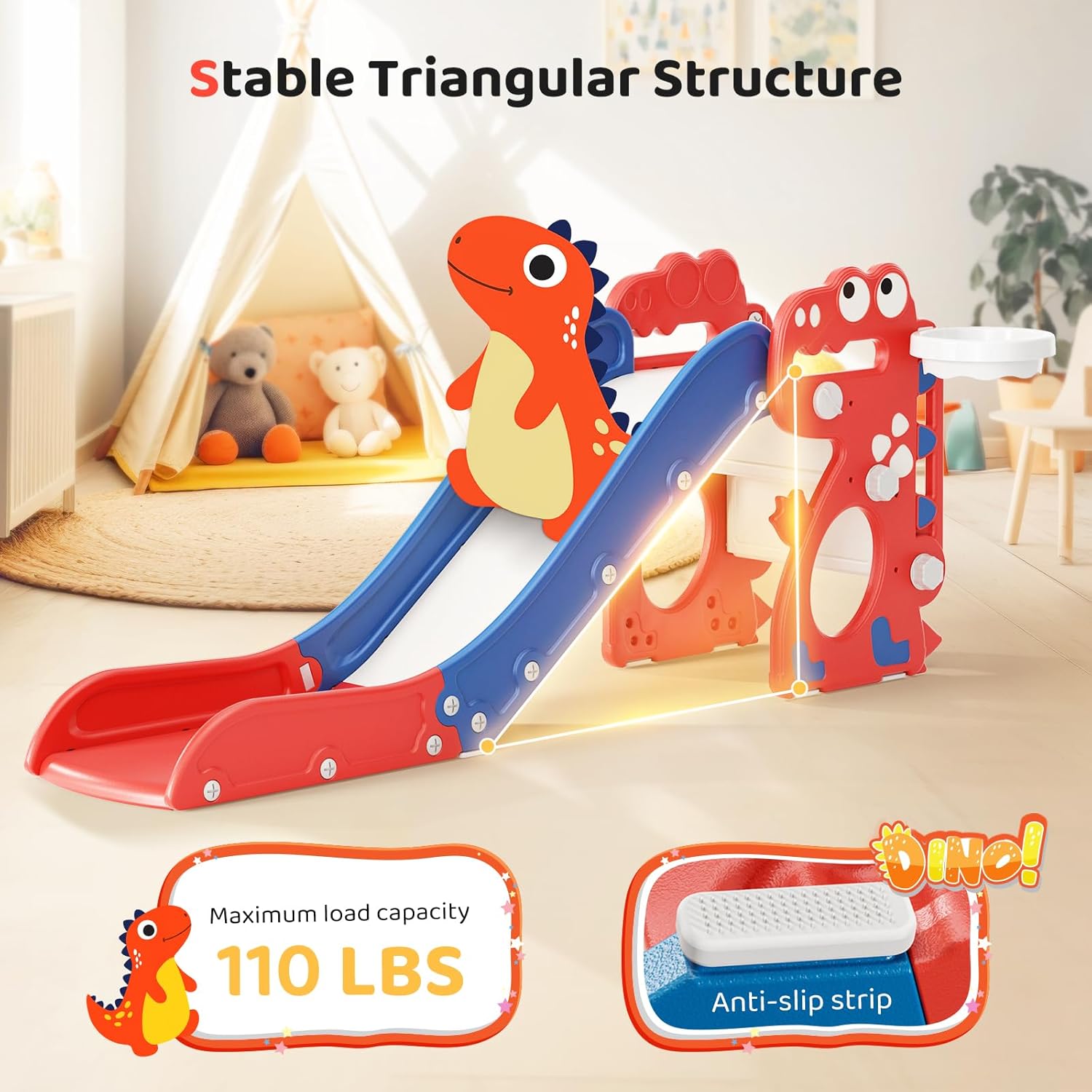 1.Materiale HDPE: lo scivolo per bambini è realizzato in materiale HDPE, Questo scivolo per bambini ha una robusta struttura di supporto triangolare per impedire ai bambini di cadere e offrire un ambiente di gioco sicuro. La base rinforzata e allargata e i piedini antiscivolo migliorano notevolmente la stabilità dello scivolo e ne impediscono il ribaltamento. Questo scivolo per bambini ha una stabile struttura di supporto triangolare per impedire ai bambini di cadere e offrire un ambiente di gioco sicuro. La base rinforzata e allargata e i piedini antiscivolo migliorano notevolmente la stabilità dello scivolo e ne impediscono il ribaltamento. 2.Questo scivolo per bambini piccoli ha tre aree di scorrimento uniche: zona di accelerazione, zona di decelerazione e zona di assorbimento degli urti per garantire uno scorrimento fluido e sicuro. La scaletta completamente chiusa è dotata di ampi gradini antiscivolo e corrimano rialzati per prevenire le cadute e garantire la sicurezza necessaria mentre il bambino si diverte. Il nostro scivolo per bambini piccoli include scalette, scivoli, giochi ad anello e canestri da basket, permettendo ai bambini di divertirsi per ore, sviluppando equilibrio e forma fisica. L'esclusivo design a forma di dinosauro ispirerà l'immaginazione dei bambini e li trasporterà nel mondo dei dinosauri. 3.Antiscivolo con design a scala: questo scivolo per bambini si distingue dai tradizionali scivoli in stile scala. Presenta un design di arrampicata che è nuovo e stimolante. La parte da arrampicata ha un design concavo con diverse profondità per l'arrampicata, adatto per bambini dai 3 anni in su. 4.Scivolo per bambini indoor outdoor: facile da montare e smontare, non sono necessari altri strumenti, lo scivolo interno può essere installato in pochi minuti. Le diapositive per i bambini possono essere utilizzate non solo all'interno, ma anche portate nel cortile o nel giardino. 5.Regalo perfetto per i più piccoli – Gli scivoli per bambini sono un regalo meraviglioso per bambini di età compresa tra 1 e 3 anni, in quanto promuovono l'attività fisica, la coordinazione e l'equilibrio dei bambini, sia per compleanno, Natale o qualsiasi altra occasione speciale. Danno anche un senso di avventura e realizzazione quando i bambini imparano a salire e scivolare giù.
