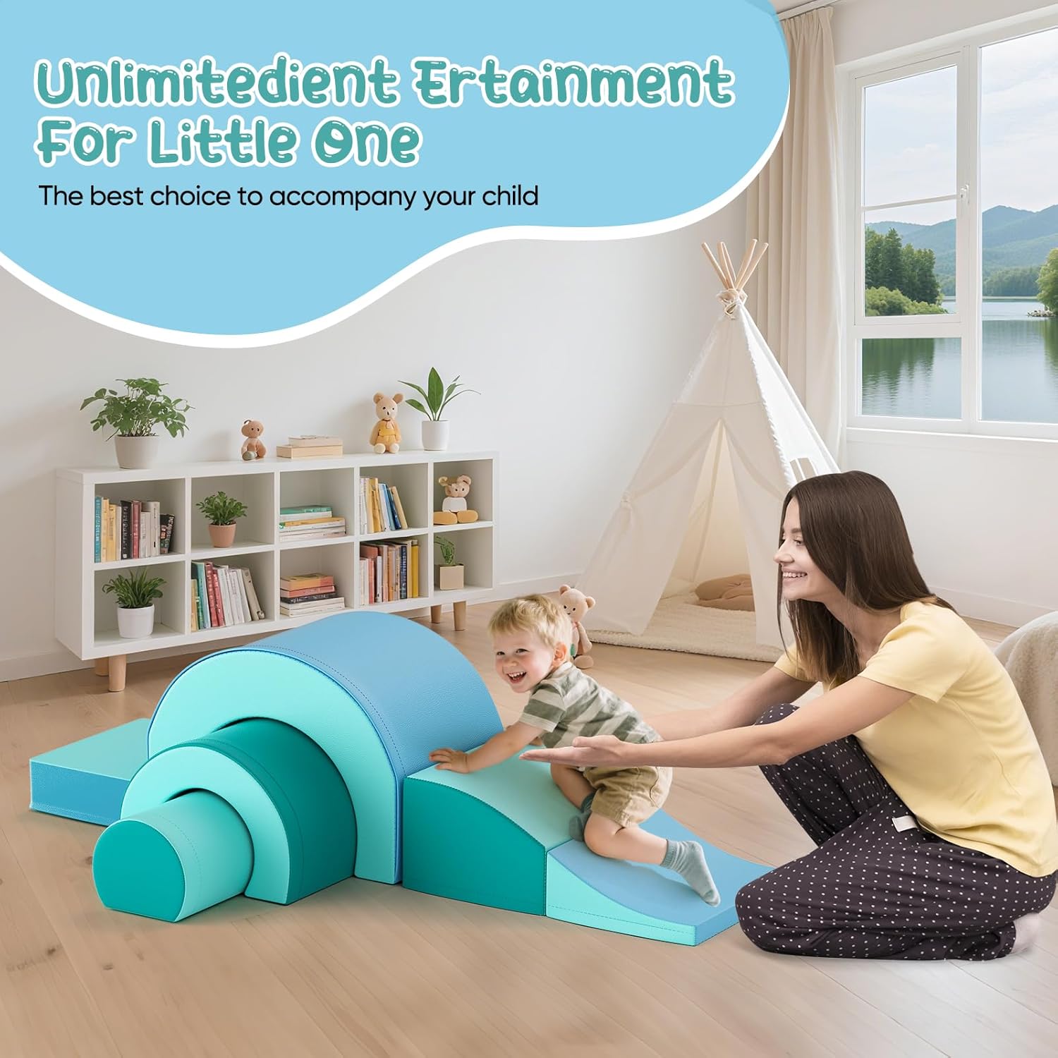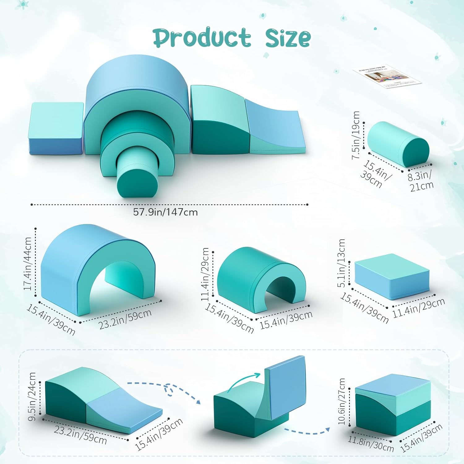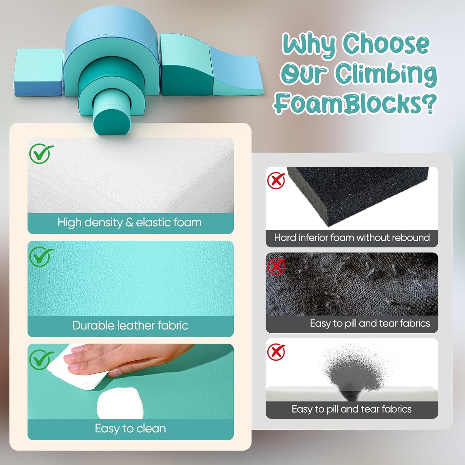 VERSATILE E DIVERTENZA: Le forme differenti possono essere impilate o utilizzate come grandi blocchi di costruzione. Offrono un parco giochi morbido e sicuro, ideale per piccoli avventurieri che amano arrampicarsi e strisciare. Materiali sicuri e durevoli: i blocchi di costruzione morbidi sono rivestiti con uno strato di PU impermeabile di alta qualità, che li rende facili da pulire e durevoli. La cerniera nascosta impedisce i bordi taglienti, mentre la morbida imbottitura in schiuma offre ai bambini un'esperienza di gioco sicura e confortevole. Giocattolo di risveglio: questo giocattolo per bambini favorisce le capacità motorie, la percezione spaziale e la creatività, ed è perfetto per il risveglio. I bambini possono impilare, assemblare e riorganizzare i blocchi, sviluppando così le loro capacità di problem solving e la coordinazione occhio-mano attraverso un gioco interattivo. Facile da montare e riporre: i blocchi da arrampicata per bambini da 1 a 3 anni sono dotati di ampie chiusure autoadesive che consentono ai bambini di montarli e staccarli facilmente, per infinite possibilità di costruzione. Leggero e portatile, questo set è facile da trasportare e riporre, rendendolo ideale per camere da letto, salotti o camerette. Un regalo versatile e attento: che si tratti di compleanni, feste o semplicemente di divertimento, questi morbidi blocchi da arrampicata per bambini da 1 a 3 anni sono il regalo ideale per i bambini in crescita. Adatto a bambini di tutte le età, questo giocattolo versatile combina divertimento, apprendimento e sicurezza.