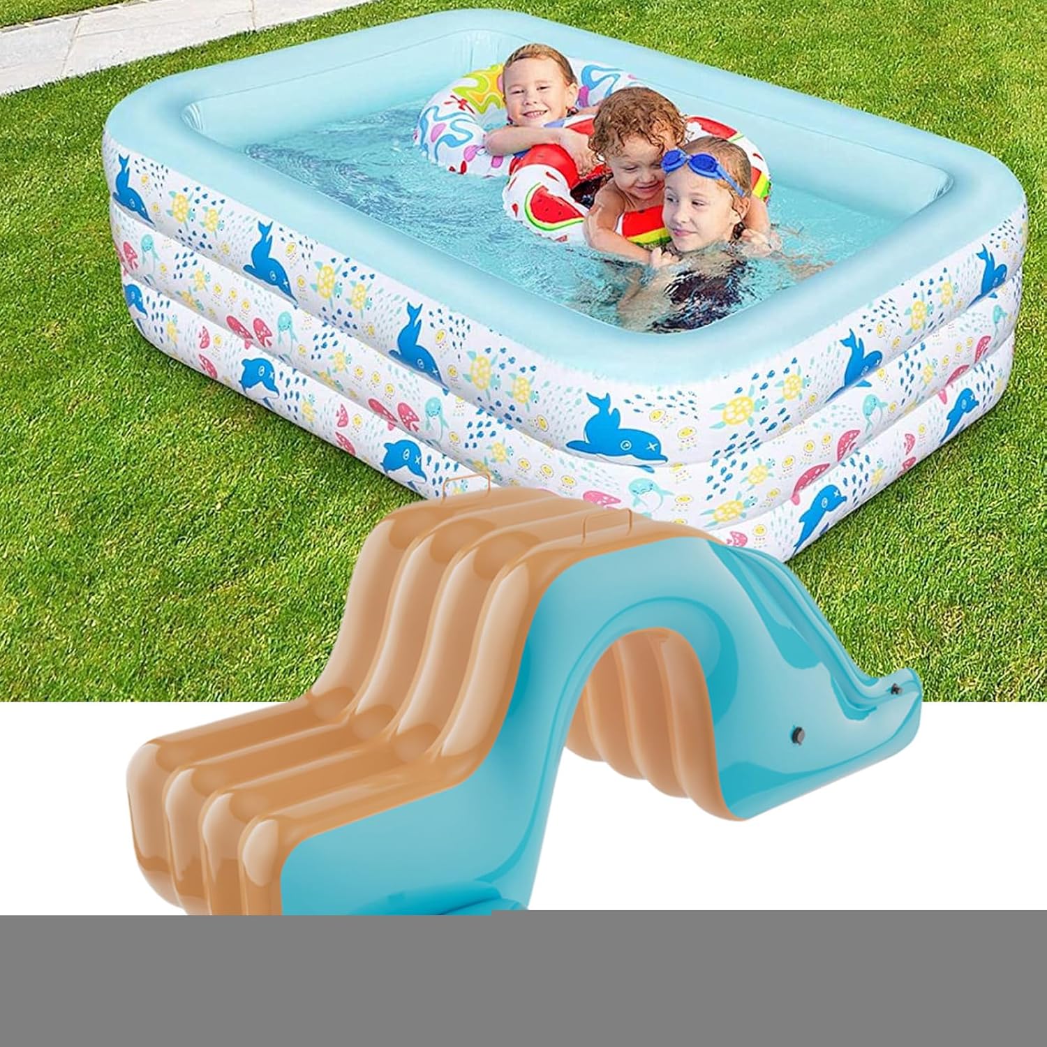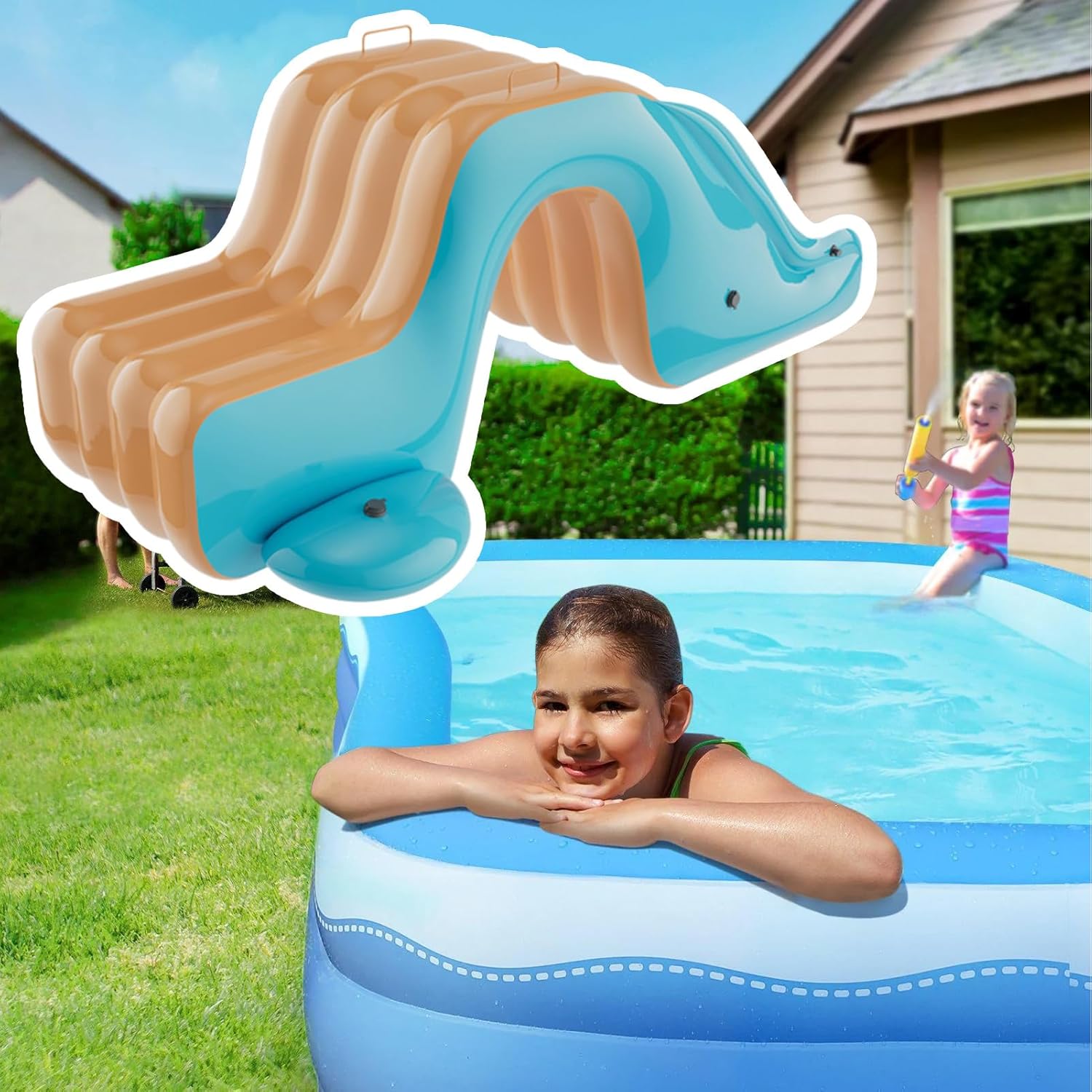 Design delicato sulla pelle: la speciale lavorazione dei bordi senza sbavature protegge la pelle sensibile dei bambini per il massimo comfort di scivolamento. Capacità di carico ottimizzata: offre prestazioni costanti con carichi fino a ca. 50 kg ed è quindi adatto alla maggior parte dei bambini. Garantisce stabilità duratura per un divertimento di scivolamento duraturo sullo scivolo acquatico gonfiabile. Robustezza: Realizzato in materiale PVC ad alta densità, lo scivolo acquatico offre un'eccellente resistenza all'abrasione e allo strappo, garantisce un utilizzo sicuro senza odori nocivi grazie alla costruzione durevole. Sicurezza robusta: gli ampi gradini con struttura antiscivolo garantiscono un passo affidabile durante la salita e la discesa per la massima sicurezza quando si gioca sullo scivolo gonfiabile. Posizionamento variabile: ideale per parchi acquatici, spiagge e giardini. Garantisce un utilizzo versatile su terrazze o spazi aperti. Aumenta senza sforzo il divertimento in famiglia grazie all'ampia applicabilità