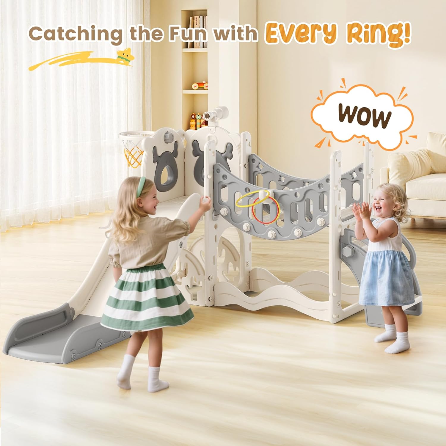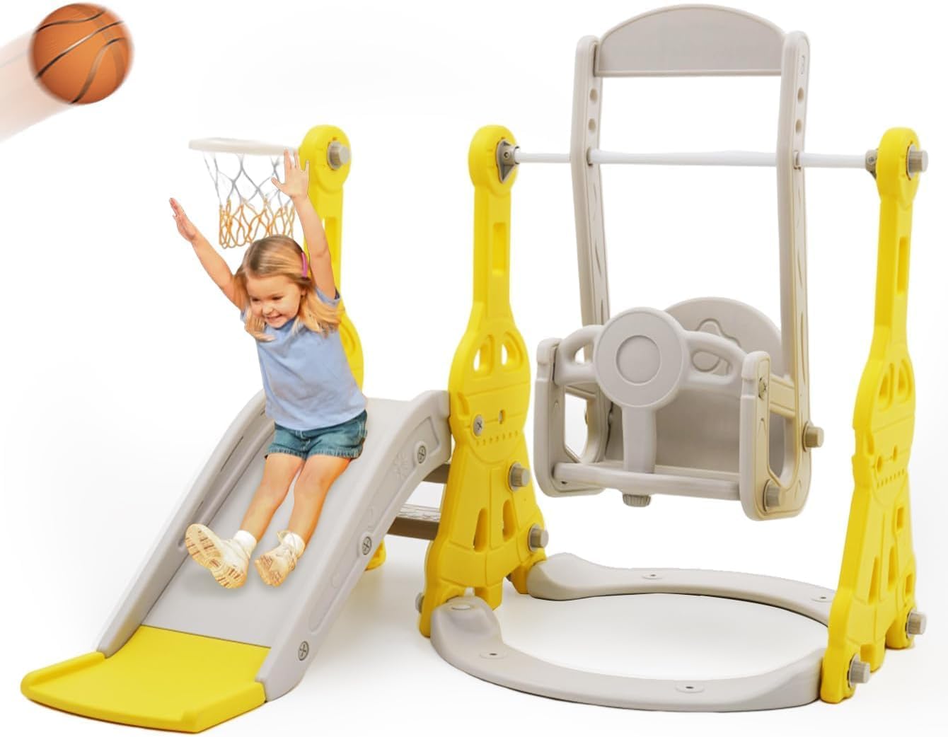 Versatilità 9/8 in 1: la pellicola per bambini offre 9/8 funzioni di gioco interattive, tra cui una diapositiva per bambini, ponte di arrampicata, lancio ad anelli, pallacanestro, telescopio, scale, set da golf e (due) spazio di archiviazione (i), favorisce il gioco attivo e lo sviluppo complessivo per i bambini. Ponte da arrampicata migliorato: questo versatile ponte da arrampicata può migliorare la coordinazione, l'equilibrio e lo sviluppo muscolare del tuo bambino e può essere installato in entrambe le direzioni, generali o capovolte, per raddoppiare il divertimento e altre possibilità di gioco. Una zona di avventura perfetta per i piccoli esploratori! Materiali HDPE sicuri e durevoli: questo set di scivoli per bambini è realizzato con materiali HDPE di alta qualità e garantisce sicurezza e durata durante il gioco, consentendo ai bambini di godersi le loro avventure con tranquillità. Design di gioco sicuro: ogni elemento del set dà la priorità alla sicurezza con una pellicola con cuscinetti antiscivolo, gradini di arrampicata completamente chiusi e corrimano robusti sia sullo scivolo che sulle scale per garantire un ambiente di gioco sicuro per i bambini. Installazione semplice: il set di diapositive è progettato per un facile montaggio che consente a genitori e figli di collaborare alla configurazione. È adatto sia per il gioco che per il gioco all'aperto, il che lo rende l'aggiunta perfetta a qualsiasi area di gioco.