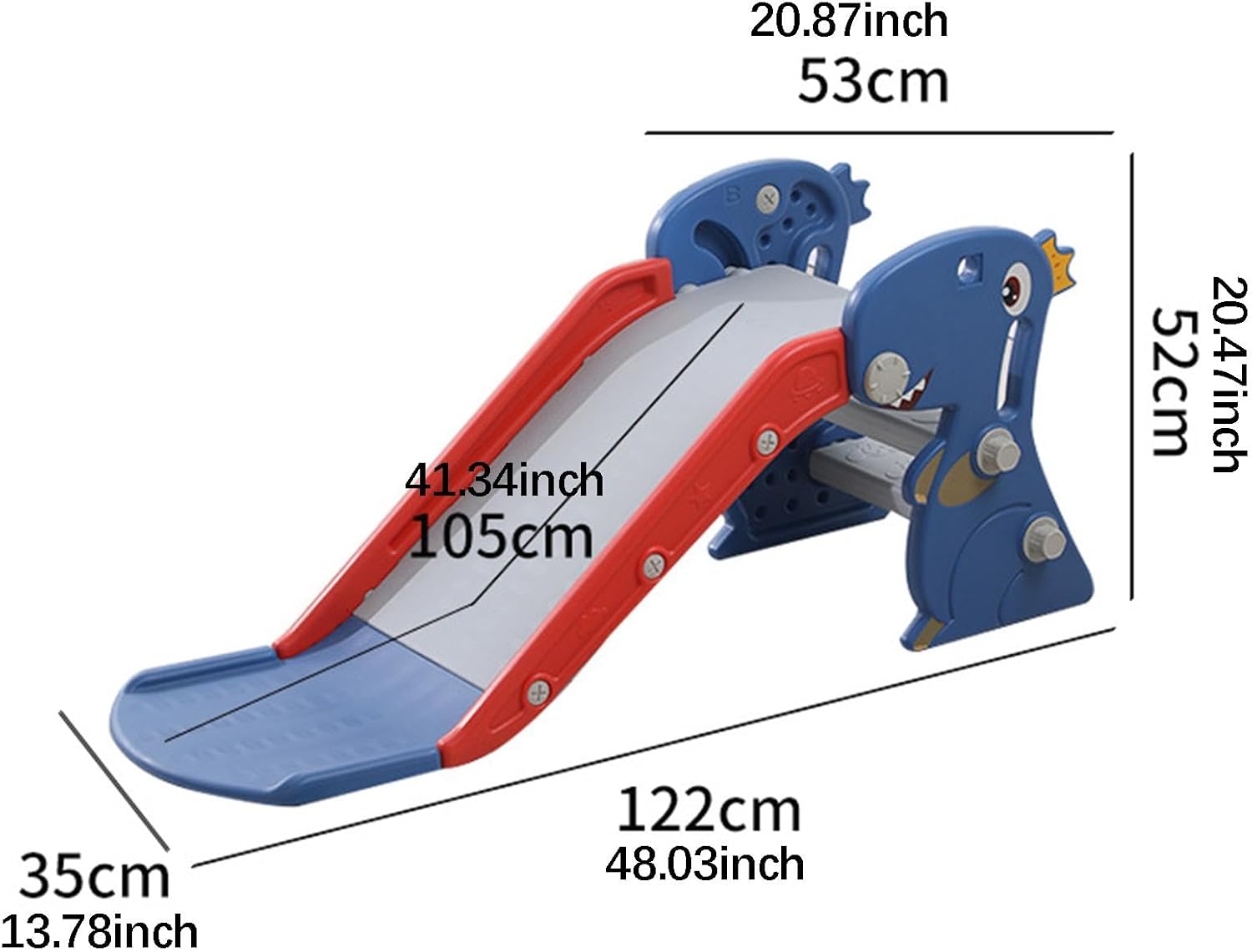 【Ampia applicazione】: questo scivolo giocattolo per bambini misura 48,03 pollici x 20,87 pollici x 20,47 pollici, le dimensioni adeguate sono ideali per interni, casa, camera da letto, , soggiorno, scuola , asilo nido e asilo nido. 【Esperienza di scorrimento fluida】: con scorrimento lungo 105 cm, 35 gradini più ampi, robusta costruzione in PP, garantisce stabilità e affidabilità 【Età consigliata】: Adatto a bambini di età compresa tra 1 e 8 anni, garantendo la sicurezza di arrampicarsi e scivolare sotto la supervisione di un adulto 【Design multifunzione】: graziosi scivoli a forma di dinosauro con gradini di arrampicata, canestro da basket e scivolo liscio da 105 cm, esercitano la capacità di coordinazione occhio-mano e le capacità motorie durante il gioco. 【Stabile e antiscivolo】: struttura triangolare, stabile e non tremolante, facile da installare, design pieghevole, comodo da riporre, non occupa spazio.