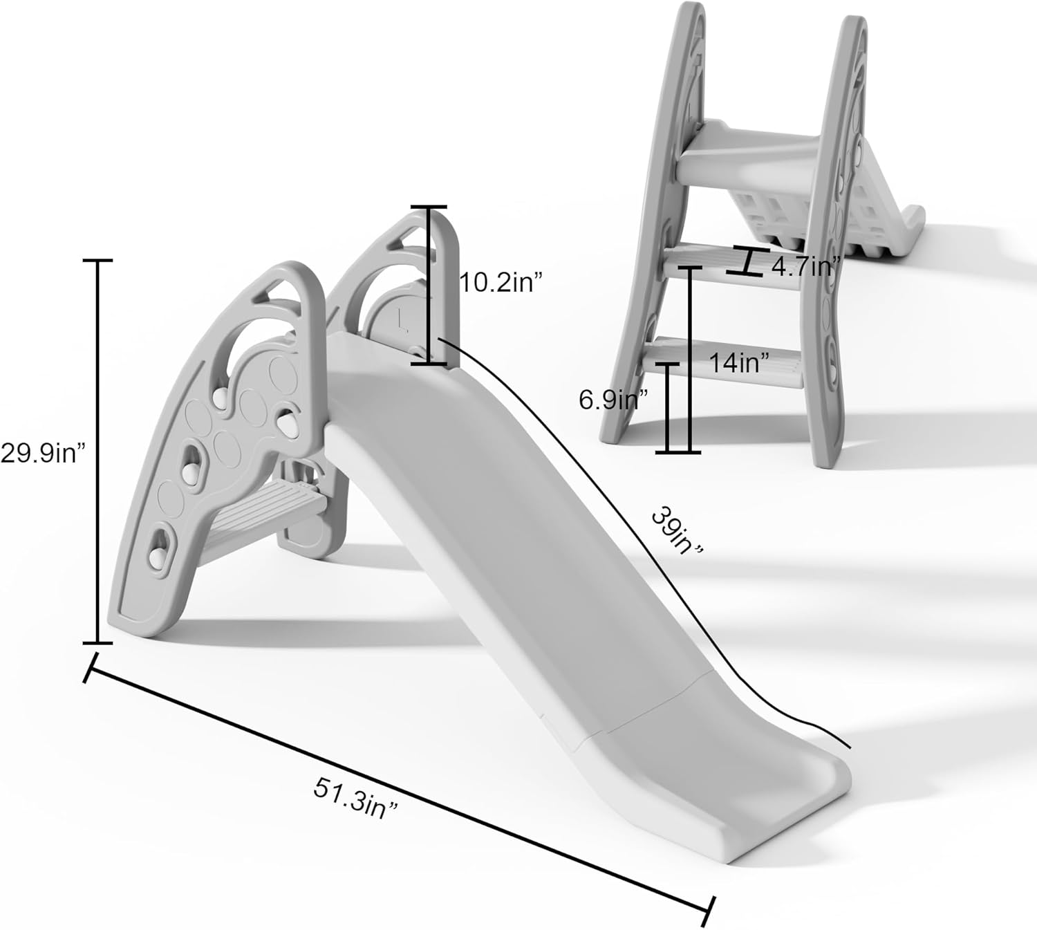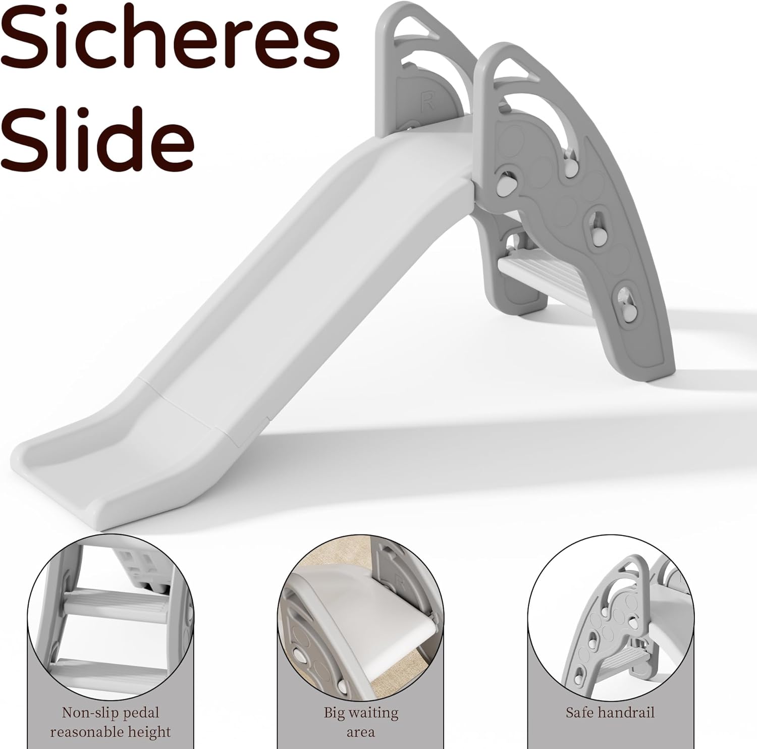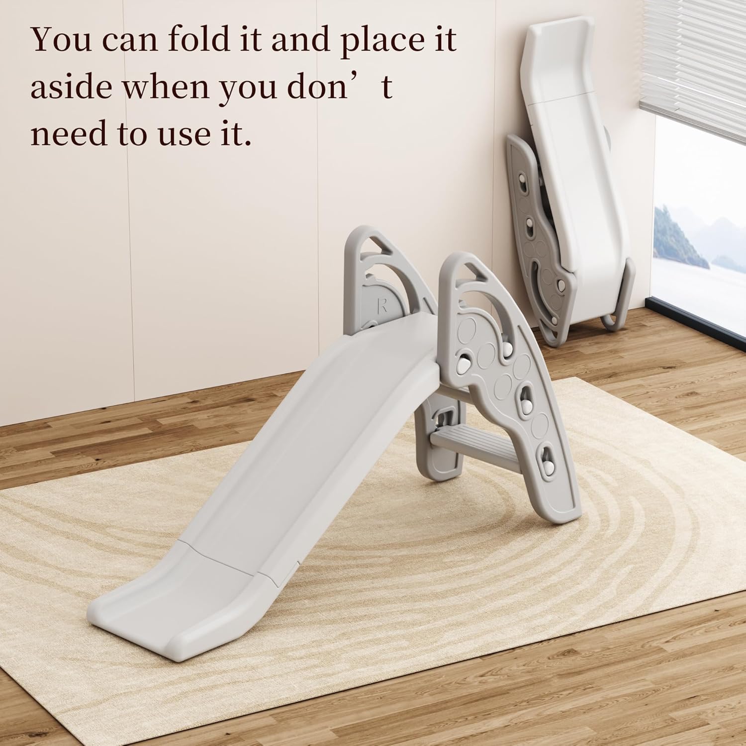Semplicità: la combinazione semplice ed elegante di colori a tinta unita si abbina perfettamente alla decorazione del soggiorno e della camera da letto, senza preoccuparsi che sembrerà scomodo a casa. Pieghevole: lo scivolo è progettato per essere pieghevole e riposto quando non in uso per risparmiare spazio. Ha una struttura compatta, è leggera e portatile. Puoi facilmente piegarli e spostarli sia all'interno che all'esterno quando non è necessario. SICUREZZA: questo scivolo pieghevole presenta gradini facili da scalare e uno scivolo liscio e largo per consentire ai bambini di divertirsi arrampicando e scivolando. I gradini sono abbastanza delicati da consentire ai bambini di arrampicarsi da soli e la combinazione di arrampicata e scivolo aiuta a promuovere il fitness, l'equilibrio e la coordinazione. GIOCO DI GIOCO: non c'è bisogno di dubbio che abbia una capacità di carico elevata di 110 libbre. È affidabile, resistente e adatto a bambini di età compresa tra 3 e 4 anni. Materiale: ogni singolo pezzo di montaggio è integrale, liscio e senza spigoli vivi.