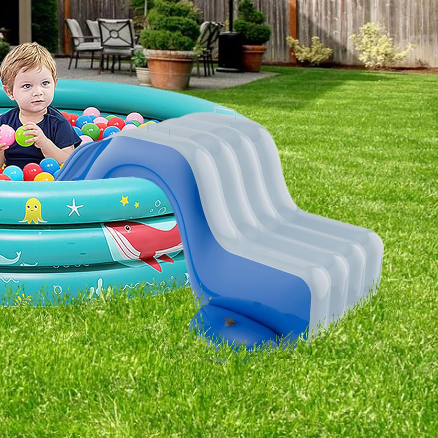 Divertimento a misura di bambino: la costruzione senza sbavature con curve morbide elimina il rischio di lesioni durante lo scivolamento in acqua. Design a misura di bambino: progettato per carichi fino a ca. 50 chilogrammi. Garantisce un utilizzo stabile per la maggior parte dei bambini e consente un divertimento duraturo con un supporto affidabile per tutte le attività sullo scivolo gonfiabile. Longevità: il materiale in PVC di alta qualità garantisce un'eccezionale resistenza all'usura, consente un divertimento duraturo con una lavorazione inodore e infrangibile Presa sicura: i design dei gradini antiscivolo con larghezza extra migliorano la presa e riducono al minimo il rischio di incidenti per bambini e adulti sullo scivolo acquatico Luoghi di utilizzo versatili: perfetto per spiagge, parchi acquatici e giardini, offre soluzioni esterne flessibili per terrazze e altro ancora. Massimizza il fattore divertimento in una varietà di ambienti grazie alla facile adattabilità