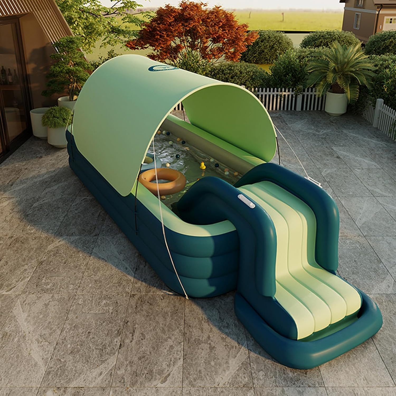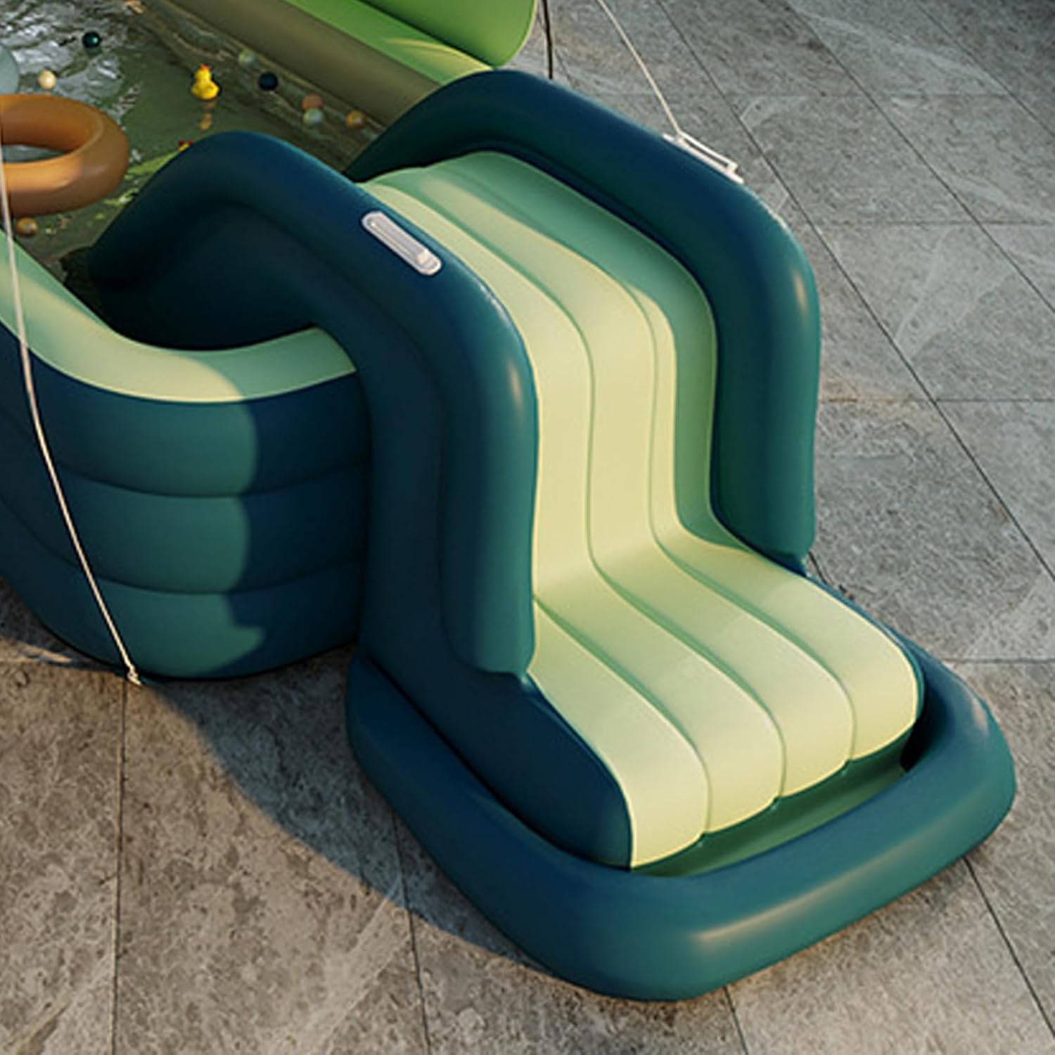Buona estate: che si tratti di una festa di compleanno, di una riunione di quartiere o anche di una calda giornata estiva, gli scivoli da piscina portano gioia e risate ai bambini di tutte le età, tenendoli immersi nel divertimento all'aria aperta per ore. Durata assicurata: realizzato in materiale PVC di alta qualità, ti garantisce di poter goderti più gioia estiva senza alcun danno. È forte, sicuro e affidabile, perfetto per i tuoi sport acquatici. Ampiamente usato: questo scivolo gonfiabile per piscina è adatto a vari tipi di piscine, interne ed esterne, in cortile e sulla S-beach. Il suo utilizzo versatile lo rende un'area giochi che offre più divertimento. Facile da usare: trasforma il tuo cortile in un piccolo parco acquatico con il nostro scivolo gonfiabile per piscina. La sua struttura robusta, gli ampi gradini e il design calpestabile lo rendono un'esperienza sicura e divertente per tutti, mentre la sua portabilità rende più divertente. Regalo meraviglioso: porta un po' di emozione in piscina con questo scivolo gonfiabile, perfetto come regalo estivo per i bambini. Un'aggiunta ideale a qualsiasi festa in piscina per un maggiore intrattenimento