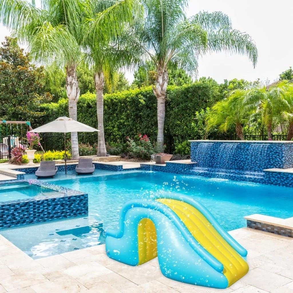 [Stabile e robusto]: Grazie al design della base ispessita e dello scivolo allungato, questo scivolo gonfiabile per bambini offre una maggiore superficie, rendendo difficile il ribaltamento. [Facile da montare]: La base dello scivolo gonfiabile per bambini è vuota e può essere riempita con acqua o aria. Ciò conferisce allo scivolo un supporto stabile. È facile gonfiare lo scivolo con una pompa e divertirsi. [Aumenta il divertimento in piscina]: Sia all'interno che all'esterno, questo scivolo gonfiabile è un interessante gioco d'acqua che permette ai bambini di resistere alla calura estiva e di divertirsi per ore. [Perfetto per uso interno ed esterno]: Ideale sia per le piscine del cortile che per le aree di nuoto interne, questo scivolo può essere utilizzato in una varietà di ambienti, assicurando che il divertimento sia sempre a portata di scivolo. [Base extra-larga riempibile d'acqua]: Lo scivolo è dotato di un'ampia base riempibile d'acqua che ne garantisce la stabilità durante l'uso. Inoltre, aiuta ad ammortizzare l'atterraggio, garantendo un'esperienza più sicura per bambini e adulti.