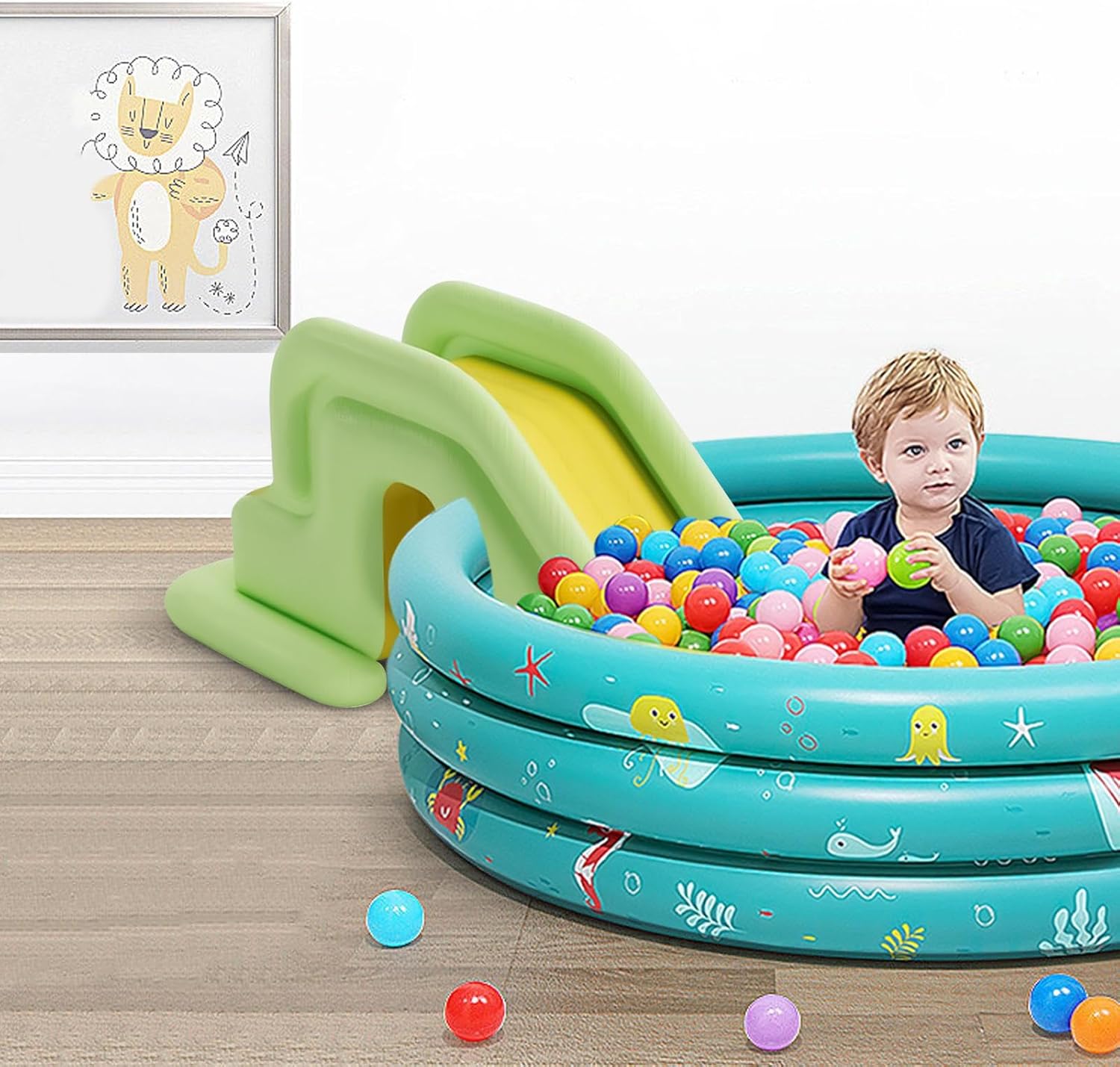 Materiale Resistenti: PVC rinforzato a doppio strato resistente a graffi e raggi UV, garantendo lunga durata per giochi d'acqua estivi. Garanzia di Qualità: Scivoli fluidi ed emozionanti grazie a materiali PVC spessi e resistenti. Combinazione ottimale di sicurezza, resistenza all'abrasione e superficie confortevole. Struttura Sicura: L'area di contatto rinforzata e la base ingrandita offrono equilibrio ottimale, prevenendo oscillazioni indesiderate. Scivoli estesi massimizzano il di gioco acquatico con totale affidabilità. Creatività Acquatica: Non solo accessorio per piscina, ma un vero gioco d'acqua che stimola l'immaginazione dei bambini. Ideale per interni ed esterni, ispira la creazione di avventure acquatiche personali e giochi originali. Accessorio universale: Trasformate la vostra piscina con questo scivolo acquatico gonfiabile, accessorio per piscine gonfiabili, interrate o fuori terra. Installazione immediata per momenti indimenticabili.
