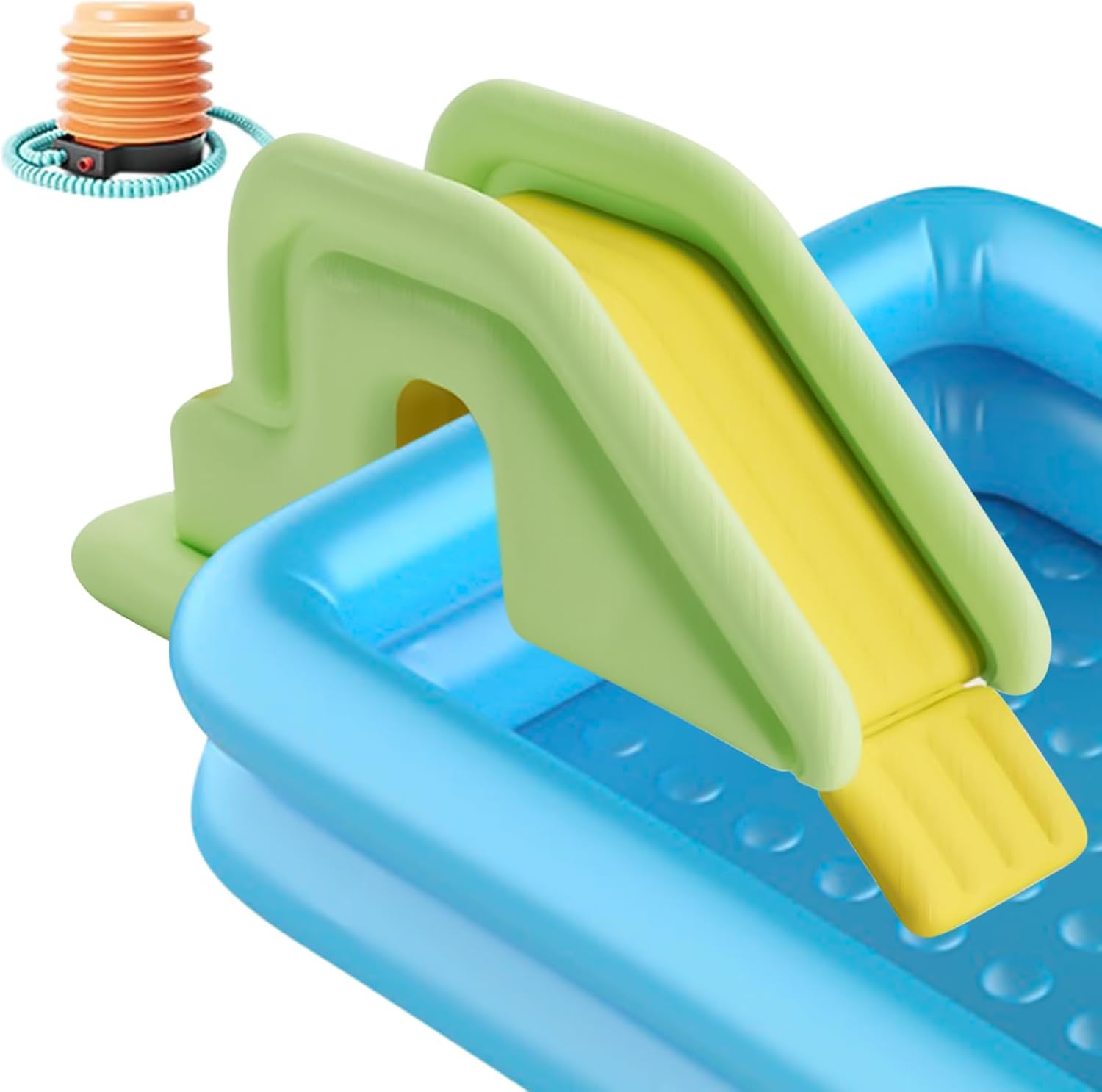 Divertimento acquatico: lo scivolo gonfiabile offre ore di rinfrescante scivolamento all'interno o all'esterno. Ideale per resistere al caldo estivo con allegri spruzzi. Accessorio ideale: complemento perfetto per arricchire i giochi d'acqua nel tuo giardino. Stimola l'attività fisica attraverso uno scivolamento dinamico compatibile con qualsiasi struttura acquatica. Installazione semplice: ottieni una presa stabile riempiendo la base dello scivolo gonfiabile con acqua o aria. Il rapido gonfiaggio della pompa garantisce momenti di gioco senza alcuno sforzo. Durata eccezionale: progettato per ore di gioco in acqua, questo scivolo gonfiabile utilizza PVC di alta qualità, liscio, antigraffio, inodore e sicuro, di lunga durata anche con un uso intensivo. 【Fondamento solido】 La base espansa e compattata fornisce una superficie di seduta irremovibile, eliminando il rischio di instabilità. Goditi le lunghe guide di scorrimento per il massimo divertimento.