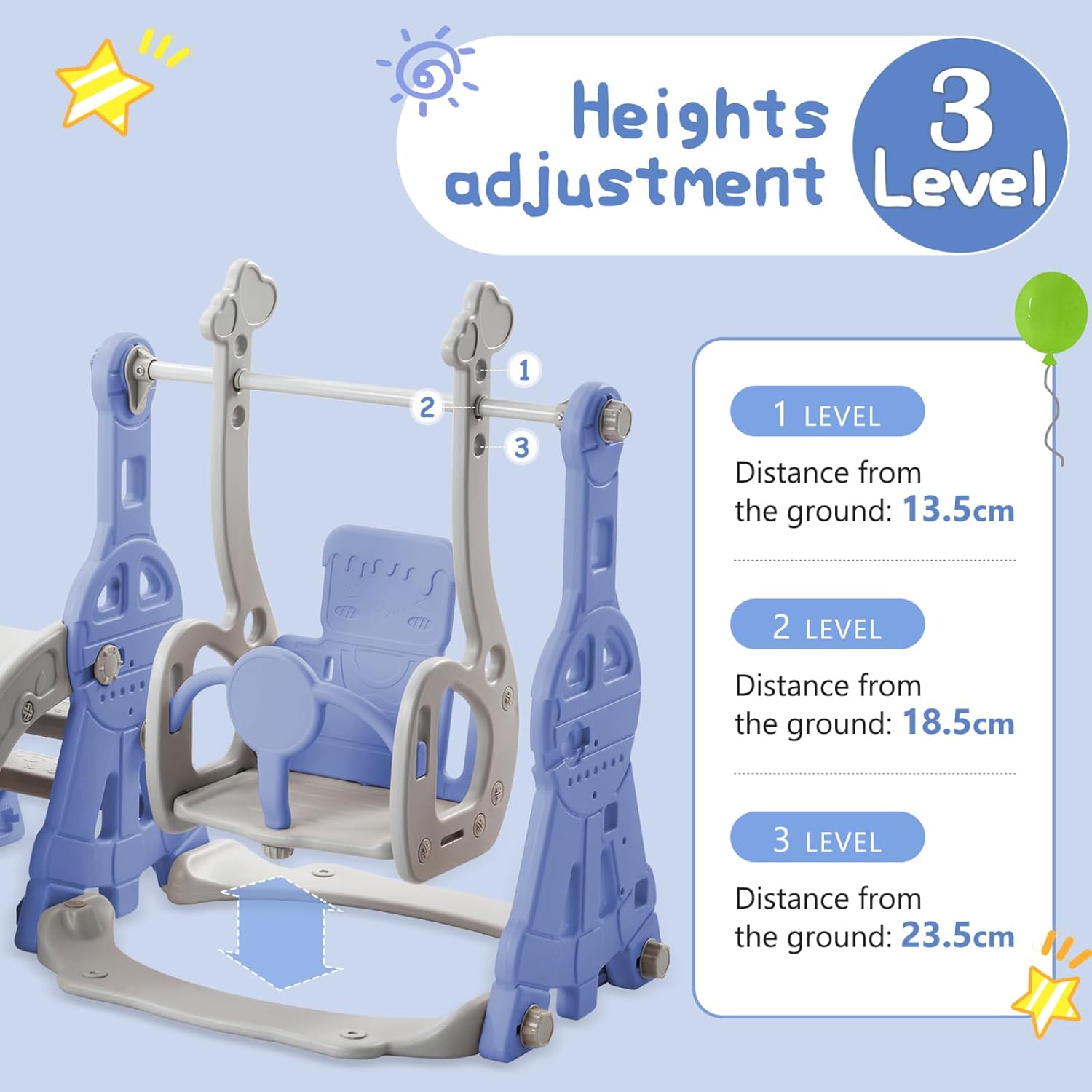 【Scivolo 4 in 1】Questo scivolo 4 in 1 per bambini include una porta da arrampicata, uno scivolo, un'altalena e un cestino da basket, offrendo varie sfide sportive per rafforzare i muscoli, la coordinazione e l'equilibrio del bambino. Ogni gioco diventa una risorsa per la sua crescita! 【Sicurezza certificata EN71】Scivolo per bambini è realizzato in HDPE alimentare certificato dalla norma EN71, inodore e resistente alle intemperie. La superficie liscia e i bordi arrotondati evitano collisioni. La base dell'acqua regolabile garantisce una stabilità ottimale, sia all'interno che all'esterno. Rassicurare i genitori. 【Design sicuro】Scivolo interno ed esterno per bambini offre tre livelli di scale testurizzate per un'arrampicata sicura. La sua zona cuscinetto prolungata rallenta lo scivolamento e protegge la schiena e i glutei del bambino. I bambini giocano in fiducia, i genitori rimangono sereni. 【Facile da montare e manutenzione】 "Capanna per bambini all'aperto con scivolo e altalena", completamente in plastica, si monta senza attrezzi, si utilizza sia all'interno che in giardino, e si pulisce con un panno umido. 【Dettagli pratici】 Altalena per giochi per bambini all'aperto scivolo arrampicata 4 in 1, viene fornito con una pompa ad aria e una palla da basket. Grazie alle istruzioni chiare, il montaggio rimane un gioco da ragazzi, e l'altezza dell'altalena si regola facilmente per tutti i modelli.
