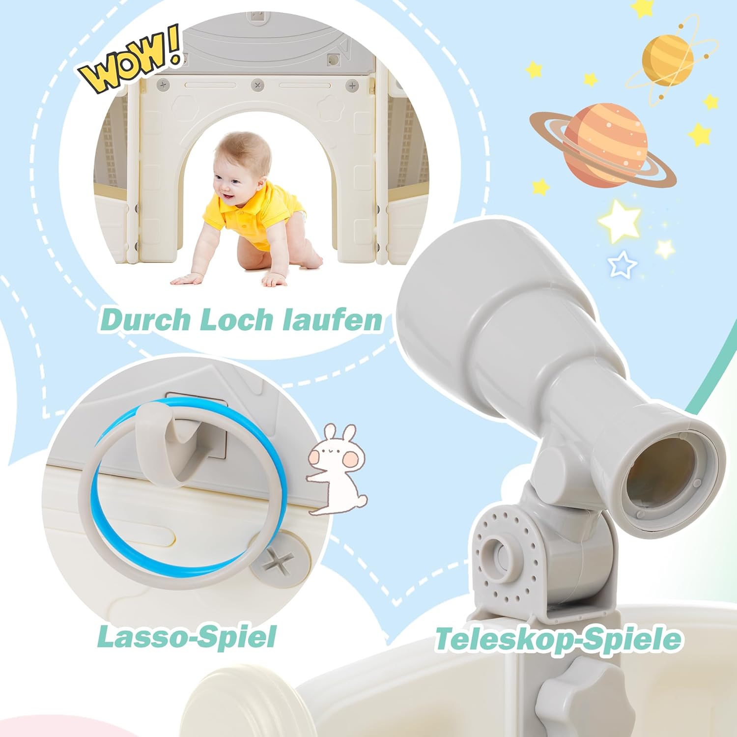 Parco giochi multifunzionale: il parco giochi 8 in 1 offre un divertimento infinito di gioco e scoperta con doppi scivoli, scale da arrampicata, piattaforme spaziose, giochi ad anelli, scatole portaoggetti, telescopi, canestri da basket e golf. Doppio divertimento: il parco giochi al coperto ha due scivoli in modo che i bambini possano scivolare allo stesso tempo, per un divertimento e un'eccitazione ancora più divertenti. Le risate dei bambini quando scivolano fianco a fianco, regalano ricordi indimenticabili e rende ancora più emozionante il tempo insieme alla famiglia. Design sicuro: la sicurezza dei bambini è importante per noi. Pertanto, lo scivolo è dotato di una zona cuscinetto più lunga e corrimano rialzati, che forniscono maggiore stabilità e sostegno e consentono ai bambini di giocare spensieratamente. Materiali certificati e sicuri: il set di scivoli è realizzato con materiali atossici certificati EN71 e garantisce i più elevati standard di sicurezza. I genitori possono essere certi che i materiali con cui giocano i loro figli siano sicuri e durevoli. Facile installazione e manutenzione: lo scivolo da giardino è facile da montare e pulire, risparmiando tempo ai genitori. Grazie alla semplice guida e alla manutenzione semplice, l'installazione e la manutenzione sono un gioco da ragazzi, consentendo ai genitori di trascorrere più tempo con i loro figli.