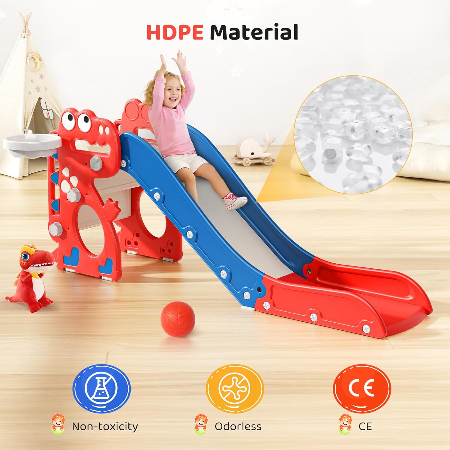 Scivolo per bambini,casetta da giardino per bambini, Set di Scivolo in Plastica per Interni per Bambini, Giochi Montessori per Parco Giochi(HT-21319)