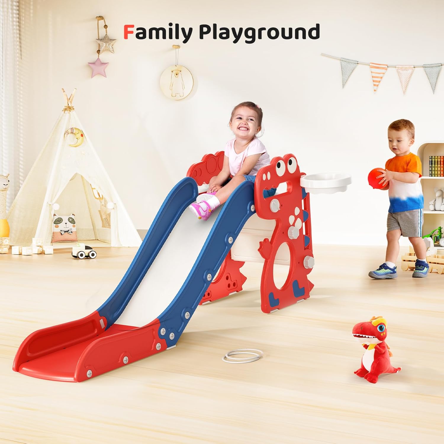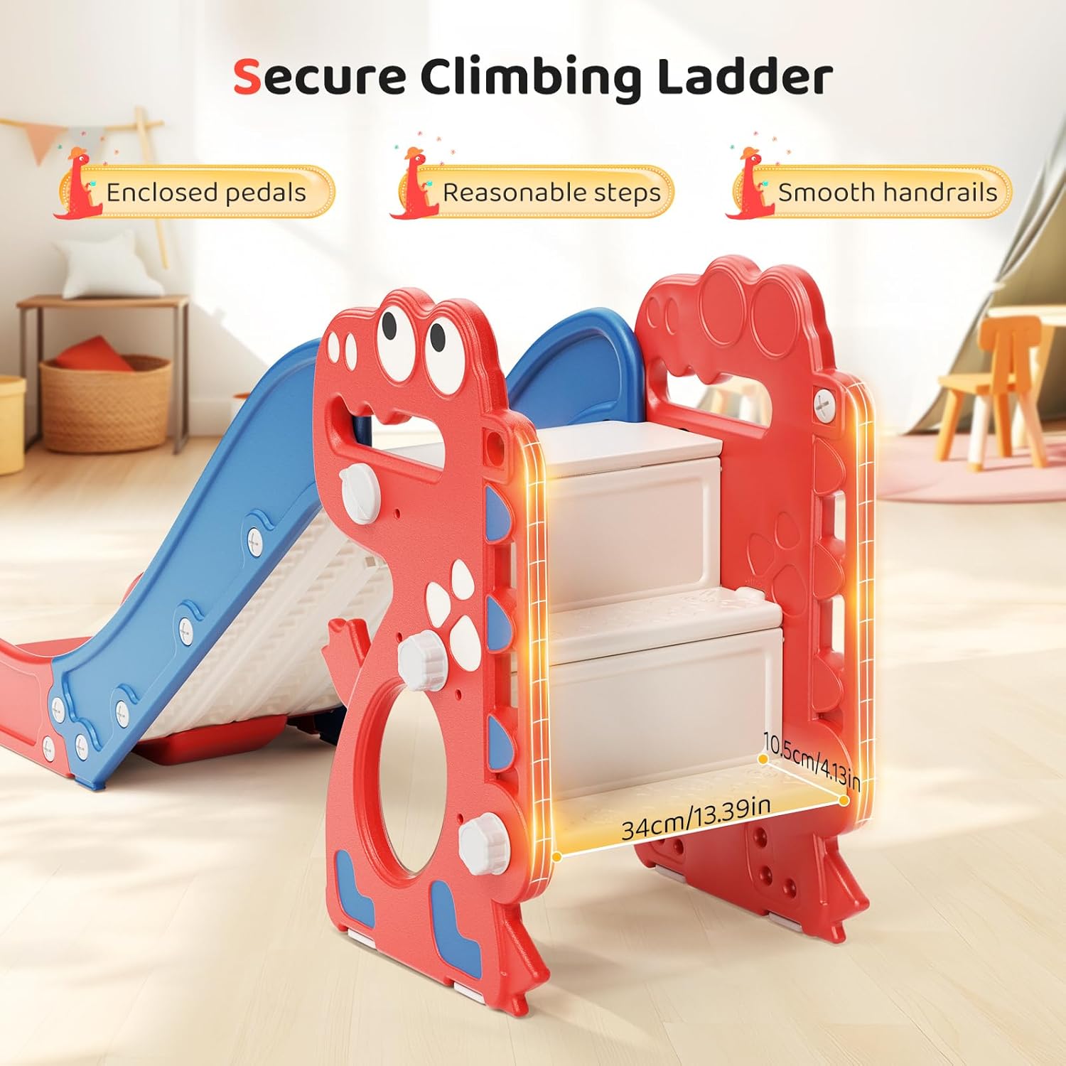 Consiglio di sicurezza: lo scivolo deve essere saldamente serrato durante il montaggio. Verificare che sia completamente allentato prima dell'uso per garantire la sicurezza dei bambini. Sicuro e robusto: realizzato in HDPE conforme agli standard EPA, con superfici lisce e angoli arrotondati, questo scivolo autoportante è delicato sulla pelle delicata dei bambini e può sostenere fino a 100 kg. Scivolo e rampicante adatti ai bambini: lo scivolo è dotato di corrimano e di una zona di protezione per garantire la sicurezza dei bambini. Ogni gradino è progettato con un'altezza ragionevole, un gradino chiuso e doppie maniglie per prevenire le cadute. Regalo ideale per i più piccoli: questo castello sportivo per bambini offre uno spazio per scivolare, arrampicarsi, gattonare, tirare e correre, aiutando bambini e bambine a migliorare la propria salute fisica, a sviluppare le capacità motorie e a fare esercizio fisico. Regalo ideale: questo versatile scivolo da interni è un regalo ideale per il tuo piccolo. Può ospitare da 2 a 3 bambini alla volta, il che promuove legami sociali e amicizie. Queste attività svilupperanno anche le loro capacità fisiche, creando un mondo meraviglioso per loro.