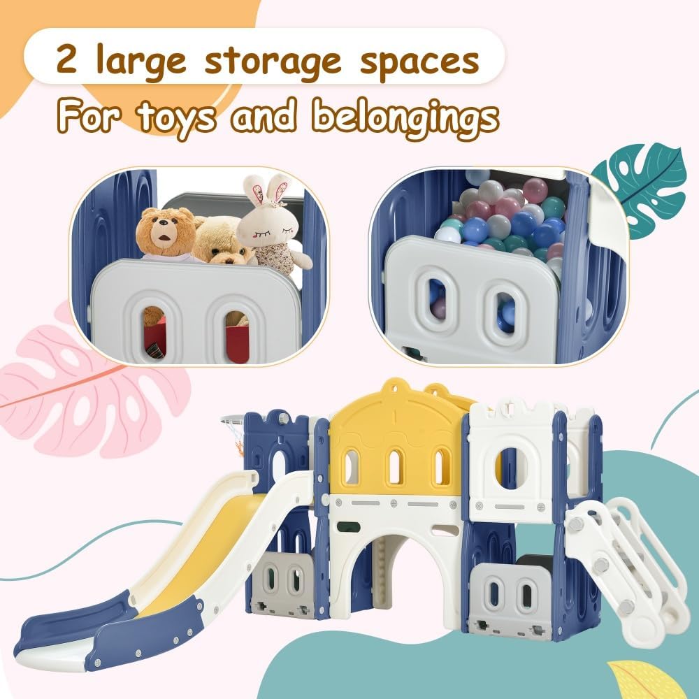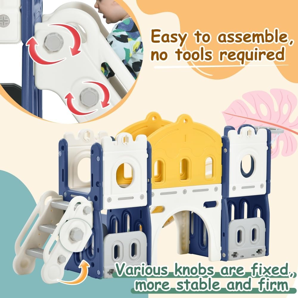 Parco giochi multifunzionale: questo parco giochi include uno scivolo, una scaletta, un canestro da basket, un deposito, un arco e un corridoio, offrendo un'esperienza di gioco divertente e avventurosa che aiuta i bambini a sviluppare forza, coordinazione e capacità motorie. Sicuro: lo scivolo con un'ampia area di pre-scivolo garantisce ai bambini un passaggio sicuro. È dotato di zone di accelerazione, decelerazione e di protezione, offrendo un'esperienza di scivolamento emozionante e sicura. Scivolo per bambini: ideale per interni spaziosi, cortili o giardini. Fai ai tuoi bambini un regalo di Natale o di compleanno rinfrescante! Dimensioni dello scivolo assemblato: L: 211 cm, P: 185 cm, A: 106 cm. Facile da montare: tutti i componenti si collegano tramite dadi in plastica, rendendo l'installazione senza attrezzi. Impermeabile sia per interni che per esterni, è facile da pulire con un panno umido. Note: lo scivolo è troppo grande, verrà spedito in due pacchi. Se ricevi un solo pacco, non preoccuparti, c'è un altro pacco in transito. Anche se due pacchi vengono spediti contemporaneamente, è molto probabile che non arrivino nello stesso momento.