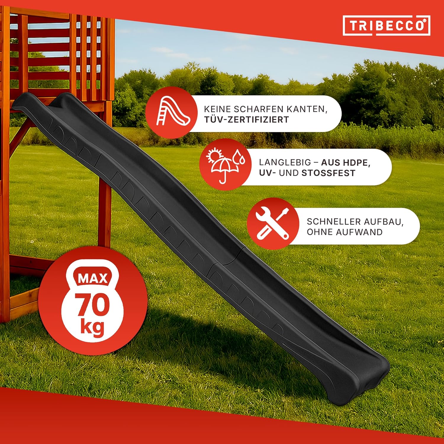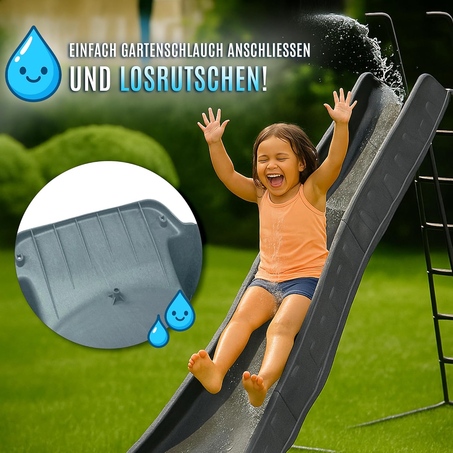 Nota importante: l'altezza di montaggio dello scivolo è di 150 cm (altezza piedistallo 1500 mm +/- 50 mm). Altre altezze di montaggio possono influire sul funzionamento dello scivolo e portare a incidenti pericolosi; 3 metri di lunghezza. Lo scivolo per bambini lungo 3 m in plastica HDPE è particolarmente stabile con una portata di 70 kg. È resistente alle intemperie e ai raggi UV, in modo che i colori vivaci rimangano a lungo Asciutto e bagnato: lo scivolo ondulato ha un'apertura nella parte inferiore a cui può essere collegato un tubo da giardino. Così lo scivolo può essere utilizzato anche come scivolo d'acqua nelle calde giornate estive; Ampia superficie antiscivolo: l'esclusivo design ondulato offre una grande superficie antiscivolo. Lo speciale processo di produzione con lo stampaggio a cascata TSG garantisce le migliori proprietà di scorrimento sia in condizioni bagnate che asciutte; Facile da montare: lo scivolo è facile da montare senza attrezzi. Per un fissaggio sicuro alla casetta o alla torre sono necessarie viti a testa svasata Ø 5/6 mm (incluse) e strumenti