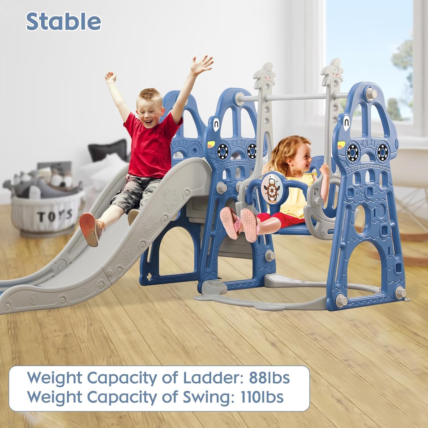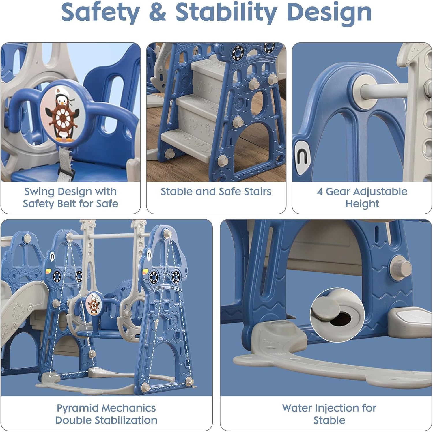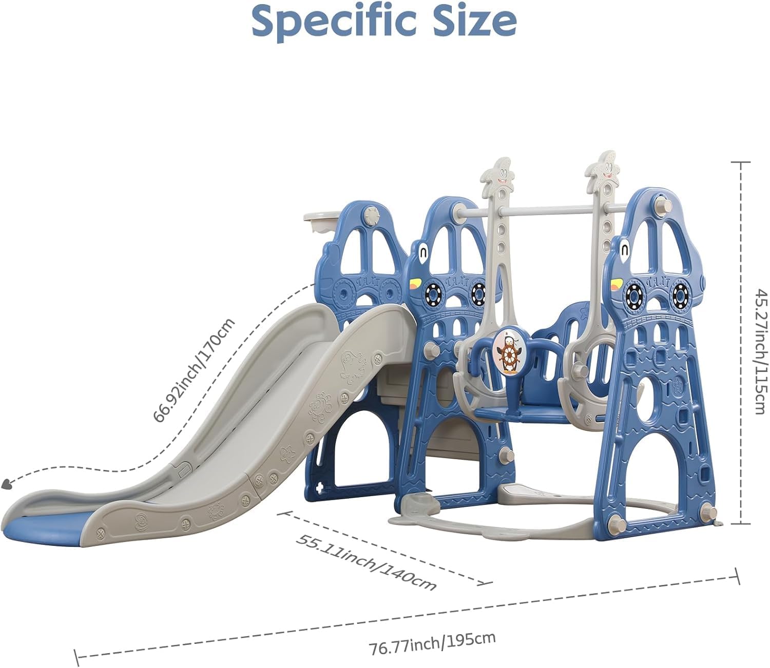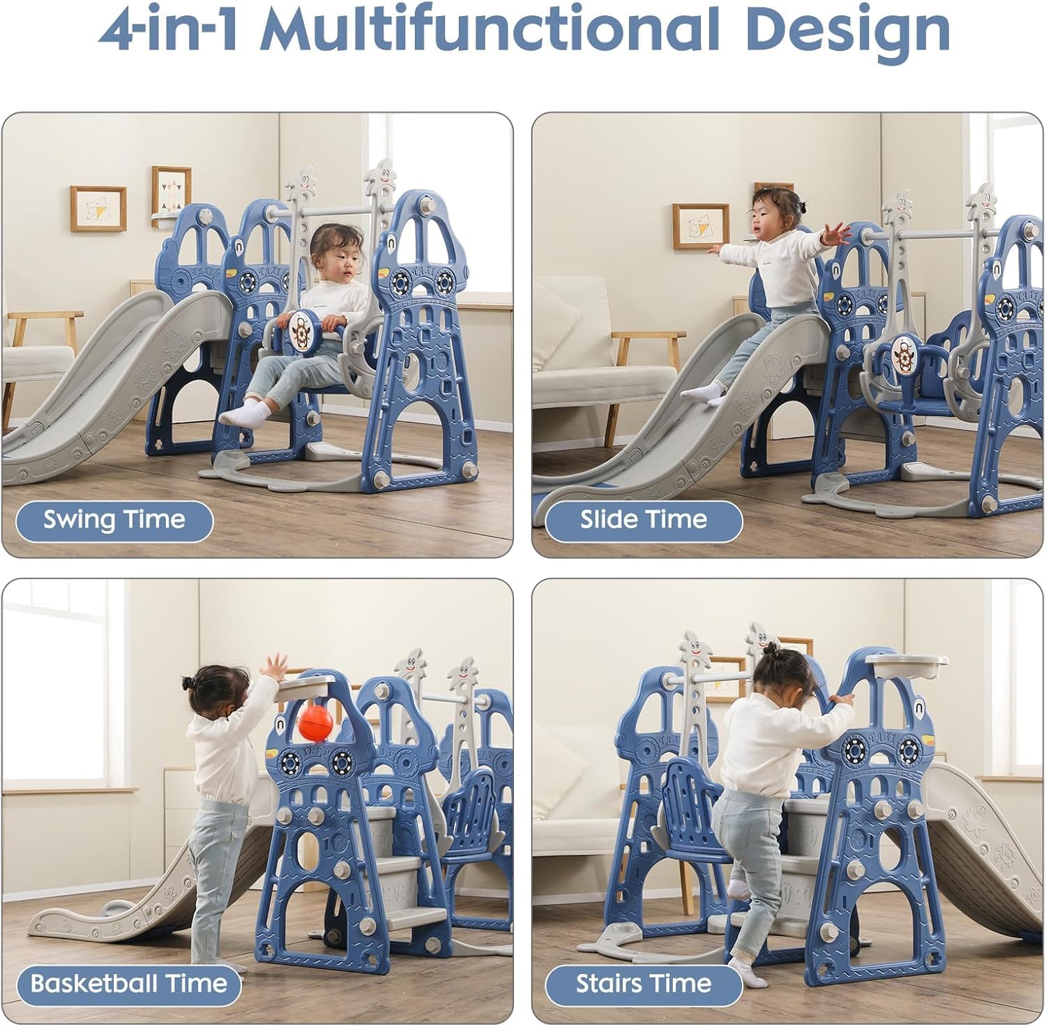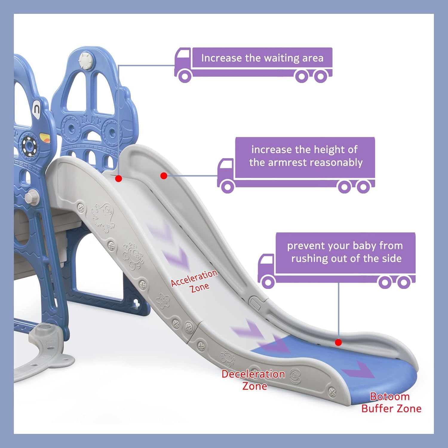 Set di scorrimento e swing 4 in 1: questo adorabile scivolo con braccioli dal design intelligente i bambini sono più sicuri quando salgono sulle scale prima di iniziare il viaggio di scorrimento. Il nostro set di gioco per bambini offre anche una varietà di attività per i bambini. È dotato di un anello da basket, gioco di arrampicata e dispositivo swing incluso per un maggiore divertimento. 【 Design del pedale anti-skid】 Il pedale ha una struttura antiscivolo che aumenta l'attrito, è esteticamente piacevole e può garantire la sicurezza dei bambini. L'estremità dello scivolo presenta una pendenza scivolosa extra lunga con un buffer che garantisce un'esperienza di scorrimento sicura e controllata. I bambini si fermeranno nell'area buffer invece di scivolare sul pavimento. Scivolo per bambini sicuro e stabile: questo set di scivoli e altalene è realizzato in HDPE di alta qualità + materiali PP, atossico, inodore e uniformemente rinforzato, rigorosamente testato e certificato per garantire stabilità e durata della rutch e dell'altalena. L'altezza dell'altalena può essere regolata per ospitare una gamma più ampia di età, e l'altalena viene fornita con uno schienale e una protezione intermedia, ringhiera protettiva ispessita e un telaio stabile. La distanza tra i pedali di 13 cm offre ai bambini un maggiore senso di sicurezza. Facile da assemblare: nessun attrezzo professionale, basta seguire le istruzioni chiare e precise, collegare ogni parte con viti piccole o grandi, quindi stringere, risparmiando tempo e fatica. Se avete domande durante il montaggio di questa pellicola, vi preghiamo di contattarci e risponderemo immediatamente al vostro messaggio entro 24 ore. Scivolo per bambini per interni ed esterni: utilizzato all'interno o nel cortile, questo set da gioco offre un parco giochi divertente e sicuro per il vostro piccolo. Molteplici possibilità di gioco: swing, scivolo, anello da basket (compreso il basket) per liberare la natura atletica dei bambini, rafforzare il loro entusiasmo per lo sport e godersi un'infanzia felice.