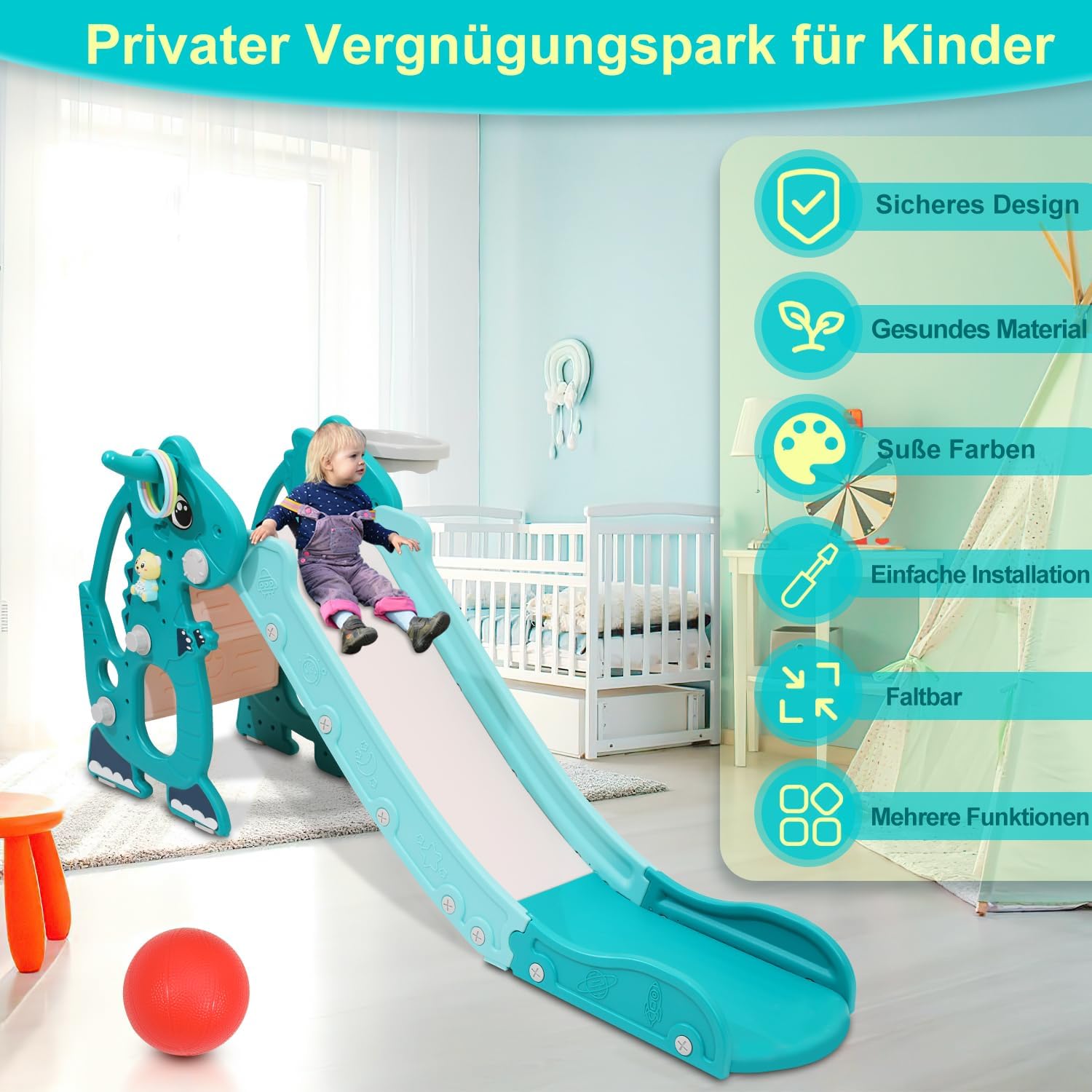 Materiali di alta qualità: scivoli tedeschi per bambini realizzati in materiale HDPE sicuro ed ecologico, plastica robusta, resistente ai raggi UV e alle intemperie, garantiscono una lunga durata dello scivolo. Strutture stabili, superfici antiscivolo, ringhiere sicure e bordi arrotondati garantiscono un piacere di gioco sicuro. Molteplici possibilità di gioco: lo scivolo per bambini offre una varietà di possibilità di gioco per promuovere l'immaginazione e le capacità motorie dei bambini. Funzioni aggiuntive come parete da arrampicata, lancio o moduli di gioco integrati garantiscono un divertimento vario e promuovono anche lo sviluppo fisico del bambino. Salvaspazio: gli scivoli da giardino sono spesso sviluppati con un design salvaspazio, che può essere utilizzato in modo ottimale sia in ambienti interni che esterni. Possono essere facilmente ripiegati o smontati in caso di necessità e quindi non occupano molto spazio quando non vengono utilizzati. Facile da montare e mantenere: lo scivolo per bambini viene fornito con una semplice istruzioni di montaggio che consente ai genitori di montare lo scivolo in modo rapido e senza problemi. Inoltre, sono facili da pulire e richiedono una manutenzione minima, quindi rimangono in ottime condizioni per lungo tempo. Può sostenere fino a 35 kg ed è adatto per bambini di età compresa tra 1 e 3 anni. Dimensioni: 145 x 38 x 67 cm (lunghezza x larghezza x altezza). Design ergonomico: gli scivoli per bambini sono progettati ergonomicamente per garantire il comfort e la sicurezza dei bambini. Le forme e le dimensioni ben studiate consentono di scivolare e arrampicarsi comodamente. Non lasciare mai che i tuoi bambini giochino incustoditi per garantire la loro sicurezza.
