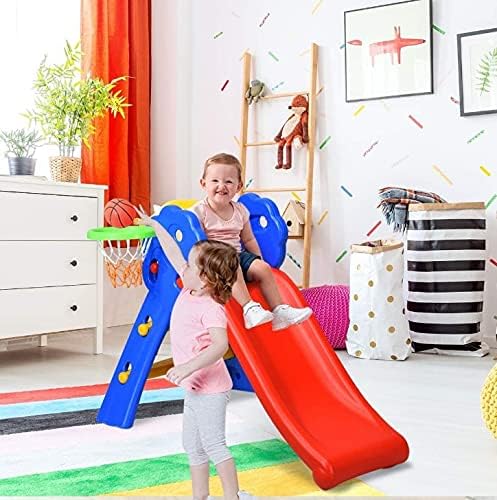 Scivolo con cestino da basket: Mirato alle caratteristiche dei bambini che amano perforare, arrampicarsi e scivolare, questo scivolo è dotato di scivolo e supporto da basket. Porta gioia infinita durante l'esercizio del potere di salto dei bambini. Incorpora fitness e intrattenimento e progetta stili diversi in base agli interessi e agli hobby dei bambini. È un nuovo parco giochi per bambini molto completo. Sviluppare una buona abitudine: il design dell'altezza dei gradini dello scivolo corrisponde all'altezza dei gradini del bambino, in modo che i bambini non camminino a vuoto. È più morbido quando scivola, che aiuta il bambino a afferrare il senso di equilibrio. Alta qualità e sicurezza: questo scivolo da esterno per bambini è realizzato in materiale PE non tossico, resistente all'usura ed ecologico, sicuro per i vostri bambini. Adattare a Più Luoghi: camera dei bambini, cortile, giardino, esterno e interno, ecc. E poi include uno scivolo e un cestino per esercitare il potere di salto del bambino e divertirlo senza fine.