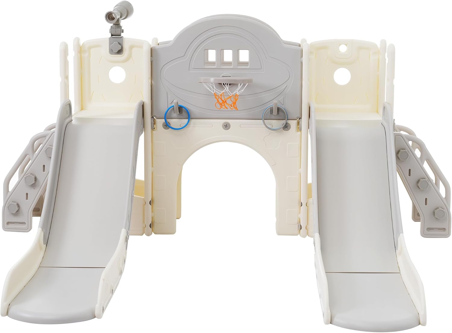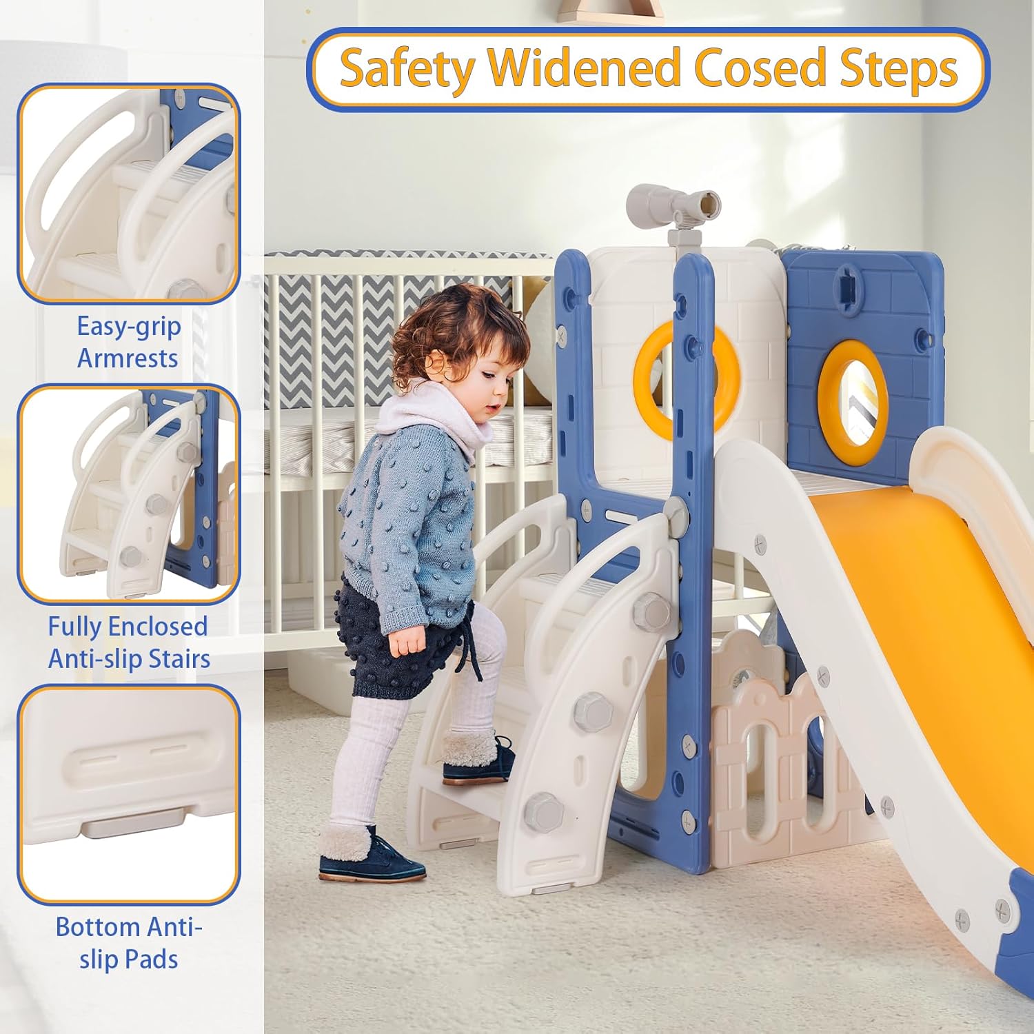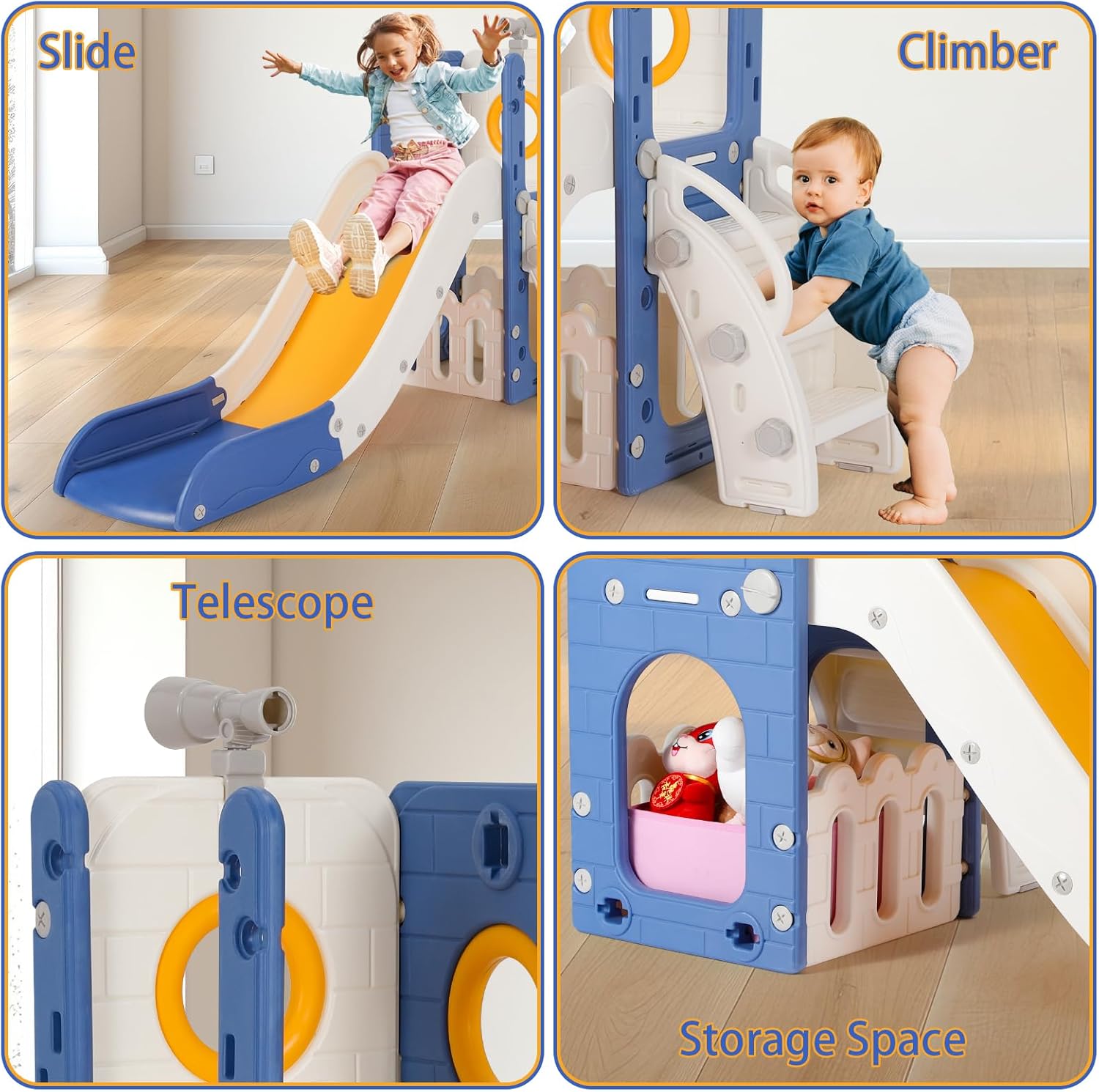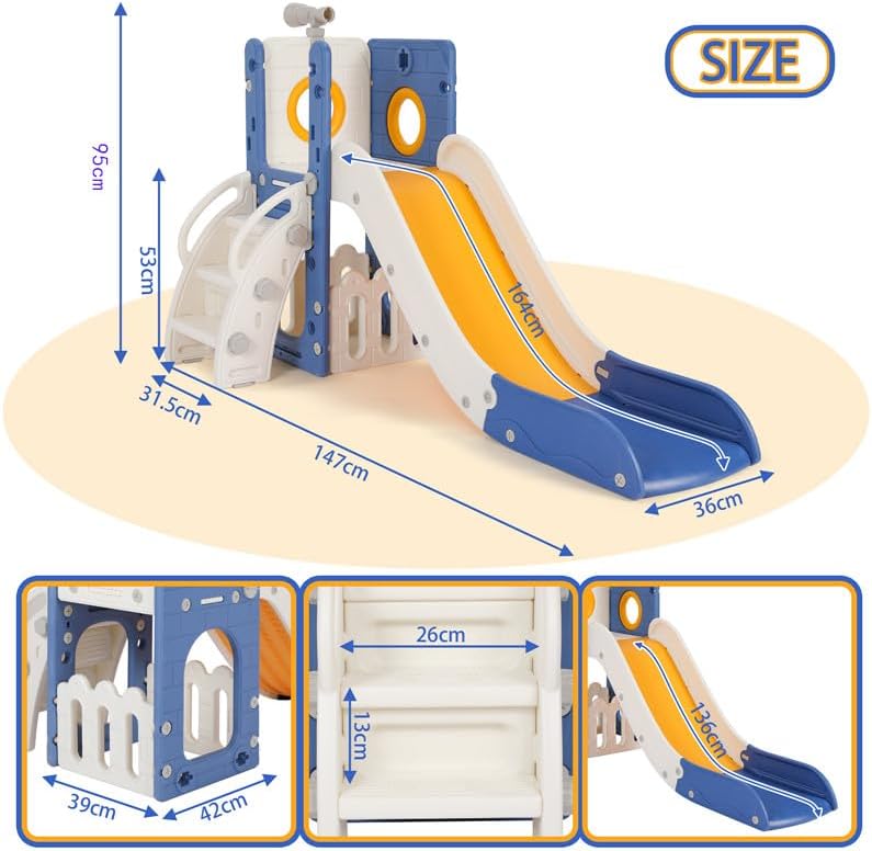 MATERIALE ADATTO AI BAMBINI: lo scivolo è realizzato in HDPE stabile e pannelli robusti. Corrimano rotondi per facilitare l'arrampicata. Utilizziamo bulloni di plastica più sicuri invece di bulloni di ferro per evitare che i bambini li lecchino. La superficie dello scivolo per bambini è lucidata e non graffia la pelle del bambino. DESIGN SICURO E SCIENTIFICO: gradini chiusi con motivi antiscivolo impediscono ai piedi dei bambini di scivolare o rimanere incastrati, riducendo il rischio di inciampare o cadere. Lo scivolo scientifico con zona di accelerazione, zona di decelerazione e zona cuscinetto consente ai bambini un atterraggio fluido e sicuro. STRUTTURA STABILE: lo scivolo per bambini è progettato con un sistema di struttura triangolare, che è più forte e più stabile. Quando i bambini scivolano sullo scivolo, la gravità su entrambi i lati viene distribuita sul fondo dello scivolo, più vicino al suolo, garantendo la sicurezza e la stabilità del dispositivo di scorrimento. Non c'è dubbio che sia stabile e abbia una grande capacità di carico di 60 kg. Lo scivolo per bambini è affidabile e durevole. AREA GIOCO COMPLETA: il set di scivoli multifunzionali per bambini piccoli ospita gradini da arrampicata, scivolo, telescopio e spazio di archiviazione. I bambini possono usare i set di scivoli per scivolare, arrampicarsi e mirare per promuovere la coordinazione, lo spirito avventuroso e le capacità motorie. Porta un divertimento senza fine ai bambini. PARCO GIOCHI INTERNO ED ESTERNO: il set di giochi per bambini piccoli è facile da rimuovere e può essere utilizzato all'interno o all'esterno. Ad esempio, il soggiorno, la stanza dei bambini, la sala giochi, gli asili nido, gli asili nido, i parchi giochi, il prato, il cortile o il giardino. Crea un parco giochi privato esclusivo per i tuoi bambini. È l'ideale per i compleanni dei bambini. ASSEMBLAGGIO E SERVIZIO: viene fornito con chiare istruzioni per l'uso, in modo da poter completare facilmente l'assemblaggio. Insistiamo nel realizzare buoni prodotti e servizi. In caso di domande, contattaci immediatamente per fornirti una soluzione.