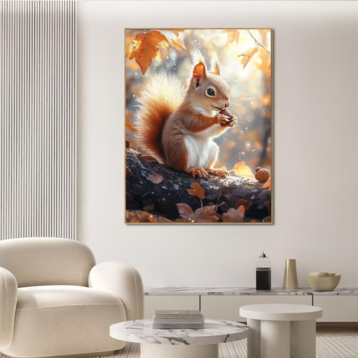 Scoiattolo Dipingere con i Numeri Foresta Paint by Numbers Dipingere con i Numeri Bambini con Cornice 90x120cm Tela, Kit Pittura Adulti Fai da Te con Vernici e 3 Pennelli, Home Room Decor F-780