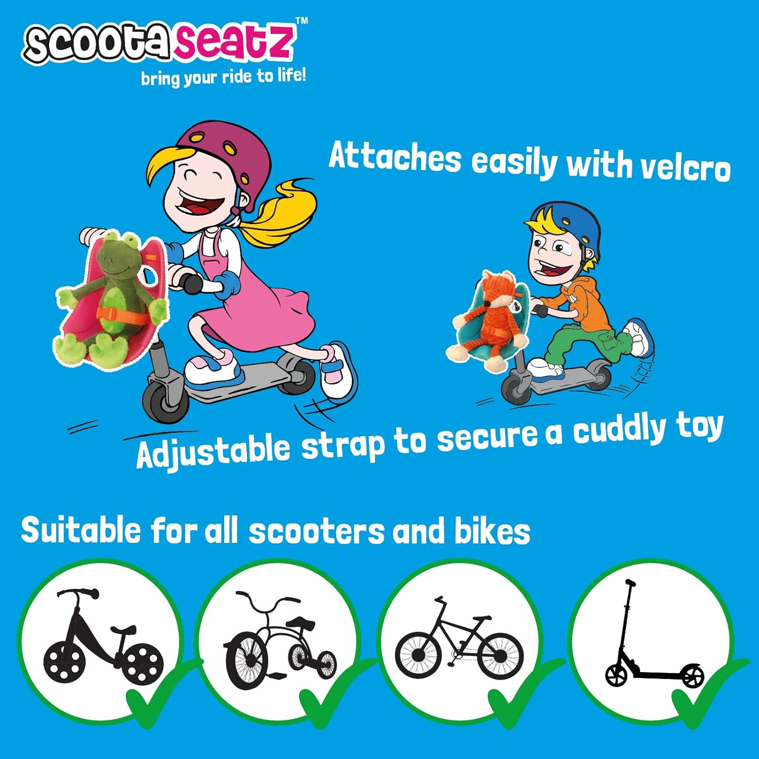 scootaseatz sono un nuovo, accessorio unico scooter Appositamente progettato per i bambini a portare i peluche per un giro Sono disponibili in un design gufo di taglio e incoraggiare giochi all' aperto Realizzato per tutte le marche di scooter, biciclette e tricicli Facile da montare e regolabile con cinghie per fissare un preferiti dei bambini Buddy
