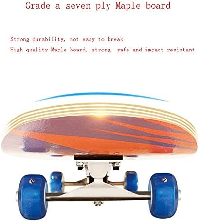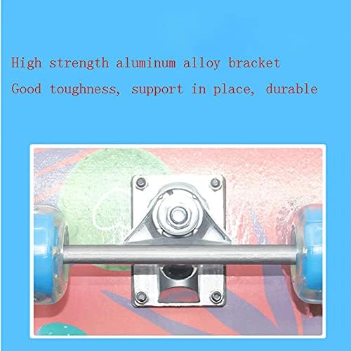 Staffa in lega di alluminio ad alta resistenza, buona tenacità, ben supportata, durevole. Entrata per principianti: molto adatto per l'apprendimento di skateboard e abilità utente avanzate. Cuscinetto silenzioso ABEC-7, basso rumore, durevole e liscio. L'anello di ammortizzatore di iniezione di PU ad alta elastica, scorrimento, sterzo e comfort dello sterzo è forte. Ruote PU resistenti all'usura elevata, suono basso scorrevole, sterzo flessibile.