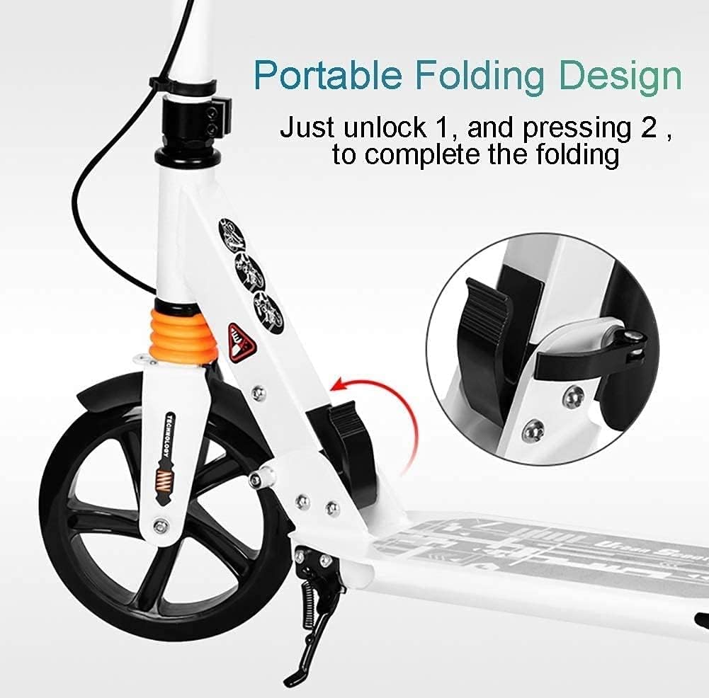 Giacca di sicurezza: è realizzata in lega di alluminio, comode maniglie in gomma e freni stabili. Partner di pendolarismo: questo scooter è progettato con un meccanismo pieghevole che lo rende facile da piegare ed è comodo da trasportare e utilizzare in pochi secondi. Guida stabile: le ruote in PU di alta qualità hanno un sistema di smorzamento, che può offrirti un'esperienza fluida. Un regalo per bambini e adulti: progettato come giocattolo e compagno di tutti, lo scooter può portarti a scuola, al lavoro e in qualsiasi altro luogo. In caso di problemi successivi, si prega di contattare il nostro servizio clienti al più presto, faremo del nostro meglio per risolverlo, grazie!