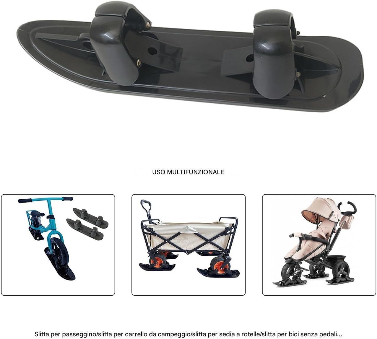 Gioco Polivalente Esterno: convertibile passeggino/slitta facilita attività all'aperto diverse, garantendo prestazioni affidabili su neve e terreno piano per esplorazioni più stimolanti Adattabilità Completa: Compatibile con golf cart, scooter, passeggini e da campeggio, si installa istantaneamente senza modifiche per diverse esigenze ricreative Gioco Multiterreno: Adatta a vari scenari esterni, questa soluzione ricreativa cambia funzione senza sostituzioni di componenti, garantendo divertimento tutto l'anno su qualsiasi superficie 2. Aggancio Rapido: Ideato per un montaggio veloce, questa soluzione esterna a uso immediato offre un di fissaggio efficiente e un'installazione senza attrezzi, permettendo una conversione in slitta con massima facilità Qualità Durevole: Funzionalità costante su superfici irregolari grazie a materiali robusti, durabilità rinforzata e design per utilizzo affidabile e sicuro dei bambini all'aperto