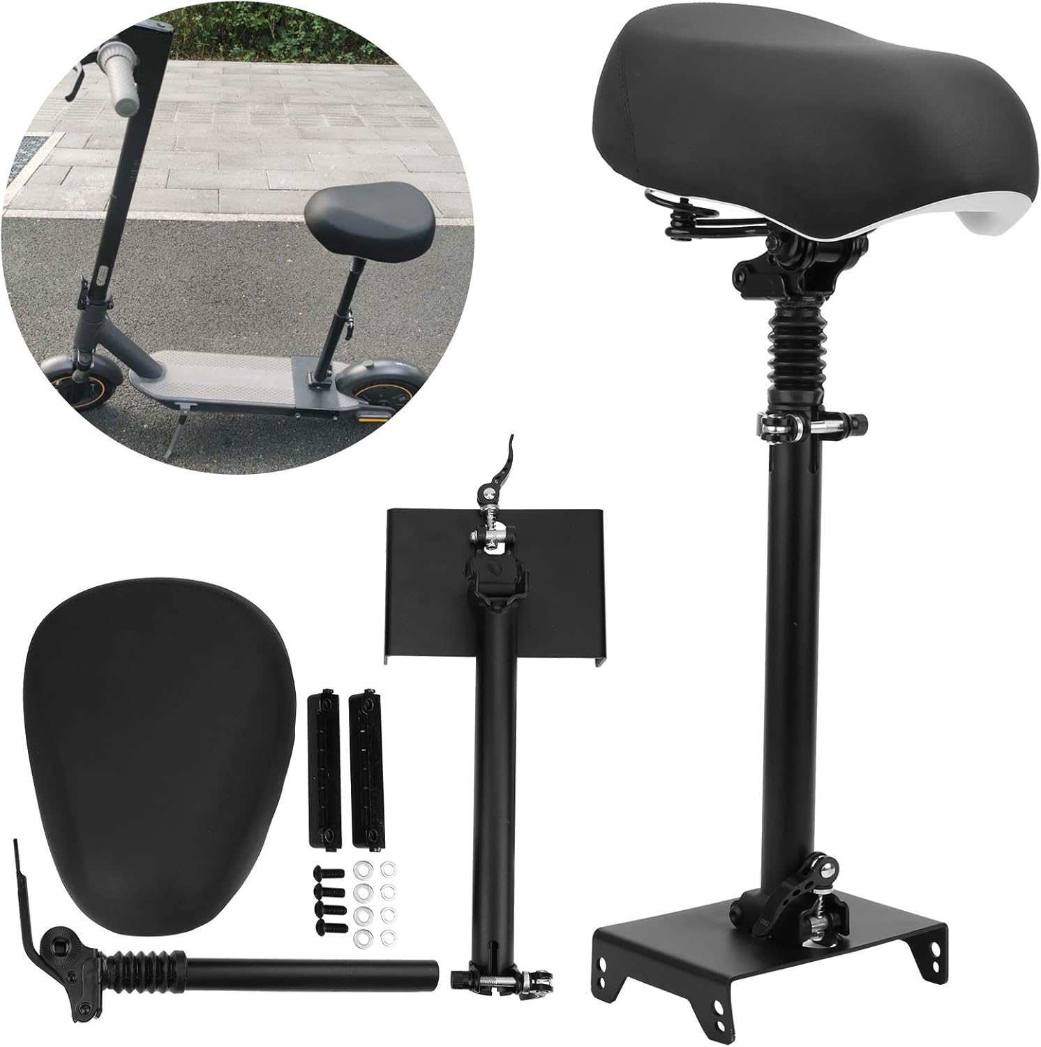 Scooter Questo è realizzato appositamente per G30. Si prega di fare attenzione con altri modelli. L'altezza è di 18 cm/7,1 cm rispetto all'altezza 'utente. L'altezza massima 'area circostante è 70 cm/27,6 pollici, l'altezza 'area circostante è 88 cm/34,6 pollici. Lo scooter 30 è progettato con doppio smorzamento, due molle di smorzamento sono installate sul tubo verticale e una molla ad alta pressione è installata. Puoi quasi farlo sulla strada e far fronte alle cattive condizioni stradali. La sella con cuscino di alta qualità per scooter per uccelli non offre comfort, sella in morbida spugna Omic, design allargato, rende la guida comoda e piacevole. Lo scooter può essere piegato comodamente quando non viene utilizzato. Risparmia spazio, facile da usare.