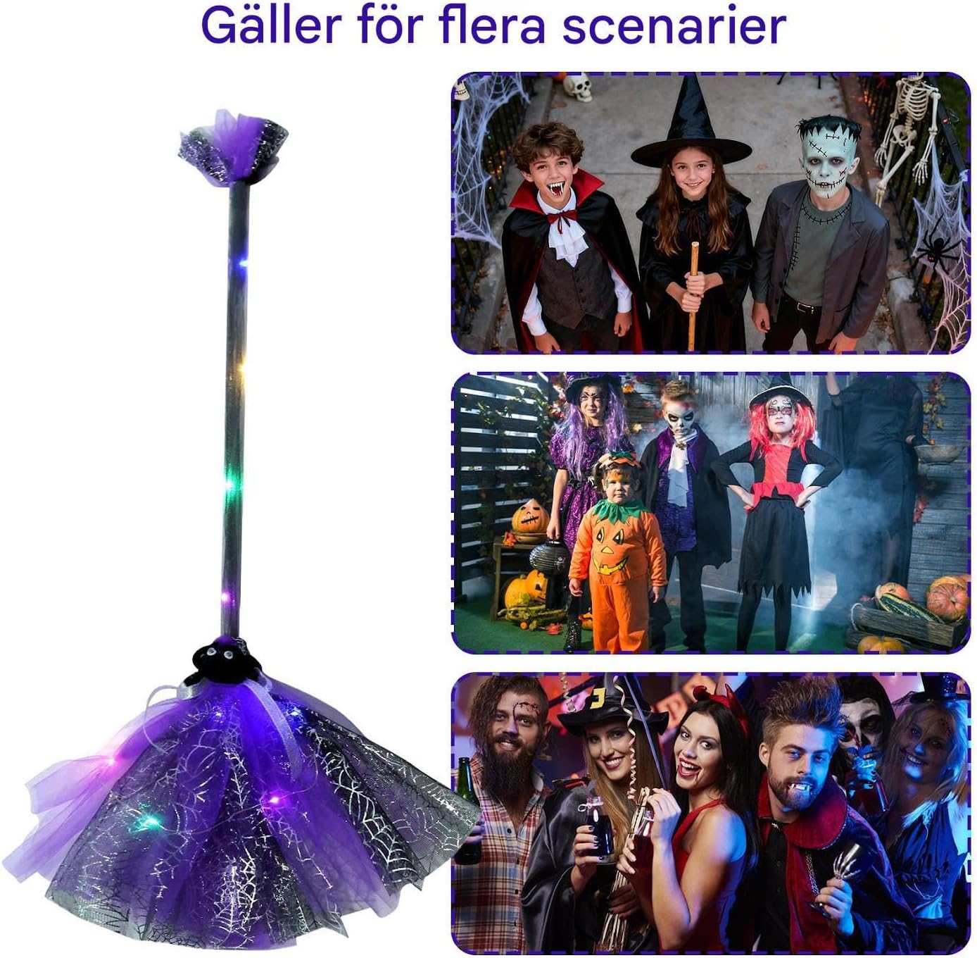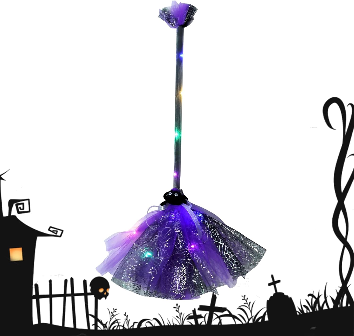 Scopa leggera adatta ai bambini: il design della scopa si concentra su comfort e stile, con una struttura leggera adatta ai bambini. Migliora i costumi di Halloween con la sua nuova estetica del fine settimana e si integra perfettamente nell'outfit a tema strega durante gli eventi festivi. Ideale per creare un'esperienza indimenticabile di Halloween. Effetti luminosi a LED eccezionali: questa scopa da strega di Halloween è dotata di illuminazione a LED incorporata che produce effetti di luce abbaglianti e una migliore visibilità notturna. È un accessorio indispensabile per il costume di Halloween per attirare l'attenzione durante le riunioni notturne o le parate festive, assicurandoti di essere visto chiaramente e crea un effetto accattivante in ambienti bui durante le celebrazioni di Halloween. Crea una coesione festosa: la scopa da strega di Halloween funziona con un rompighiaccio durante le riunioni, favorisce il contatto tra gli ospiti e migliora l'atmosfera festiva durante le feste di gruppo di Halloween o gli eventi a tema. Questa scopa contribuisce a creare un'atmosfera uniforme e coinvolgente in cui gli ospiti possono legarsi in modo divertente e memorabile durante varie feste ed eventi festivi, rendendolo un accessorio perfetto per rafforzare la comunità e la gioia di tutti i tipi Comodità con controllo tattile: questa scopa per strega di Halloween è dotata di un avanzato controllo touch per l'illuminazione a LED, che garantisce prestazioni affidabili e una facile gestione della luce. Bambini e adulti possono creare senza sforzo un'atmosfera rilassata e festosa durante le riunioni del fine settimana o le feste di Halloween. Con il suo design facilmente accessibile, consente una regolazione regolare dell'illuminazione per migliorare ogni evento ed è perfetto per aggiungere un tocco alla vita di tutti i giorni Uso della decorazione multiscenario: questa scopa per strega di Halloween funziona come oggetto di scena da collezione portatile e un display montabile a parete, mescolando l'illuminazione fantasy inquietante per creare un'atmosfera festosa istantanea, alla festa di Halloween o a un evento a tema per esperienze immersive. Si adatta a diverse situazioni e migliora l'umore offrendo una soluzione decorativa che si integra facilmente in diversi ambienti, dalle riunioni pubbliche.