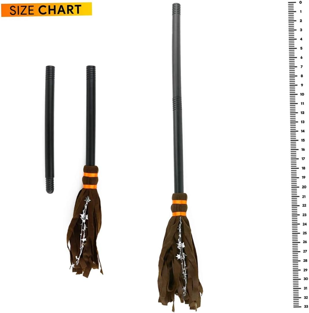 La scopa della strega è l'accessorio perfetto per i costumi da strega o mago di Halloween. Questo è l'accessorio in costume perfetto per una festa in costume per ragazze o ragazzi a tema streghe. La scopa di questa strega è realizzata con materiali testati e sicuri. Questa scopa può essere utilizzata da qualsiasi bambino con un cappello a punta e una veste nera come costume da strega. La spaventosa scopa da strega misura 72x18 cm/28,35x7,09 pollici.