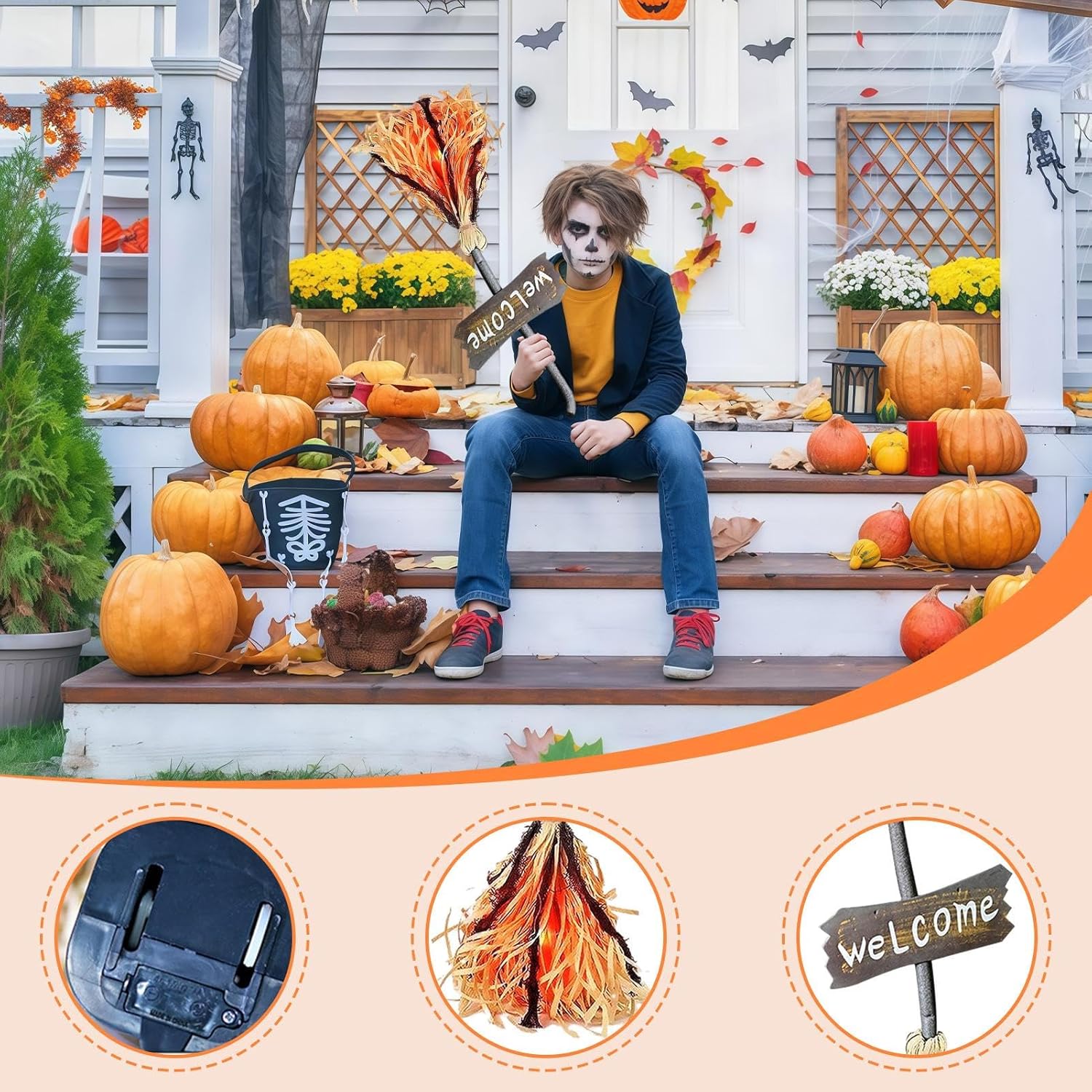 Simulazione dinamica di volo: grazie a un meccanismo di movimento nascosto si ottiene un sollevamento autonomo e una leggera vibrazione attraverso un meccanismo di movimento nascosto e simulare alloggi di volo realistici, garantendo un uso regolare e stabile con il sistema di bilanciamento integrato per un'esperienza visiva divertente Attivazione del suono immersivo: migliora l'esperienza coinvolgente con un modulo touch sensibile che innesca un effetto ronzio spettrale attraverso un leggero tocco del manico della scopa da strega per un'atmosfera coinvolgente e interattiva di Halloween Vintage Holiday Accent: questa scopa da strega combina un design a tema fantasy con finitura opaca e intagli intricati, rendendola un'aggiunta ideale a Halloween, eventi cosplay e decorazioni festive Meccanismo avanzato anti-spipo: una combinazione di contrappeso integrato e particelle di gomma antiscivolo garantisce Processo di assemblaggio senza sforzo: pronto per la visualizzazione in semplici passaggi senza bisogno di strumenti; collegare e attivare facilmente i componenti