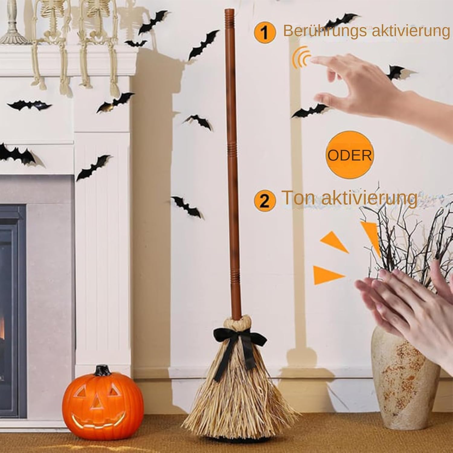 Stabile equilibrio della scopa: combina un posizionamento equilibrato con una lavorazione artigianale durevole per una presentazione stabile, resiste al rischio di ribaltamento e prolunga notevolmente la durata di utilizzo come elemento decorativo Decorazione efficace: come elemento chiave nella decorazione di Halloween, la classica scopa da strega serve per accenti di ragnatela e lanterne di zucca, arricchisce efficacemente l'atmosfera inquietante con un discreto fattore spaventoso Suoni attivati dal movimento: verricello realistico e suoni spaventosi vengono attivati dal movimento, trasformando qualsiasi stanza in una scena audio inquietante con atmosfera interattiva di Halloween per un'atmosfera infestata istantanea Risparmio di tempo: la costruzione integrata garantisce un montaggio senza attrezzi in pochi secondi – questa scopa da strega ottimizza il tempo di decorazione per eventi e celebrazioni Altalena automatica: crea facilmente un'incantevole decorazione grazie al sistema di rotazione motorizzato – garantisce un movimento autentico e funge da accessorio dinamico per i mondi a tema delle streghe