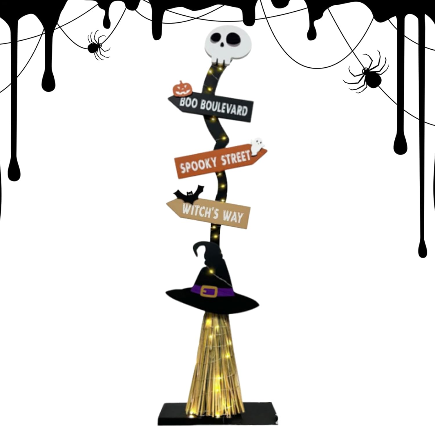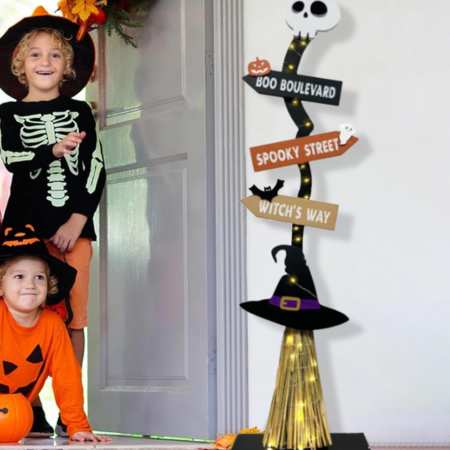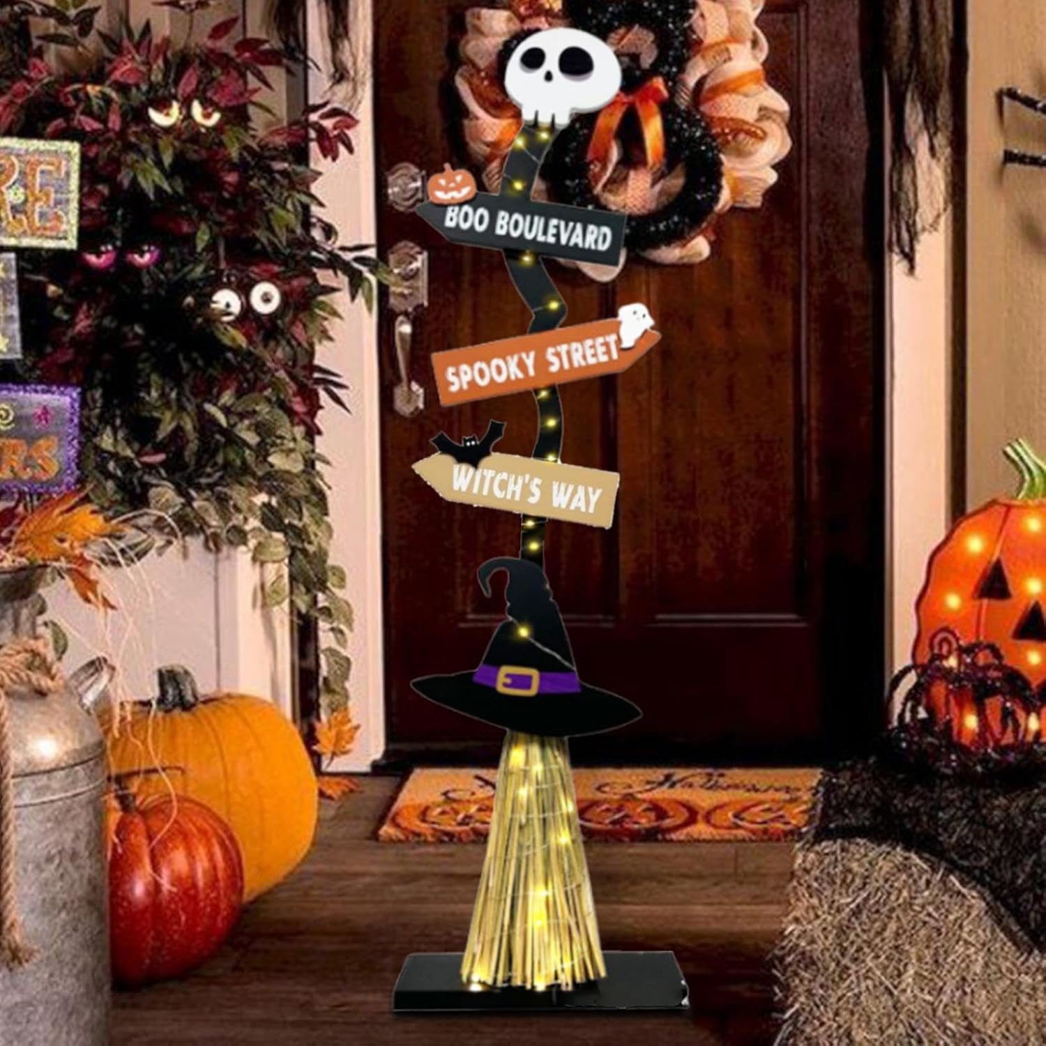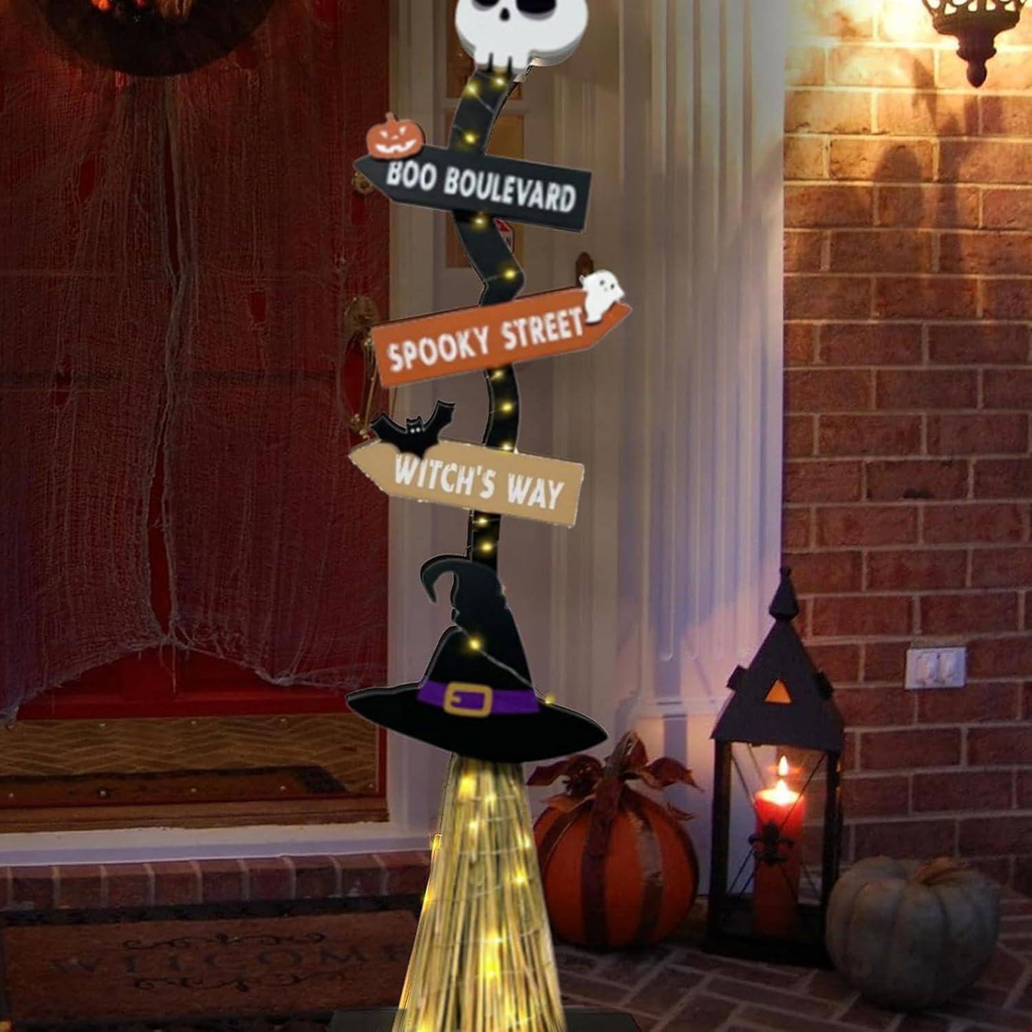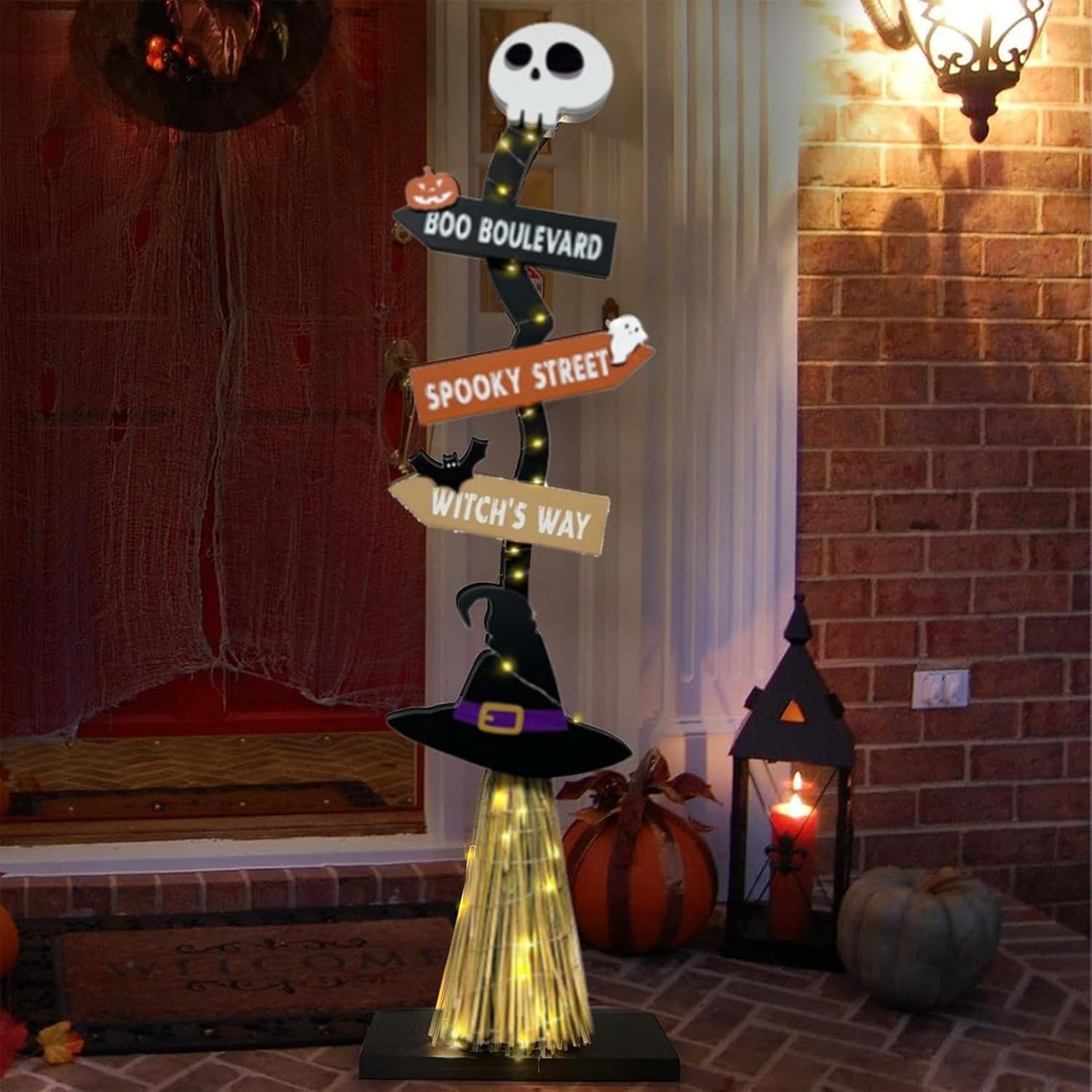 【Con effetti luminosi】 Migliora l'atmosfera horror di Halloween con la nostra scopa da strega illuminata. Si illumina al buio e funge anche da normale decorazione durante il giorno, aggiungendo un tocco spettrale a qualsiasi ambiente. Configurazione semplice: semplifica l'installazione con le viti incluse, le istruzioni passo passo e i componenti essenziali come le lucine, batterie AA non incluse. Durata assicurata: realizzata in legno robusto, questa scopa da strega di Halloween garantisce durata e sicurezza durante l'uso. È resistente all'usura, allo strappo e non si deforma facilmente, il che lo rende un'opzione durevole e riutilizzabile., Must-have di Halloween: usa questi affascinanti accessori e oggetti di scena per creare uno sfondo a tema Halloween per la festa. Che si tratti di dolcetto o scherzetto o di ospiti, adoreranno l'atmosfera horror che crei con la nostra scopa da strega illuminata.,Ampia applicazione: solleva le tue decorazioni di Halloween con la scopa da strega illuminata. Adatto per ampi cortili, portici, angoli, corridoi o caminetti, aggiunge un fascino horror che intensifica gradualmente l'atmosfera di Halloween
