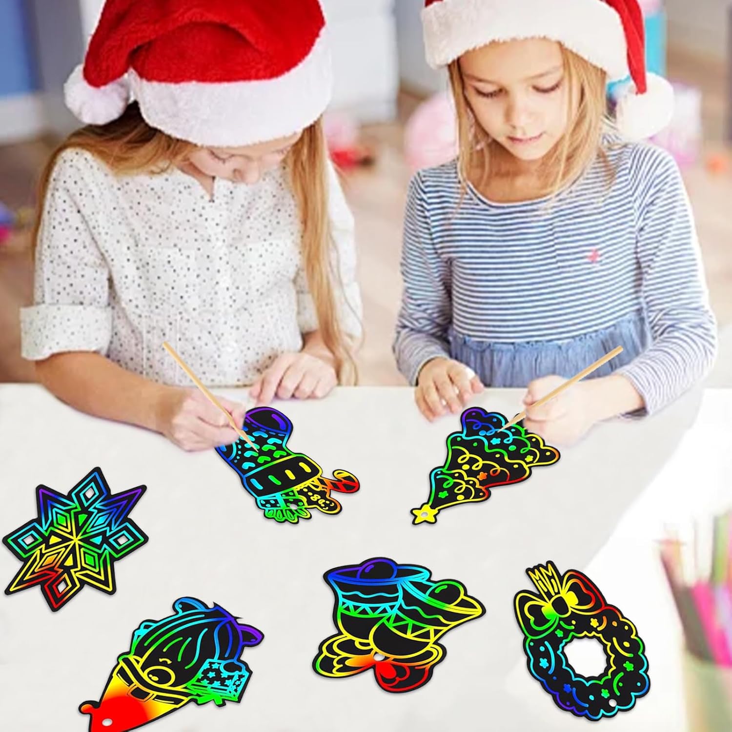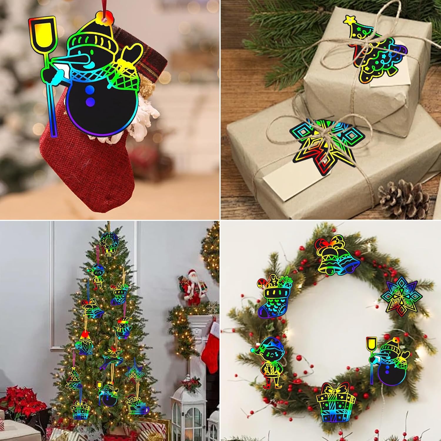 ❄️【Elenco di imballaggio】Il set include 48 biglietti da grattare natalizi con 12 disegni festivi, 48 strisce colorate e 24 bastoncini di bambù. Scatena la creatività del tuo bambino con questo set di 48 pezzi di Natale da grattare! 🎄【Resistente e leggero】I nostri scratch art natale sono realizzati in cartoncino spesso di alta qualità con rivestimento nero. I bastoncini di bambù sono ecologici, sicuri per i bambini e resistenti allo sbiadimento e alla deformazione. Inoltre, sono inodori e privi di polveri tossiche, offrendo un'attività sicura e divertente per i bambini. 🎅🏻【Disegni festivi e colorati】Il scratch art bambini include una varietà di forme a tema natalizio, come alberi di Natale, fiocchi di neve e pupazzi di neve. I vivaci colori dell'arcobaleno che appaiono con ogni graffio aggiungono un tocco magico al tuo arredamento natalizio, rendendo questi ornamenti un'aggiunta eccezionale a qualsiasi albero di Natale. ⛄【Decorazioni facili da appendere】Il gratta e vinci per bambini include corde per appendere, rendendolo un modo semplice per aggiungere un tocco personale al tuo arredamento natalizio. Una volta completata l'opera d'arte, ogni decorazione può essere facilmente appesa ad alberi di Natale, mensole, finestre o ovunque sia necessario un tocco di colore e creatività. 🛷【Ideale per attività di gruppo e bomboniere】Questo scratch paper bambini è perfetto per attività di gruppo, che si tratti di una riunione di famiglia, un evento in classe o una festa di Natale. Queste decorazioni scratch art sono anche fantastiche bomboniere, consentendo a ogni bambino di portare a casa un pezzo del proprio divertimento creativo per le vacanze.