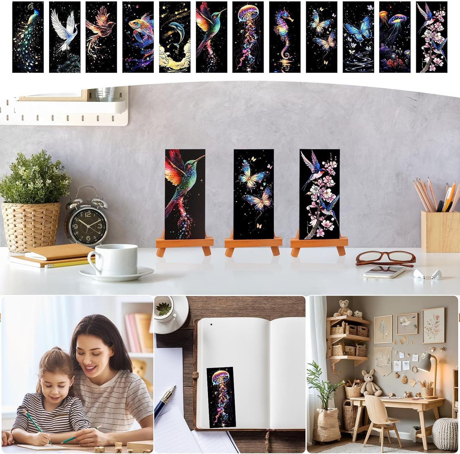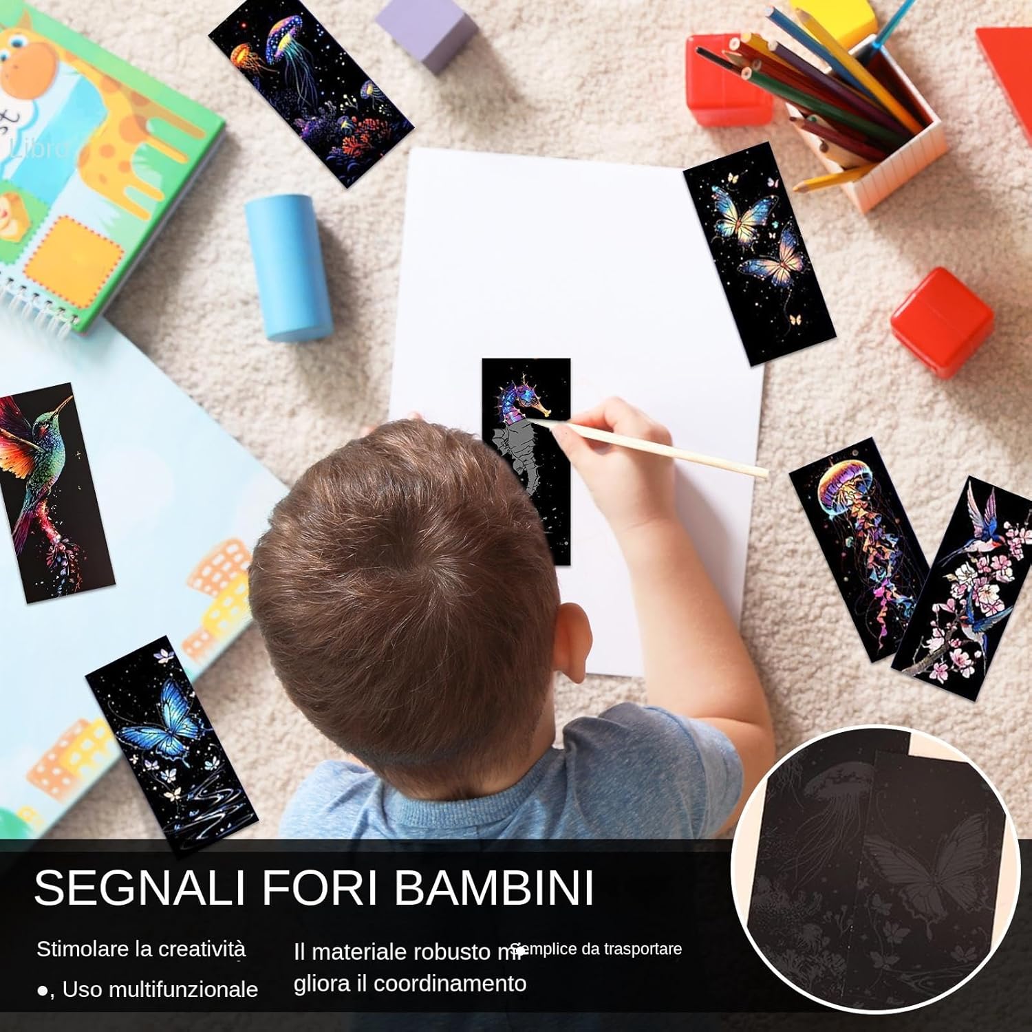 Ispira l'arte: aumenta le abilità artistiche dei bambini coinvolgendo attività di graffio che sbloccano la loro creatività e promuovono espressioni fantasiose Sviluppo di abilità di assistenza: questi segnalibri graffiati promuovono l'apprendimento e la curiosità, migliorano le abilità o il coordinamento dei bambini attraverso attività creative e impegnate Ottimo materiale: con colori vivaci e robusti e spessi carta, questi segnalibri resistenti a scratch vengono per la sicurezza e la durata senza leggere Diverse funzioni: con una invisibile, i segnalibri per bambini vengono trasformati in un messaggio segreto e aggiungono divertimento alla loro esperienza di lettura Facile da trasportare: per motivi di comodità, questo segnalibro leggero e portatile è ideale per l'uso a casa, a scuola o quando si viaggia per assicurarsi che la tua pagina venga spesso salvata