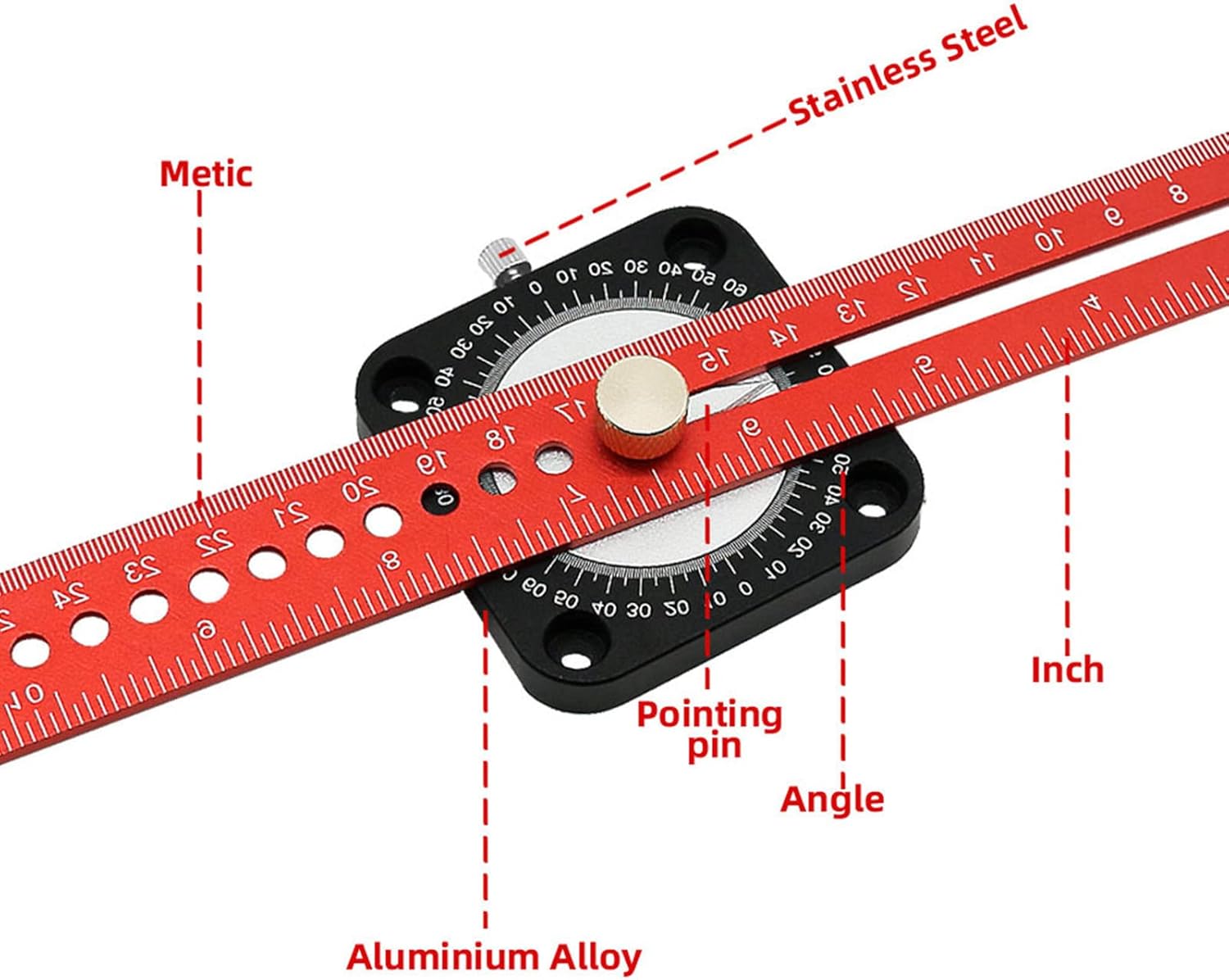 [Marcatura accurata] Il sovrano a doppia metrica e in inglese fornisce precisione nel lavoro di marcatura. [Materiale premium] realizzato in lega di alluminio durevole, questo scribra di bussola mantiene forma per l'uso a lungo termine. [Misurazione dell'angolo facile] Supporta la rotazione a 360 gradi per un posizionamento preciso dell'angolo, strumento affidabile per la lavorazione del legno. [Disegno preciso] consisteva in una bussola e un righello, questo strumento migliora il disegno di linee parallele e verticali. [Design portatile] Compatto e leggero, comodo per i progetti di lavorazione del legno esterno.