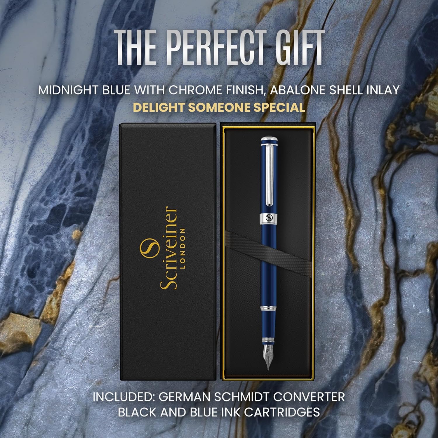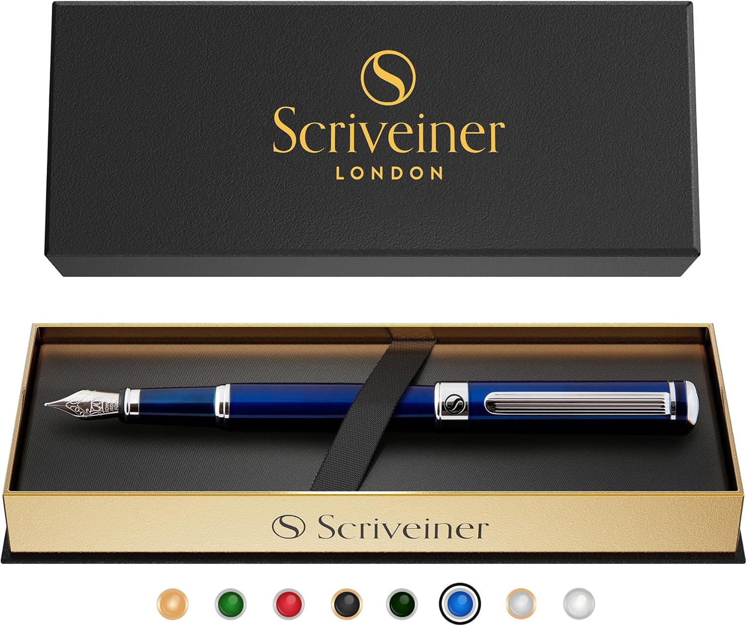 Godetevi la sensazione di avere una vera penna di lusso tra le mani - Splendida stilografica di lusso di Scriveiner. Ottone con lacca blu e appuntamenti cromati. Qualità premium e lusso sobrio di un marchio britannico di boutique. Trascrivete I vostri pensieri in modo scorerevole - La penna viene fornita con un pennino medio, un convertitore e due cartucce di ricambio (una nera e una blu). Il sistema di inchiostro tedesco permette alla penna di scivolare senza problemi su qualsiasi tipo di carta. Perfettamente ponderata ed equilibrata per il vostro comfort di scrittura - questa è una penna di lusso progettata per chi ama scrivere ogni giorno. Fate colpo su colleghi e amici - La penna viene fornita in una bella scatola di presentazione che la rende il regalo perfetto. Sia come penna casual o executive, per lavoro, ufficio o per uso personale, la vostra stilografica Scriveiner sarà ammirata da chi vi circonda. Eleganza, raffinatezza e lusso discreto - Le penne Scriveiner sono progettate a Londra, in Inghilterra e condividono gli attributi senza tempo del classico design britannico. Acquista con totale fiducia - Incredibile servizio clienti e garanzia di rimborso. I nostri clienti sono al centro di tutto ciò che facciamo. Se non siete soddisfatti, rimedieremo o vi rimborseremo, a seconda di ciò che preferite. Conosciamo la qualità dei nostri prodotti e vogliamo che abbiate il meglio possibile.
