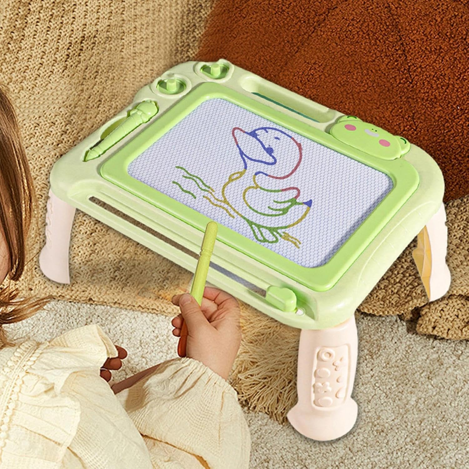 Maggiore flessibilità artistica: con una penna migliorata e quattro gambe staccabili che possono essere regolate a diverse angolazioni, questo tavolo da disegno magnetico favorisce la creatività e l'immaginazione, adattandosi alle esigenze artistiche del tuo bambino. Migliora l'apprendimento e la creatività dei bambini piccoli: porta l'esperienza di apprendimento del tuo bambino alla fase successiva con il nostro tabellone da disegno magnetico. Migliora il riconoscimento del colore, incoraggia l'immaginazione e migliora la coordinazione mano-, rendendolo uno strumento educativo pratico e divertente. Con una forte capacità di carico: delizia i giovani artisti con la nostra tavola da disegno magnetica che ferventemente la loro immaginazione e si rivolge al loro tempo di gioco in età prescolare. Con una forte capacità di carico, colori vivaci per attirare l'attenzione e la dimensione perfetta, i bambini possono liberare facilmente la loro creatività e godersi il divertimento della creazione. Materiale resistente all'usura: realizzato in materiale ABS di alta qualità, il nostro piano da disegno magnetico presenta una costruzione sicura e resistente con angoli lisci e resistenti all'usura. Le superfici facili da pulire favoriscono l'espressione artistica semplice, garantendo ore di più divertimento Ampia gamma di usi: questo tavolo da disegno magnetico offre più opportunità per i bambini di imparare e giocare. Sia che sia usato a casa, a scuola o in viaggio, provoca immaginazione e creatività sia nei ragazzi che nelle ragazze. Uno strumento popolare e versatile, è perfetto per bambini di tutte le età e background.