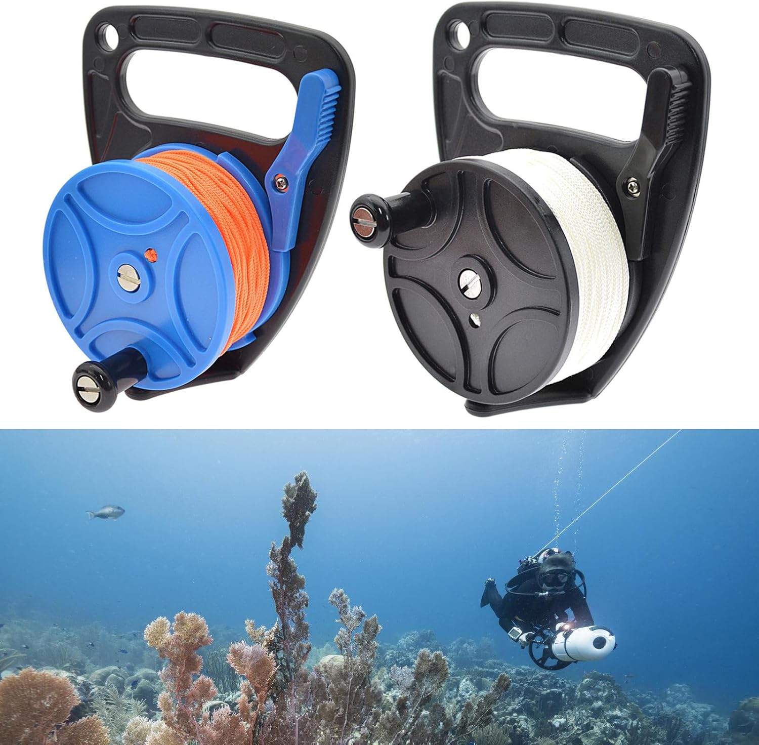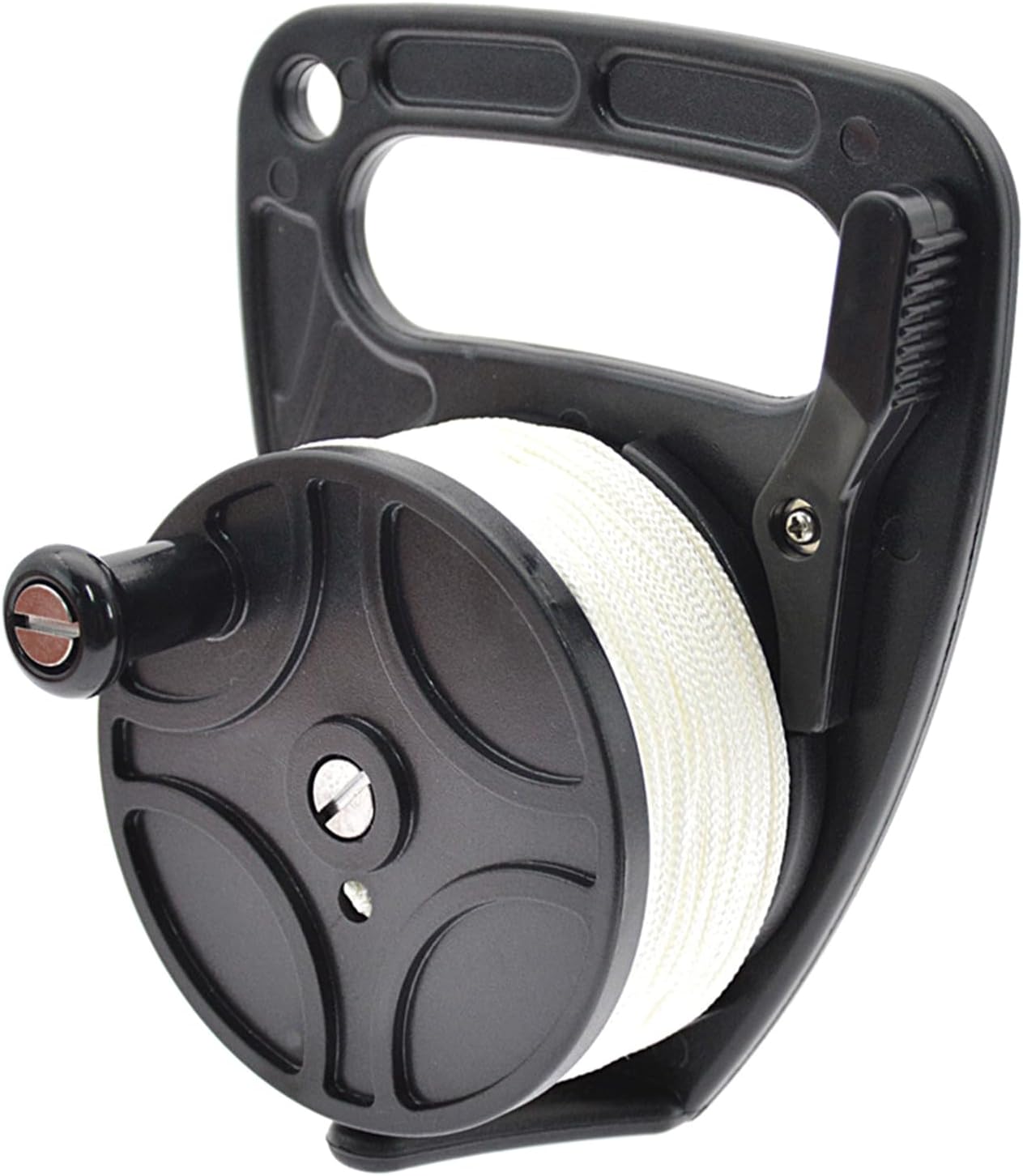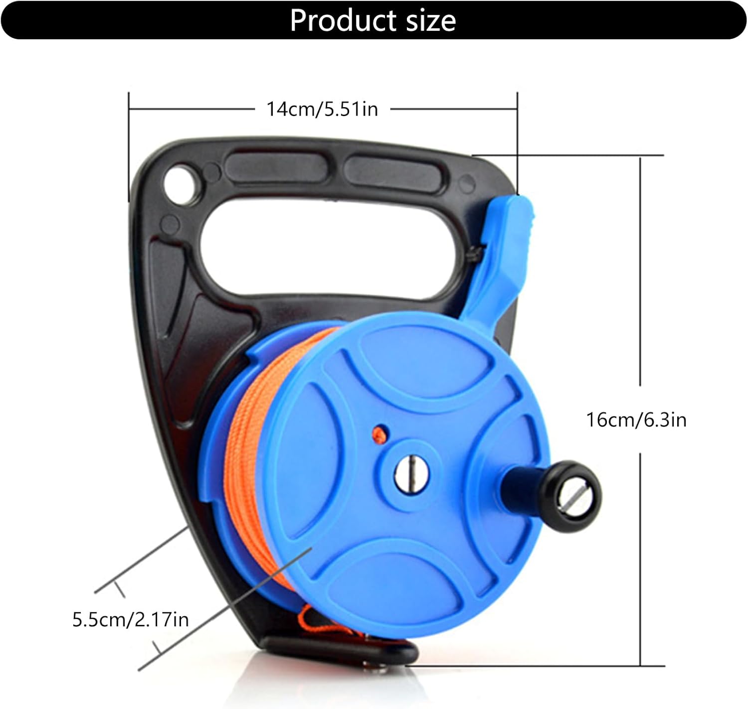 Realizzato in nylon e policarbonato, forte e resistente. Non facilmente danneggiato. La nostra bobina con un fermo del pollice per controllare facilmente eventuali salite e rilasci di linea, premere può rilasciare la linea, rimbalza per rendere la linea rimane alla lunghezza specificata, facile da usare. Con filo in tessuto di nylon, tessuto stretto, solido e resistente, lunghezza del filo 83 m è sufficiente per l'uso. Il mulinello si attacca con il manico della bobina per un facile ritiro della linea e facile da usare con le mani guantate, molto conveniente. La confezione include: 1 mulinello per immersioni