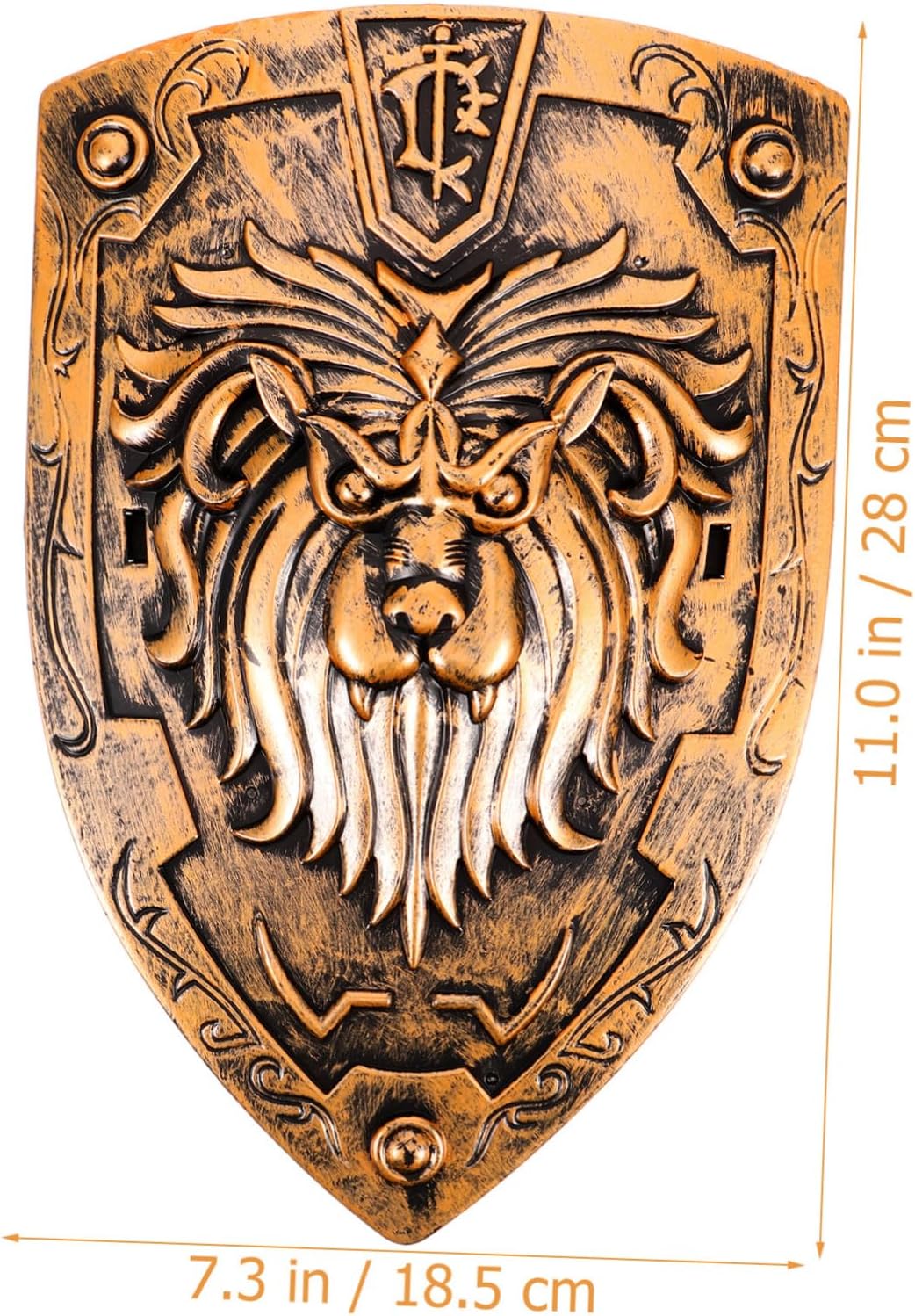 Scudo da ragazzo soldato: usato come decorazione domestica, festa di Halloween, oggetti di scena, accessori per costumi e scudi per cosplay Cosplay: sicuro e durevole per l'uso, non è facile da rompere e deformare, oggetti di scena Scudo medievale: il pratico supporto per scudi è molto adatto per un facile trasporto e trasporto, oggetti di scena per cosplay Supporto per scudi medievali: il supporto per scudi dal design di simulazione è ben lucidato e non fa male alle mani durante l'uso, scudo per costumi per spettacoli teatrali: liscio e arrotondato, lavorato, può suscitare interesse, scudo per cosplay