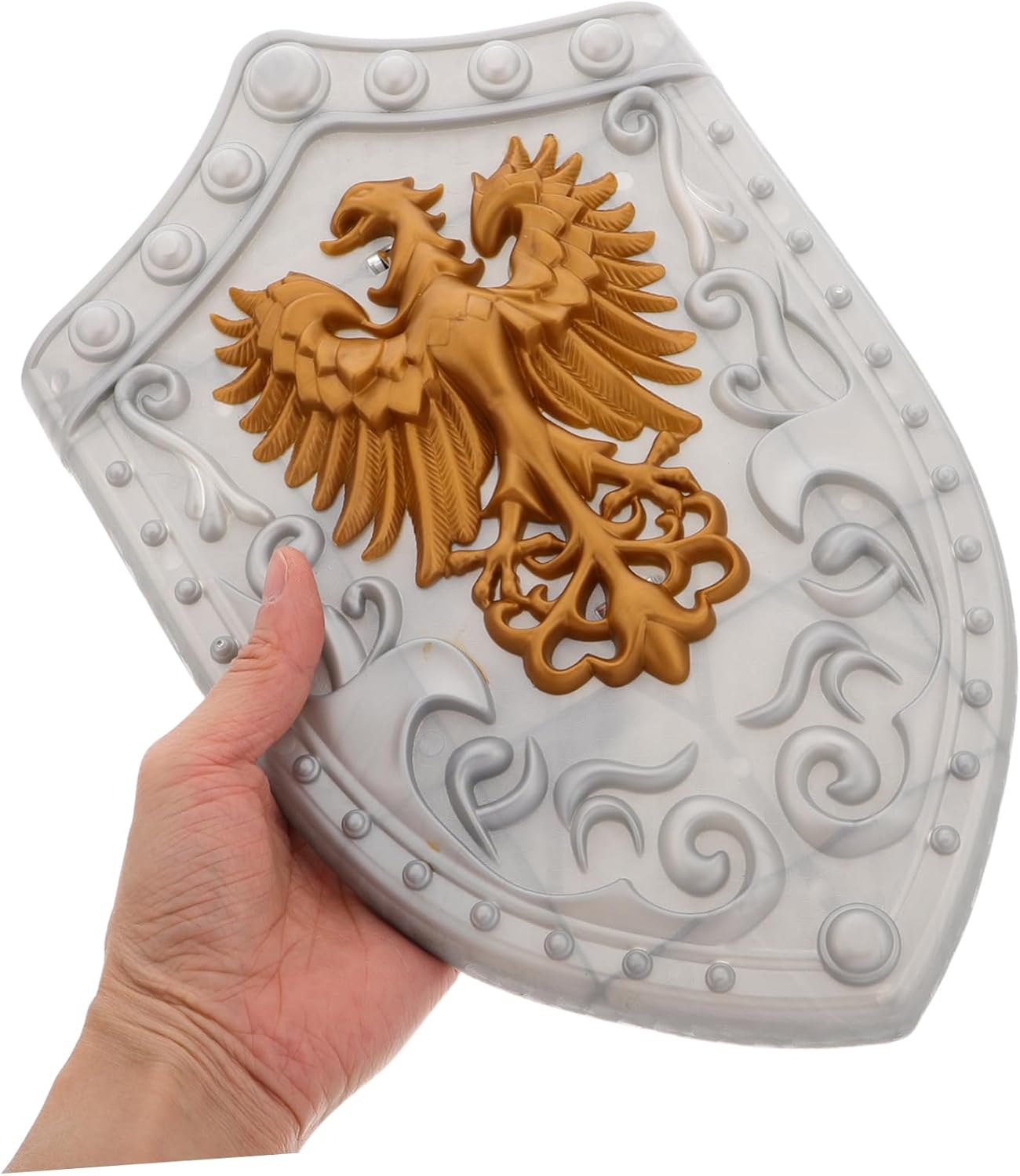 OTTIMA COSTRUZIONE: Realizzato in plastica robusta, questo scudo è progettato per durare ed è adatto sia per l'uso che per la decorazione, come oggetto di scena o come scudo da cavaliere per un design funzionale: adatto per cosplay, oggetti di scena o come pezzo decorativo. Questo scudo offre una varietà di usi per diverse occasioni, scudo medievale, giocattolo da cavaliere, scudo giocattolo per Oggetto da collezione unico: il suo significato storico e il design unico lo rendono un'aggiunta preziosa a qualsiasi collezione o speciale, uno scudo per cosplay o uno scudo per giochi di società Uso versatile: ideale per cosplay, spettacoli teatrali o come pezzo decorativo, questo scudo aggiunge un tocco di autenticità Da collezione: il suo design unico e storico lo rende un ottimo oggetto da collezione o premuroso per gli amanti della storia, insegna per bambini, oggetti di scena per cosplay