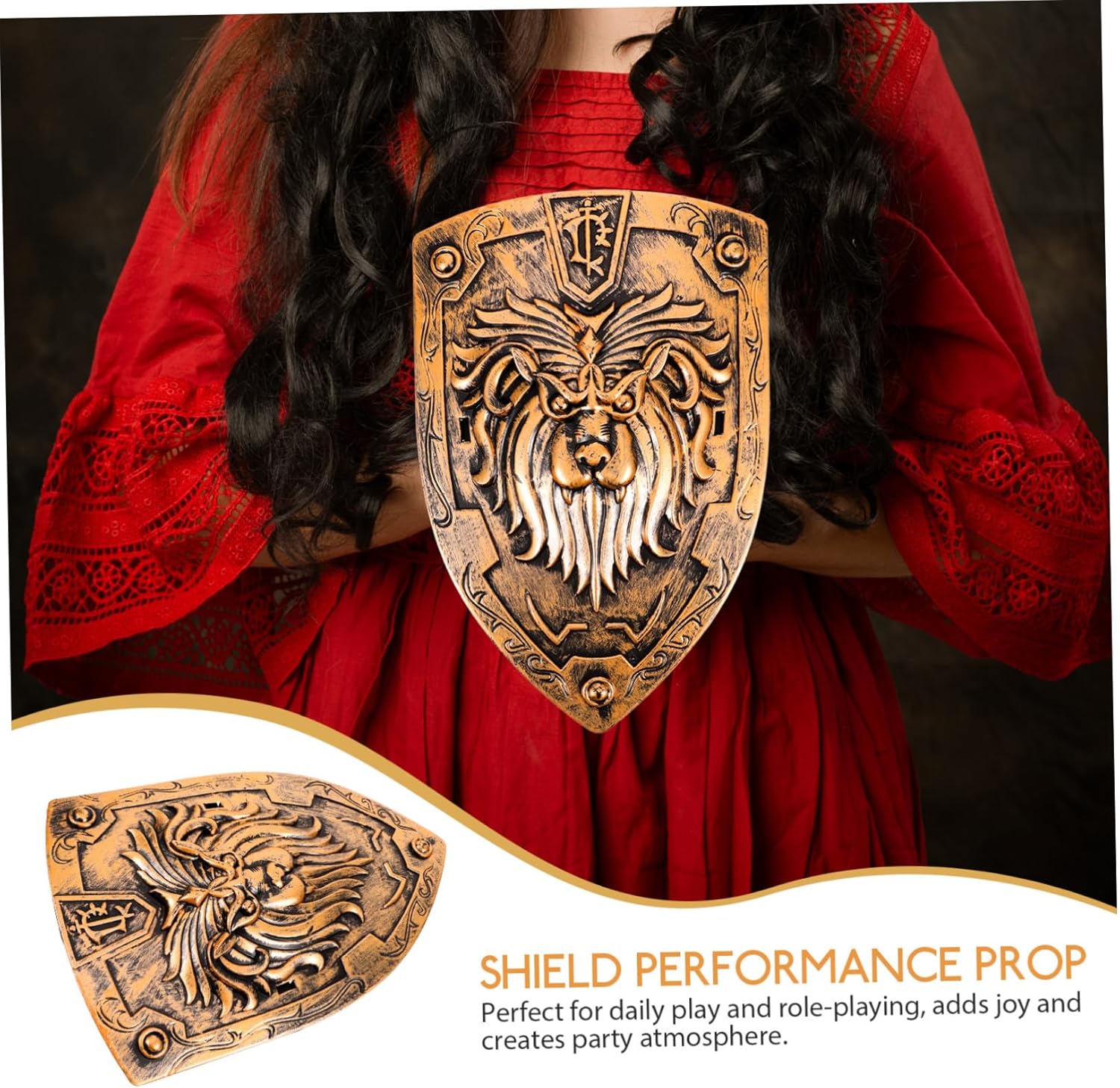Scudo per cosplay - Il supporto dello scudo nel design di simulazione è ben lucidato e non farà male alle mani durante l'uso, costume da scudo da palcoscenico: leggero e compatto, puoi usarlo con genitori o amici a casa, in hotel. , Scudo per spettacoli teatrali Scudo vichingo medievale - il supporto dello scudo gode di una forte durata, che non è facile da deformare e rompere, Scudo Scudo - usato per la decorazione domestica, feste di Halloween, oggetti di scena, accessori per costumi, scudo per cosplay - L'eccellente fattura del nostro scudo realistico porta il cosplay dello scudo di scena
