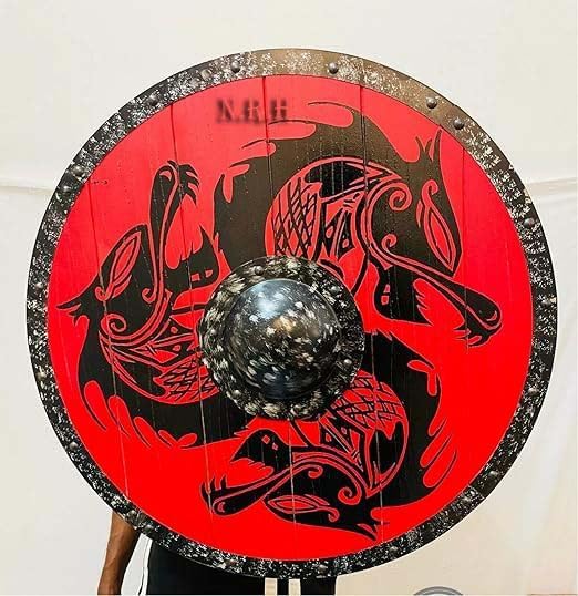 Scudo vichingo in legno per cosplay, costume medievale, scudo vichingo, pronto per la battaglia, scudo vichingo Ragnar, scudo vichingo, scudo rotondo, ideale come regalo Colore : Rosso & Nero Dimensioni: 61 cm Materiale: acciaio, legno e striscia di pelle Viking Cosplay, costume vichingo, arte vichinga, regalo vichingo, drago vich Decorazione da parete, scudo vichingo medievale, scudo vichingo cosplay, scudo vichingo in legno per arte da parete, scudo vichingo pronto per la battaglia, regalo per Halloween, scudo vichingo medievale, scudo vichingo Ragnar, Venduto da: Nautical Replica Hub