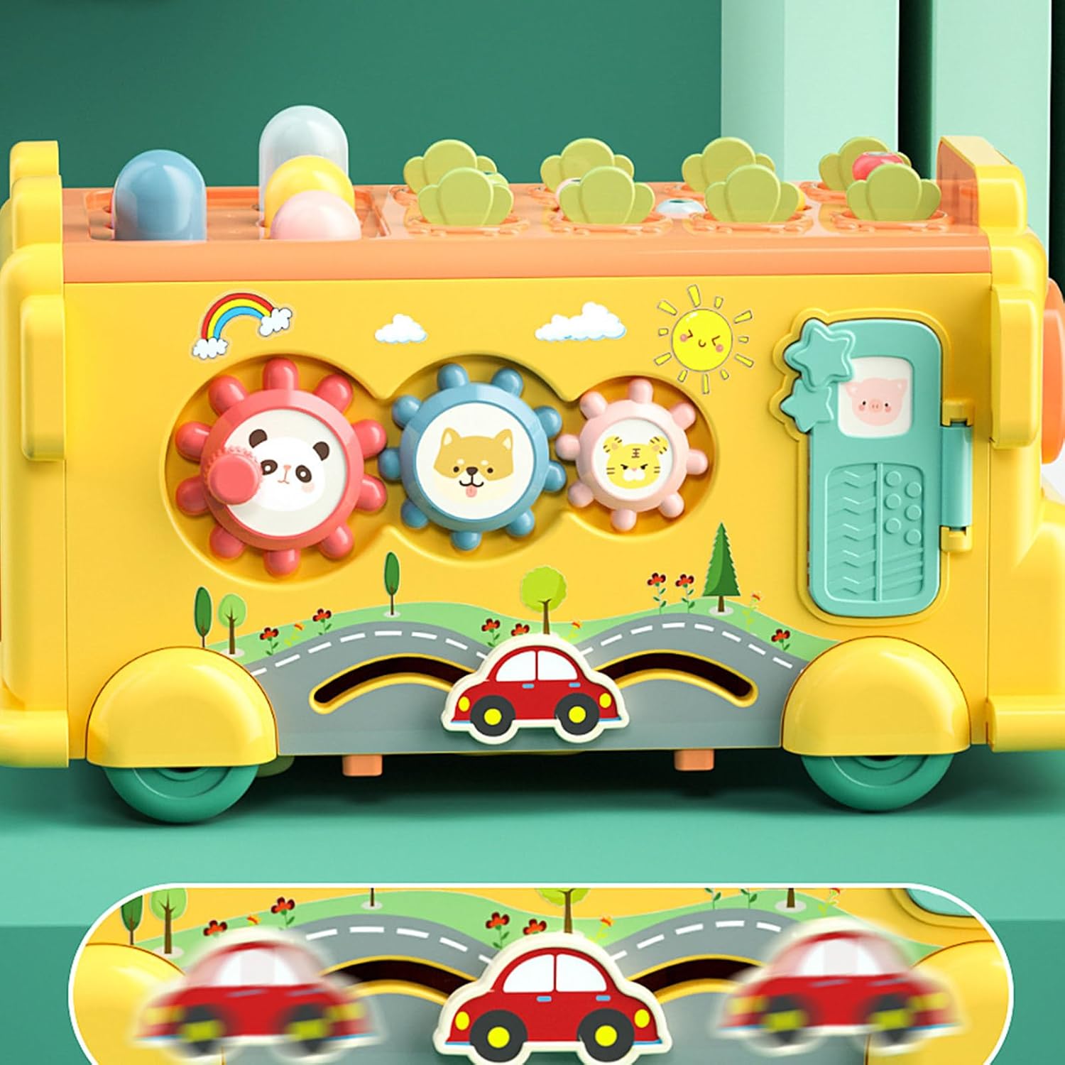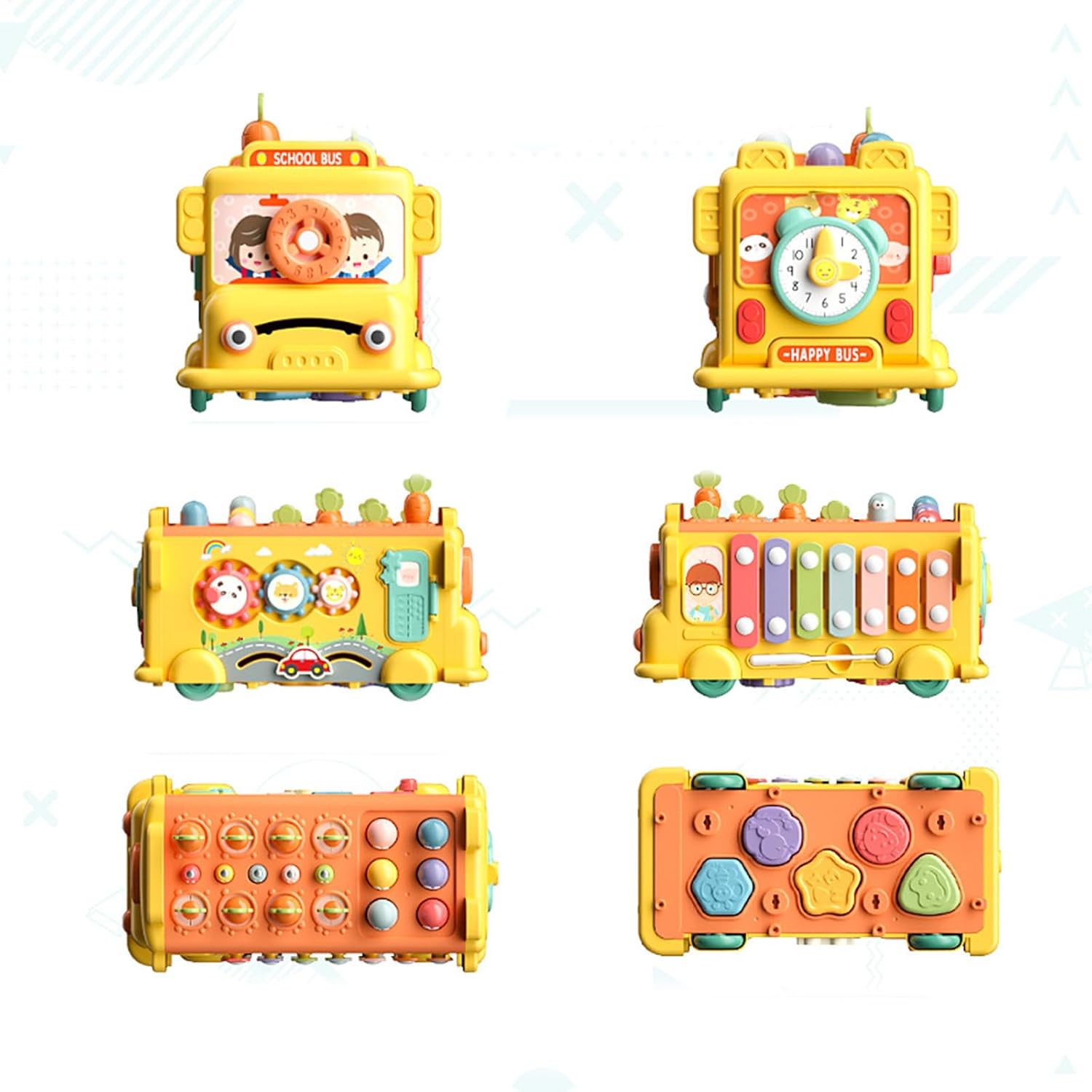 Selezionato, resistente all'usura alla caduta e, sicuro, tutte le superfici sono lisce e lucidate, adatte per il bambino a giocare, che e preoccupato per i bambini, appositamente progettato e accompagnato bene con i bambini. Scatola giocattolo abbinata a colori e forme: design ergonomico, bordi lisci senza sbavature, dimensioni portatili e giocattolo multifunzionale 6 in 1 per attirare i bambini a esplorare e l'illuminazione sensoriale, attraverso la corrispondenza di colori e forme e tappo, martellante per migliorare la coordinazione occhio-mano, un ottimo insegnamento per. Giocattolo di attività: il giocattolo didattico dello scuolabus progettato con scatola cava, cubo di attività funzionale 6 in 1, viene fornito con ingranaggi, orologio didattico, pianoforte martellante, martellamento, gioco di pesca e giocattolo di corrispondenza dei colori della forma per migliorare le abilità motorie dei bambini e divertirsi matchingfun per costruire la loro fiducia. Giocattolo di interazione genitore-figlio: un giocattolo di interazione per far giocare il bambino e il bambino sotto le istruzioni dei genitori, aiuta a migliorare le loro capacità di pensiero, quando i genitori partecipano insieme, portare un grande aiuto per migliorare tra bambini e genitori. Fantastico: adatto per bambini, il design unico che è appositamente per l'uso in centri attività, forniture per la stanza dei bambini, scuola materna per insegnanti o forniture per esigenze speciali.
