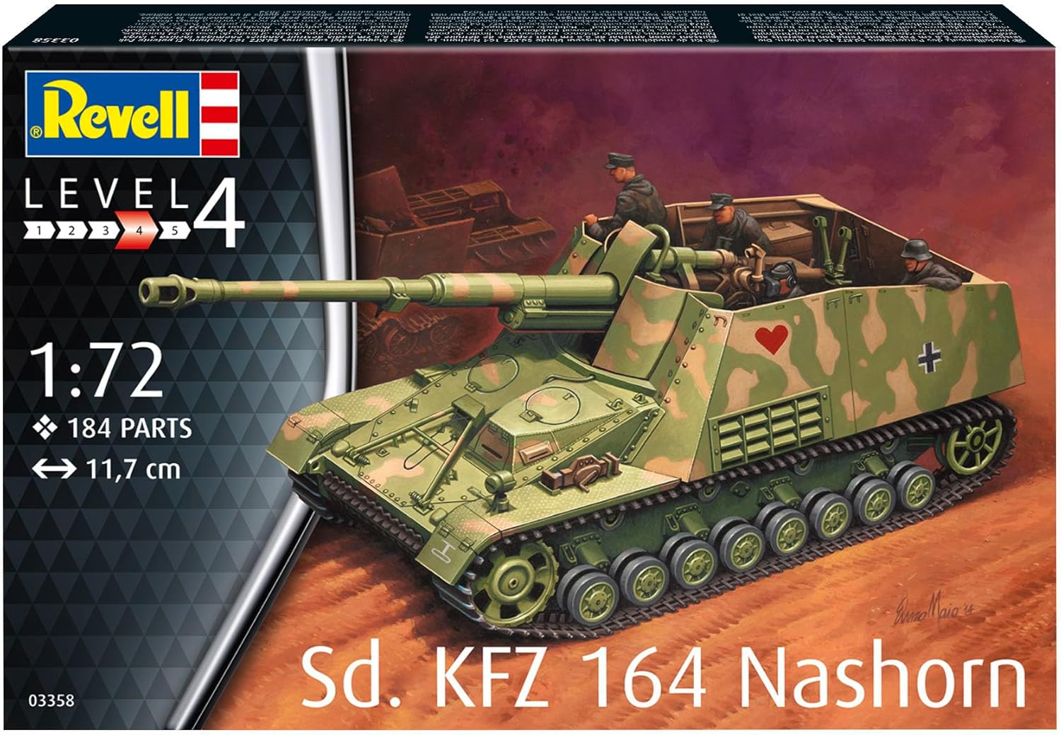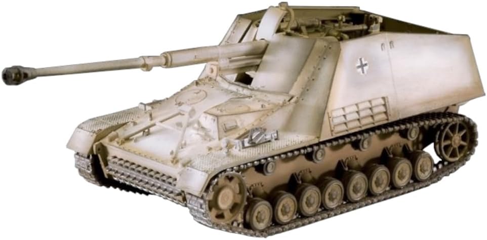 KIT MODELLO DETTAGLIATO: Il kit modello Sd.Kfz. 164 Nashorn presenta un'impressionante replica di questo cacciacarri pesante su un cannone semovente; Con una varietà di dettagli e un design autentico, consente agli appassionati di modellismo di ricreare in scala questo importante veicolo della guerra anticarro tedesca CANNONE RADDRIZZATORE LATERALE: Il modello presenta un armamento canonico dettagliato e ricreato in modo realistico; Con oltre 3 parti singole, questa funzione offre un'elevata precisione e autenticità per rappresentare accuratamente le capacità del cacciacarri Rhino CATENA PER STAMPAGGIO AD INIEZIONE A MAGLIE SINGOLE: La catena stampata ad iniezione fornita con il kit modello è composta da singole maglie e sottosegmenti; Ciò consente una rappresentazione realistica della struttura del binario e facilita l'assemblaggio per i modellisti INTERNI AUTENTICI: Il kit modello include anche un interno dettagliato e autentico del cacciacarri Rhino, Questa attenzione ai dettagli consente ai modellisti non solo di progettare l'aspetto esterno del veicolo, ma anche di consentire una visione all'interno e vivere il veicolo dall'interno STORIA E SIGNIFICATO: Il Nashorn è stato un importante veicolo di difesa anticarro tedesco durante la seconda guerra mondiale; Con la capacità di danneggiare qualsiasi carro armato nemico a lungo raggio, ha svolto un ruolo importante su vari fronti, Il kit modello consente di ricreare in dettaglio questo veicolo storicamente rilevante e di apprezzarne l'importanza nella storia della tecnologia militare