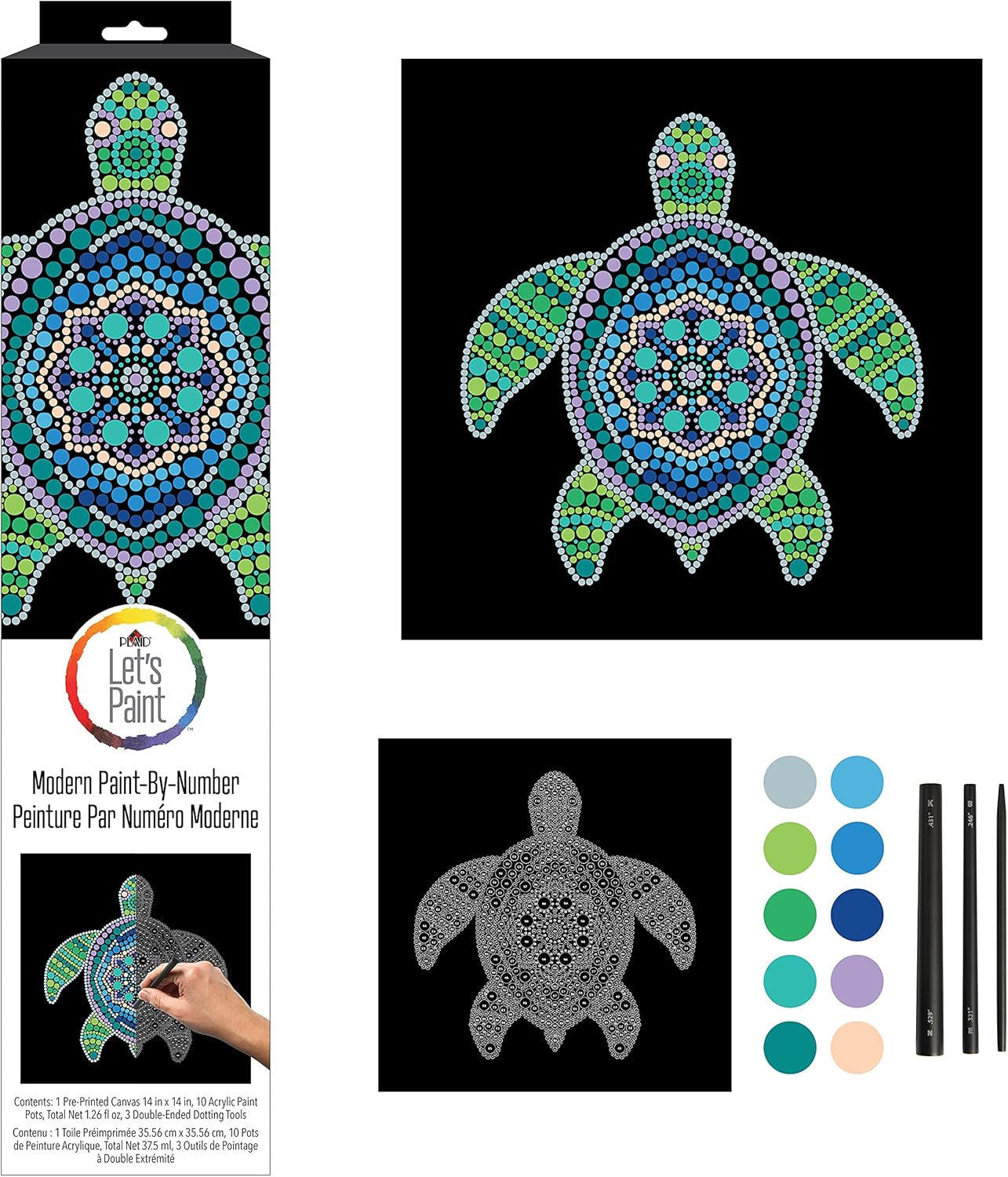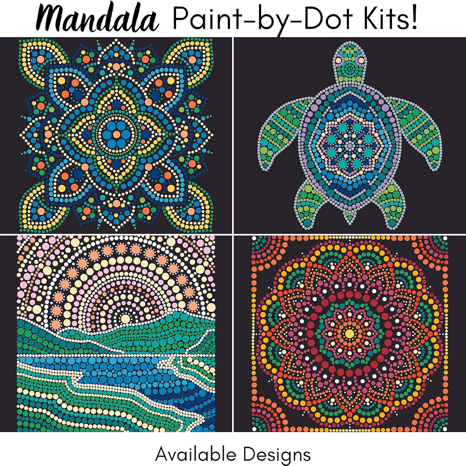 Sea Turtle - Mandala, motivo: pois Un tocco unico di una vernice per numero Ideale per adulti e bambini dagli 8 anni in su Istruzioni facili da seguire Dimensioni tela: 30,5 x 30,5 cm