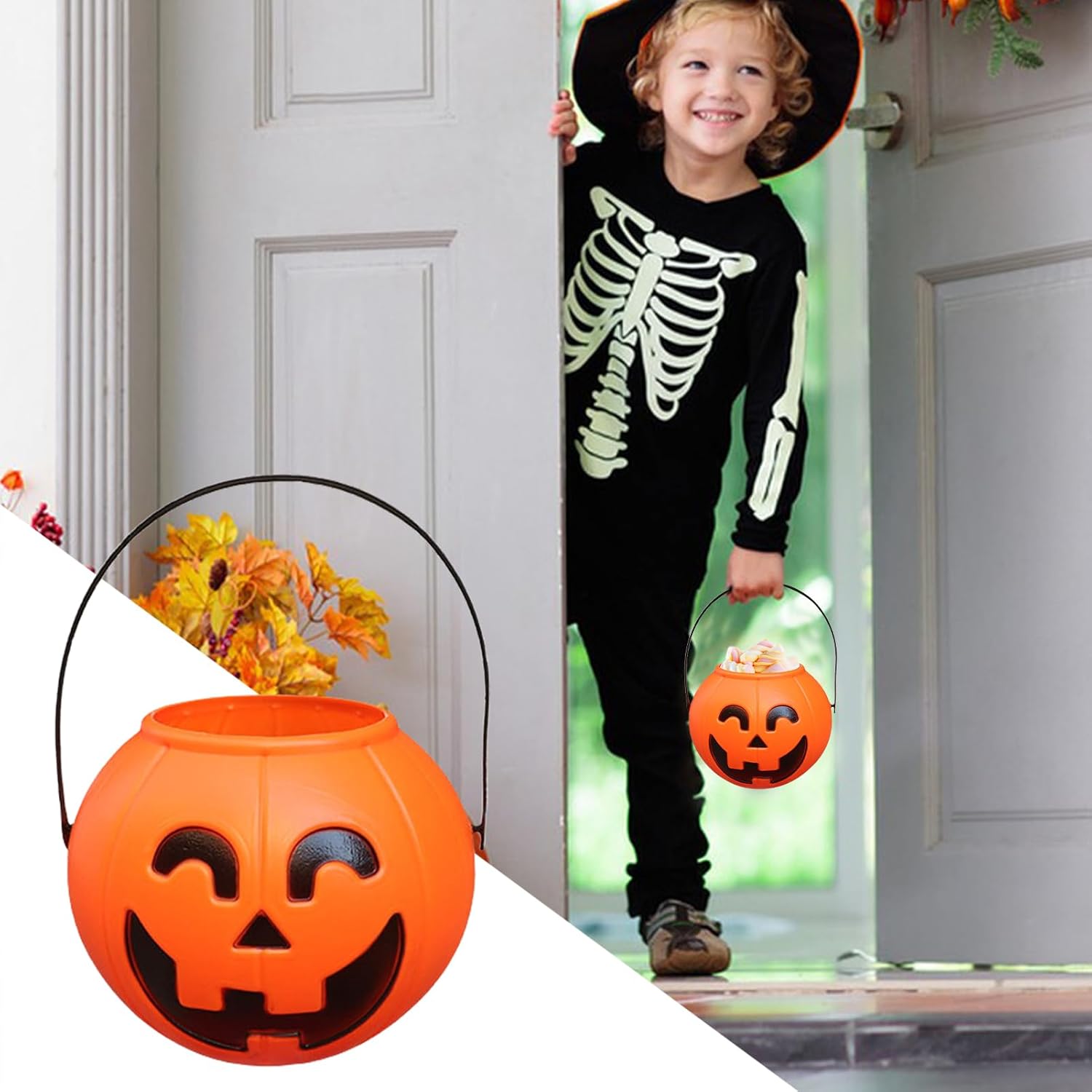 Divertimento a lungo: il materiale ABS leggero garantisce ore di attività di gioco creative, mentre i bambini portano il secchio senza sforzo grazie al suo design ergonomico. Ampio utilizzo: eccellente per feste scolastiche e feste in famiglia. Questo secchio di zucca semplifica le attività dolcetto o scherzetto e offre opportunità creative per ogni celebrazione. Zucca spettrale: design con zucca arancione con facce grigi e luce tremolante per un'atmosfera di festa senza tempo, con manico robusto per il trasporto durante le attività di Halloween Decorazioni per feste personalizzabili: aumentano l'attrattiva delle decorazioni per feste e si adattano a diversi temi festivi. Offre molteplici possibilità di decorazione per ogni occasione, a casa o in loco. Festa di Halloween Indispensabile: ideale per le feste di Halloween. Questo secchio di zucca combina porta caramelle e decorazioni in uno. Aggiunge gioia festiva alla tua celebrazione e migliora l'atmosfera stagionale con il suo accogliente design a zucca per Halloween.